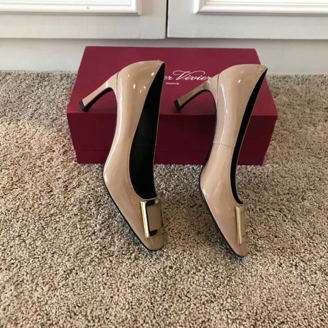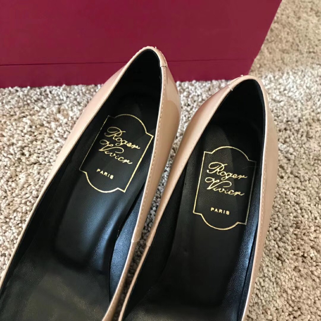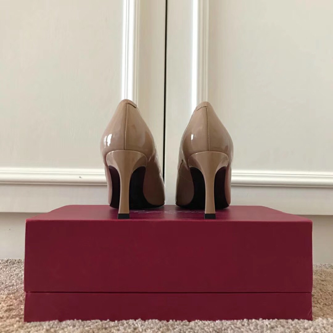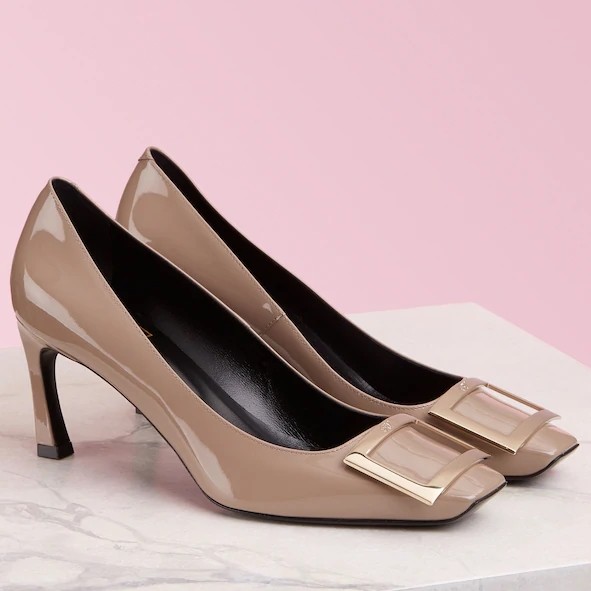 One of Roger Vivier’s most iconic designs, these Belle Vivier Trompette pumps have been crafted from glossy patent leather and topped with a signature polished buckle. Note the distinctive curved Trompette heel – it defines so many of the brand’s shoes.