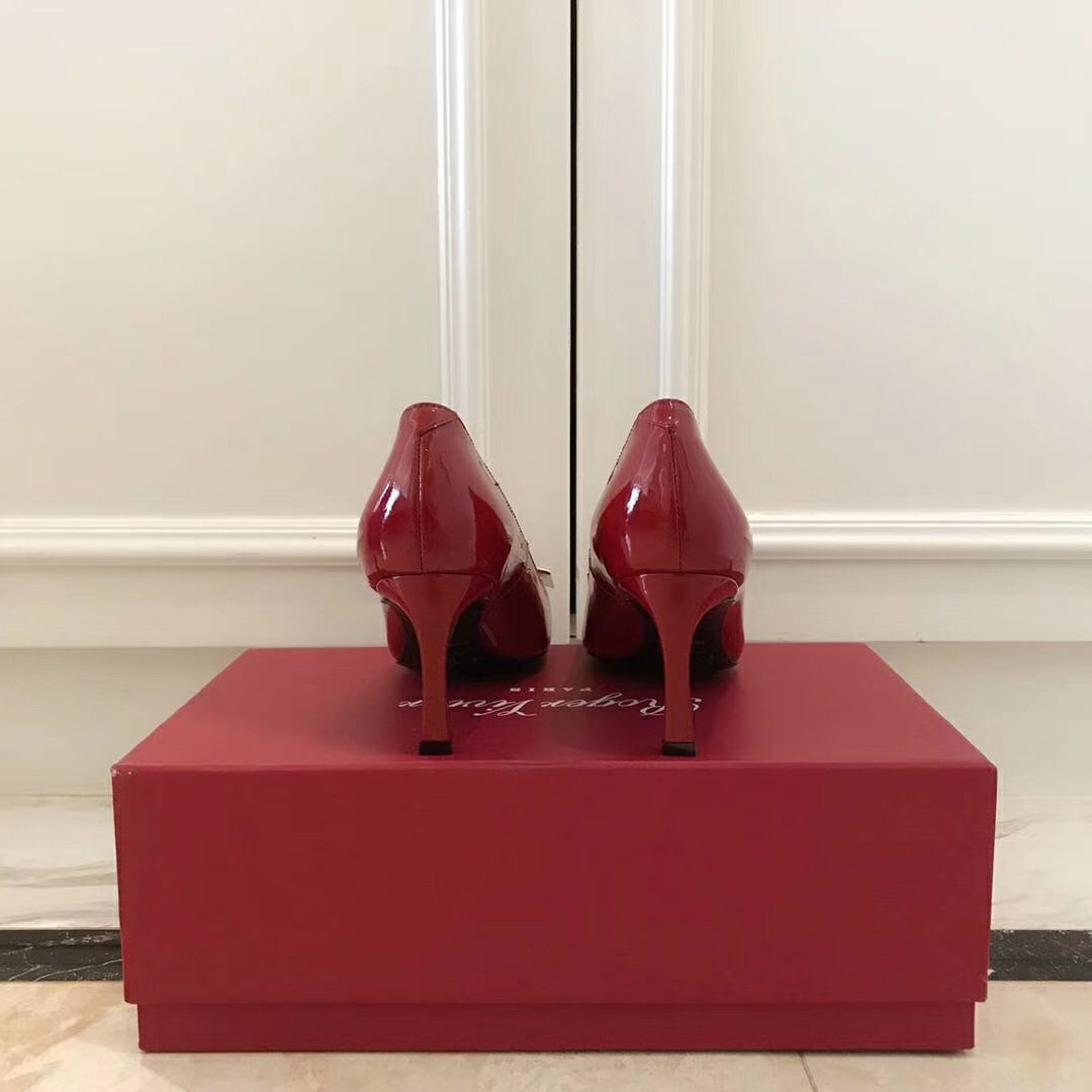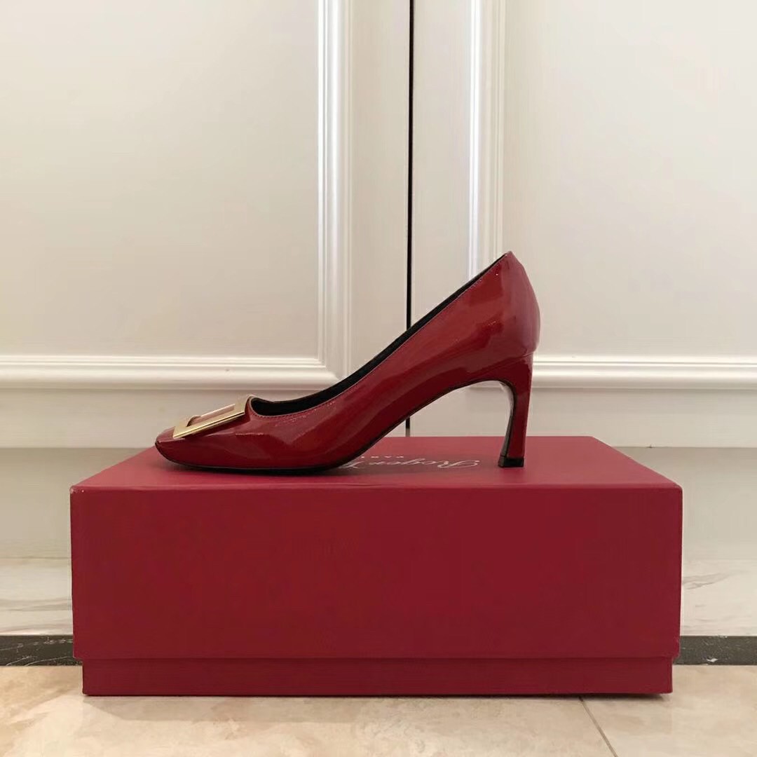 One of Roger Vivier’s most iconic designs, these Belle Vivier Trompette pumps have been crafted from glossy patent leather and topped with a signature polished buckle. Note the distinctive curved Trompette heel – it defines so many of the brand’s shoes.