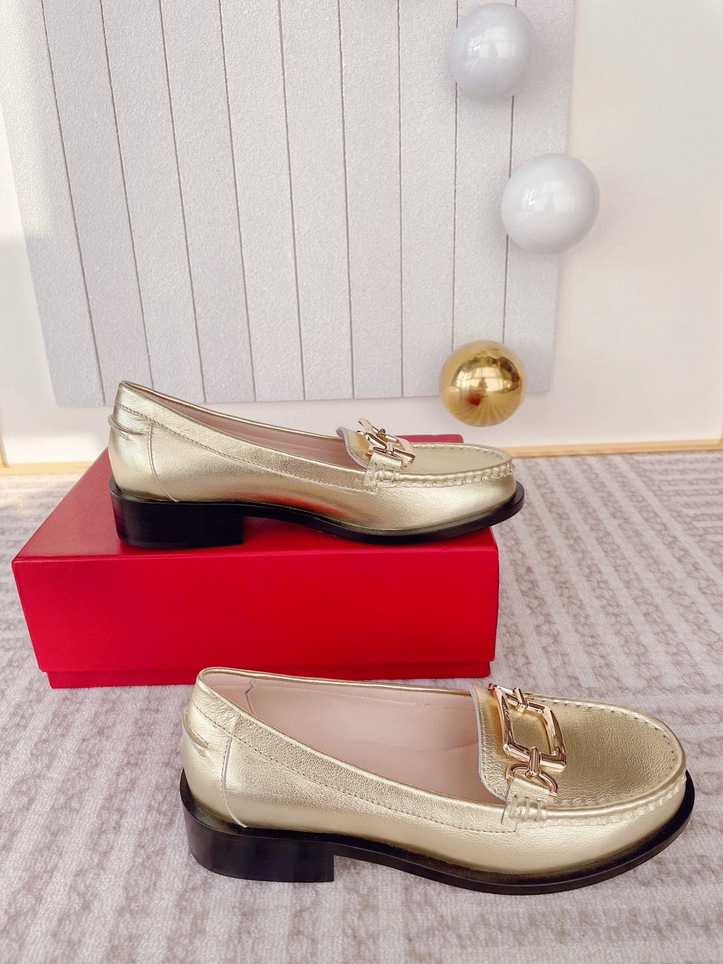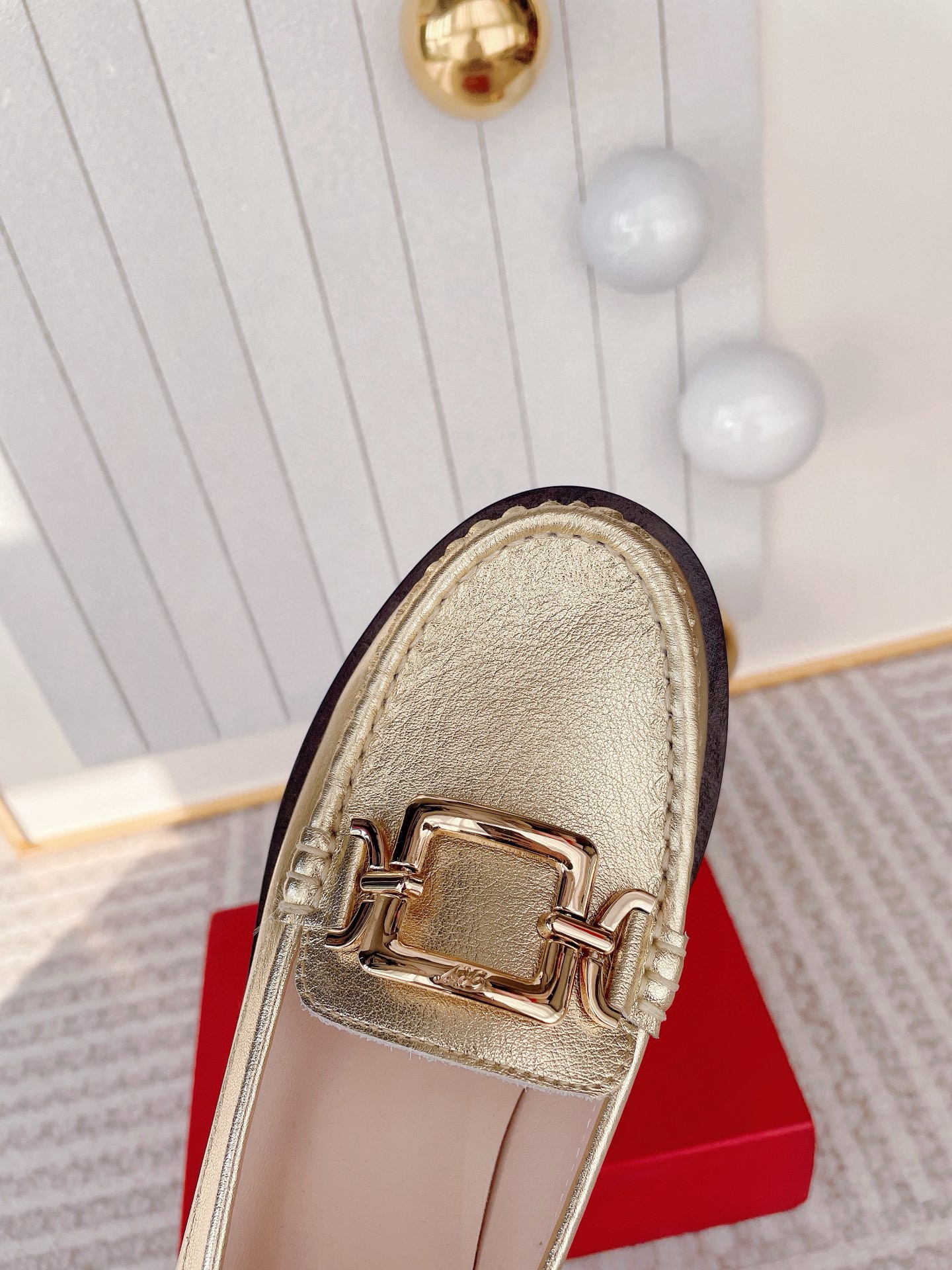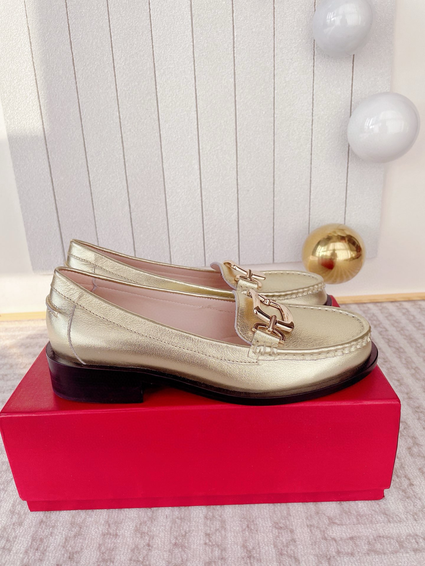 Loafers are perfect for the mid seasons. Handcrafted in metallic nappa leather, this new style features an elegant metal morsetto buckle. Finished with exposed stitching, they are a style partner for the contemporary woman.