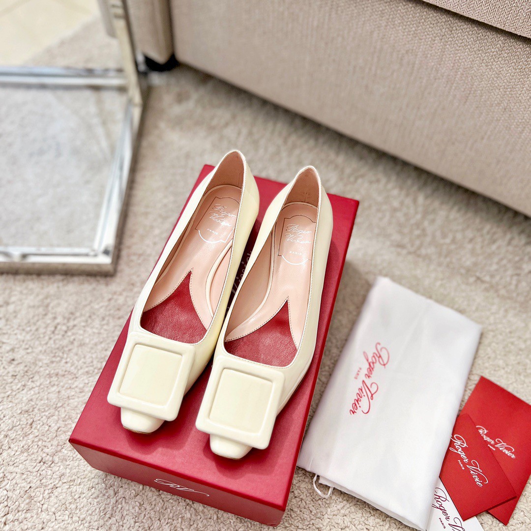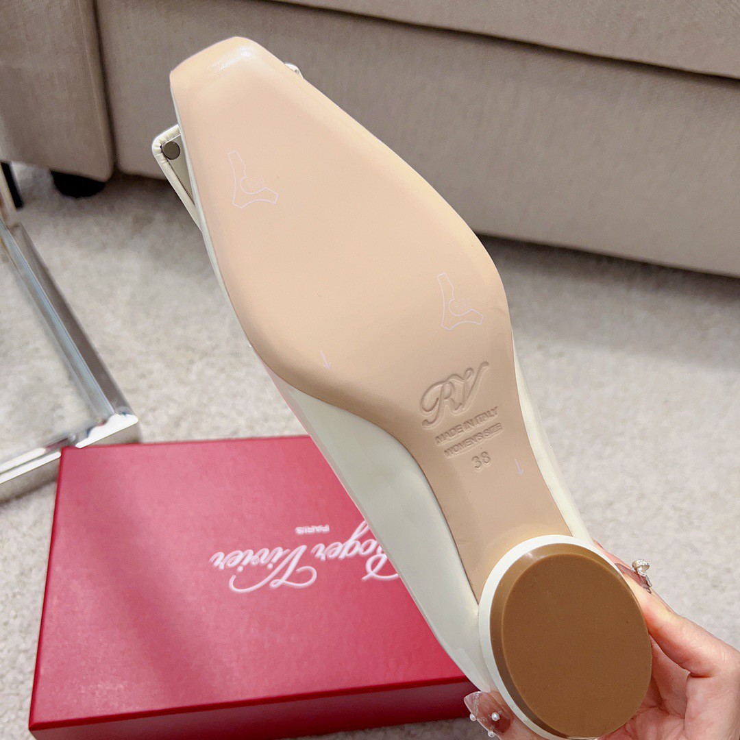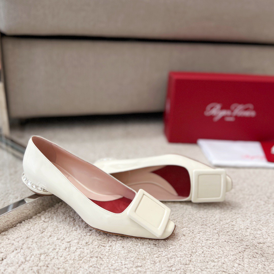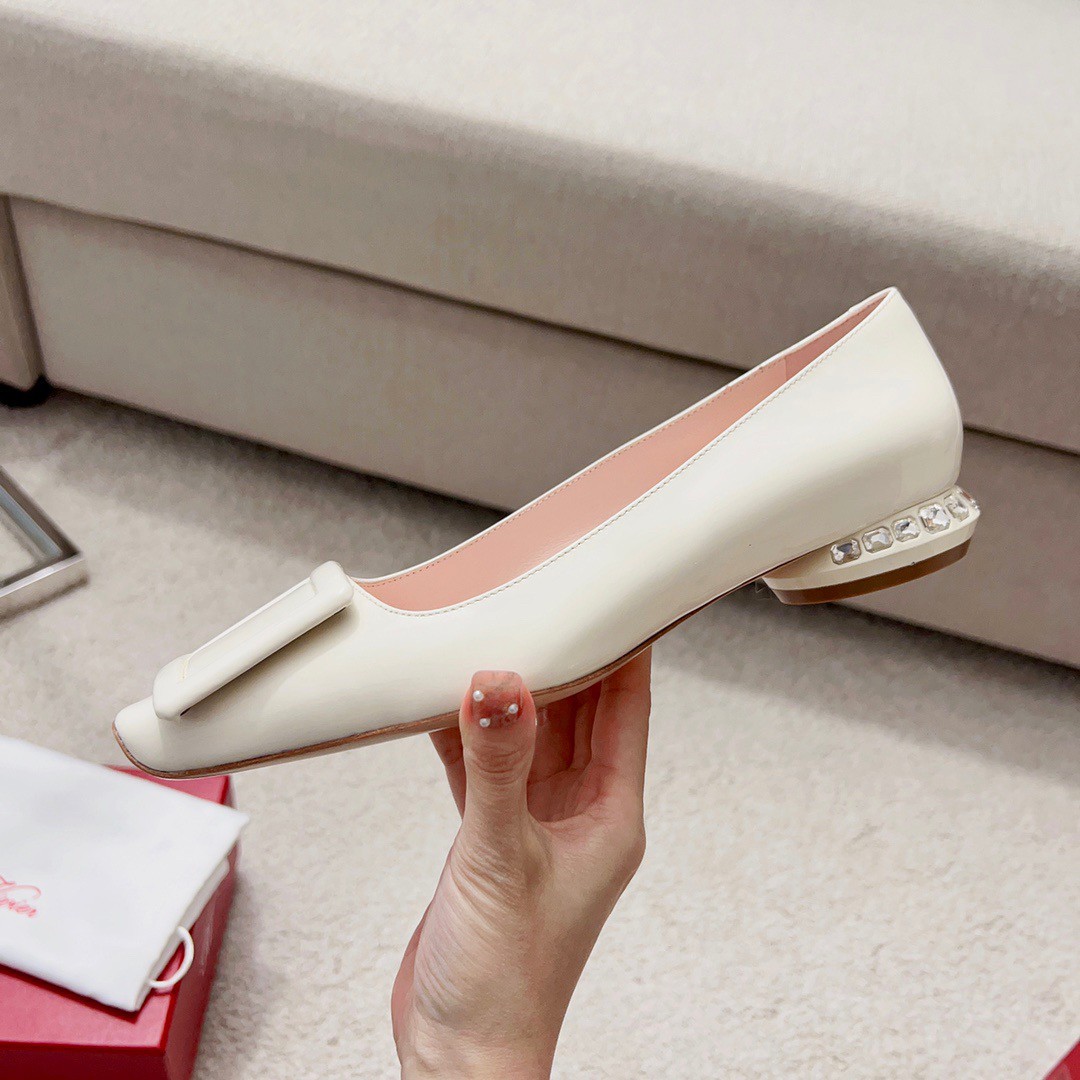 Roger Vivier Strass Heel Covered Buckle Ballerinas In White Patent Leather