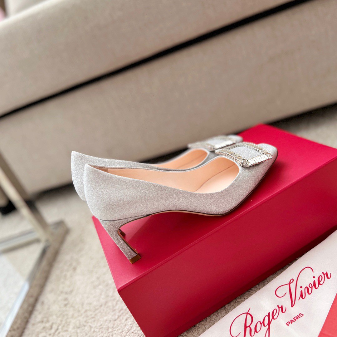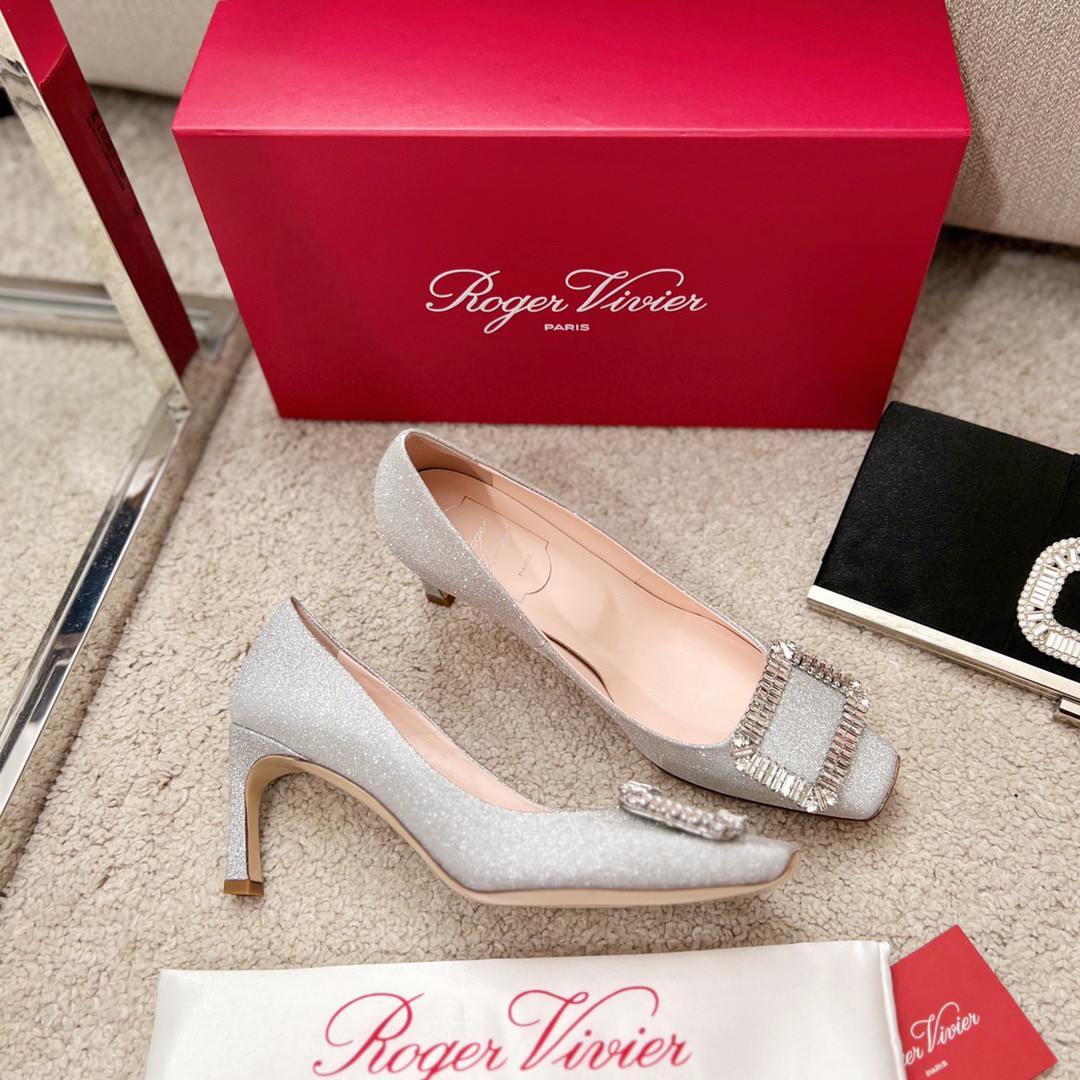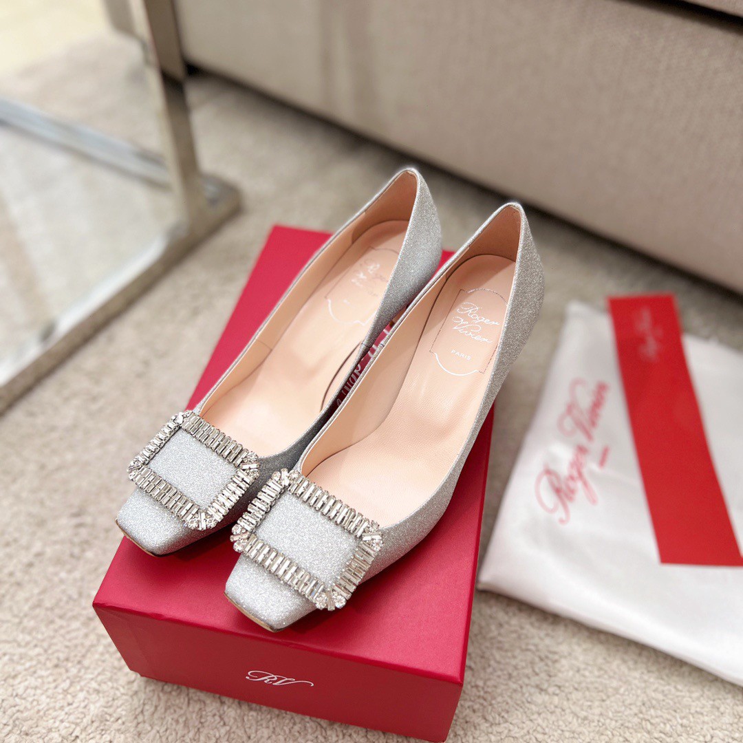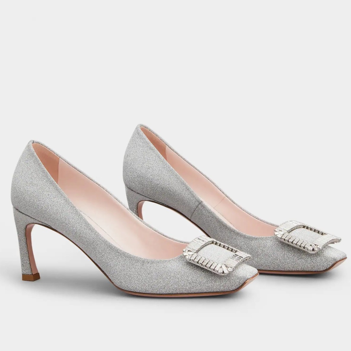 Roger Vivier Trompette Crystal Buckle Pumps in Glitter Fabrics