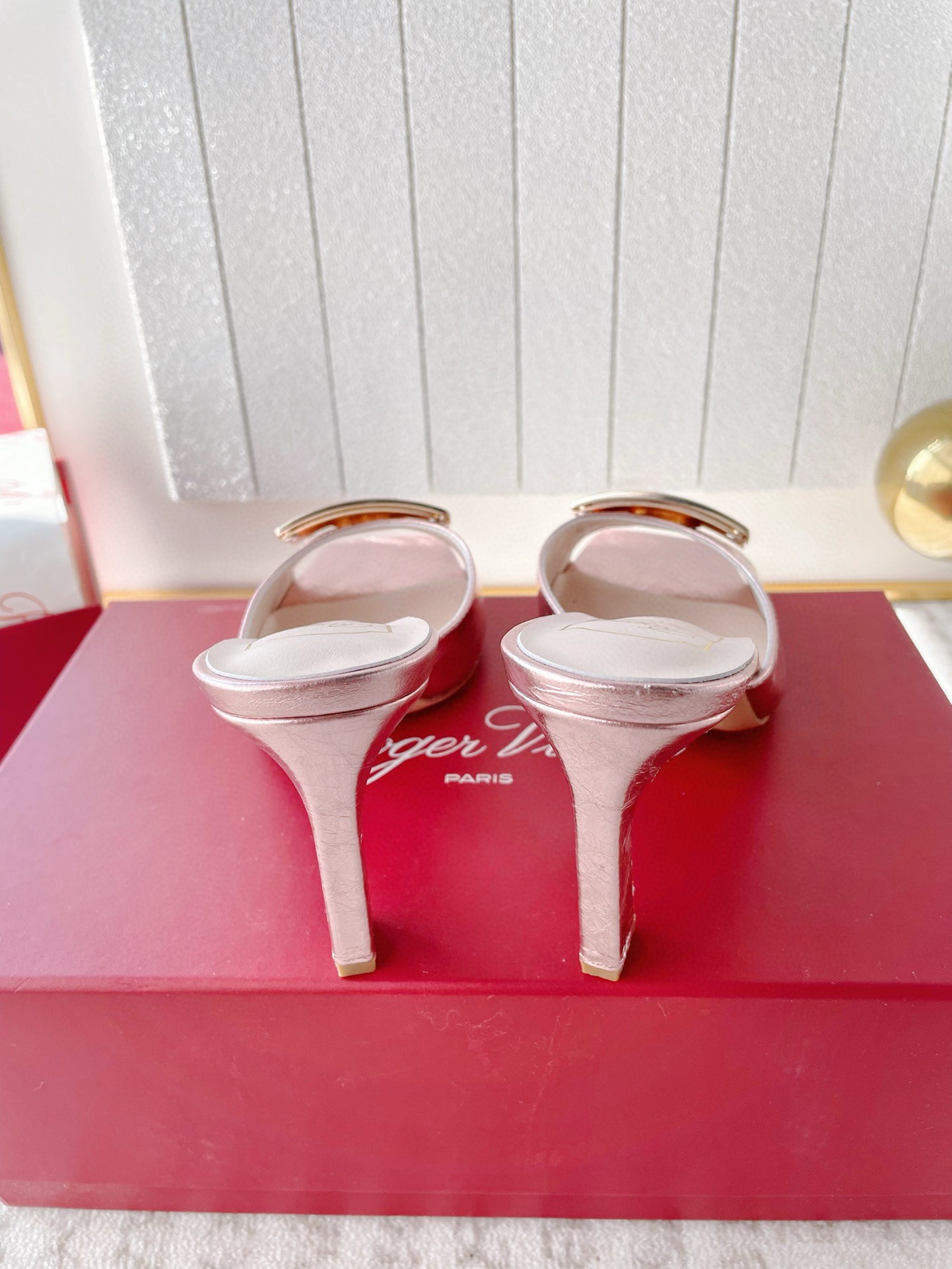 Inspired by the 1970s, the Trompette heel interprets a precise style statement with its curved shape that widens slightly downward. Fashioned in crinkled look metallic leather, the Trompette Metal Buckle Mules come with this distinctive sign of the Maison. A feminine and versatile creation, with an iconic silhouette.