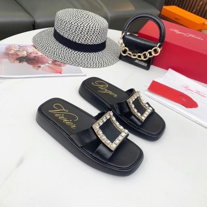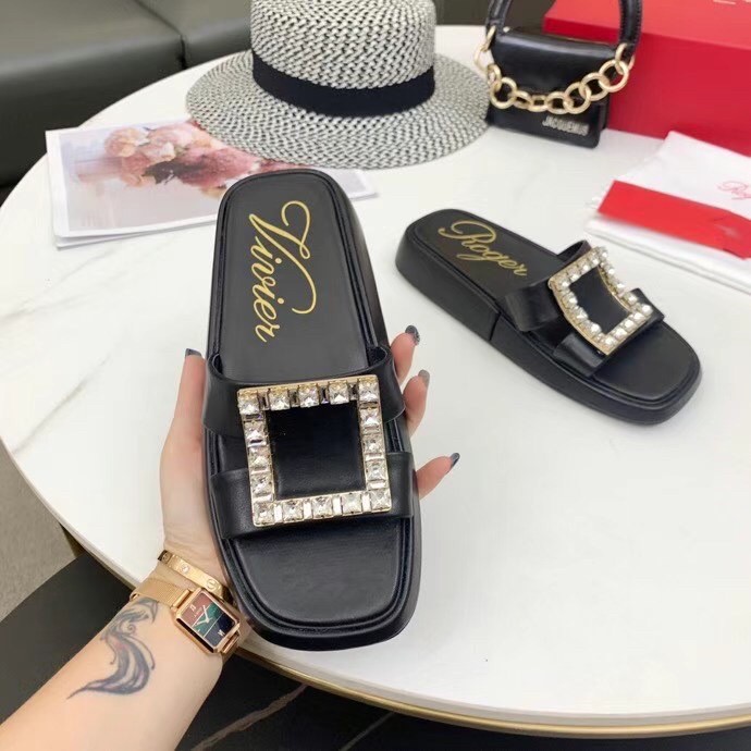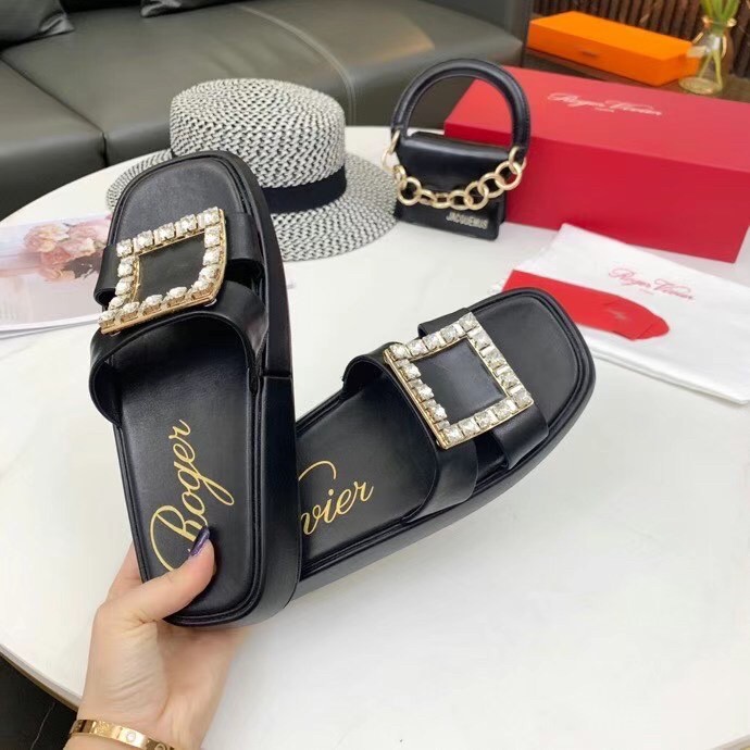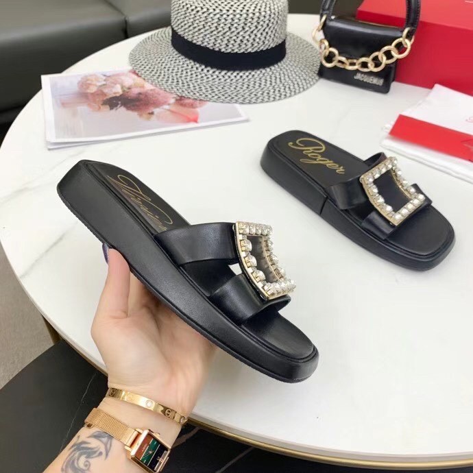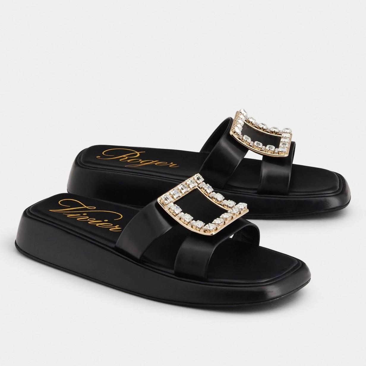 Roger Vivier Vivier Slide Strass Buckle Mules in Black Leather