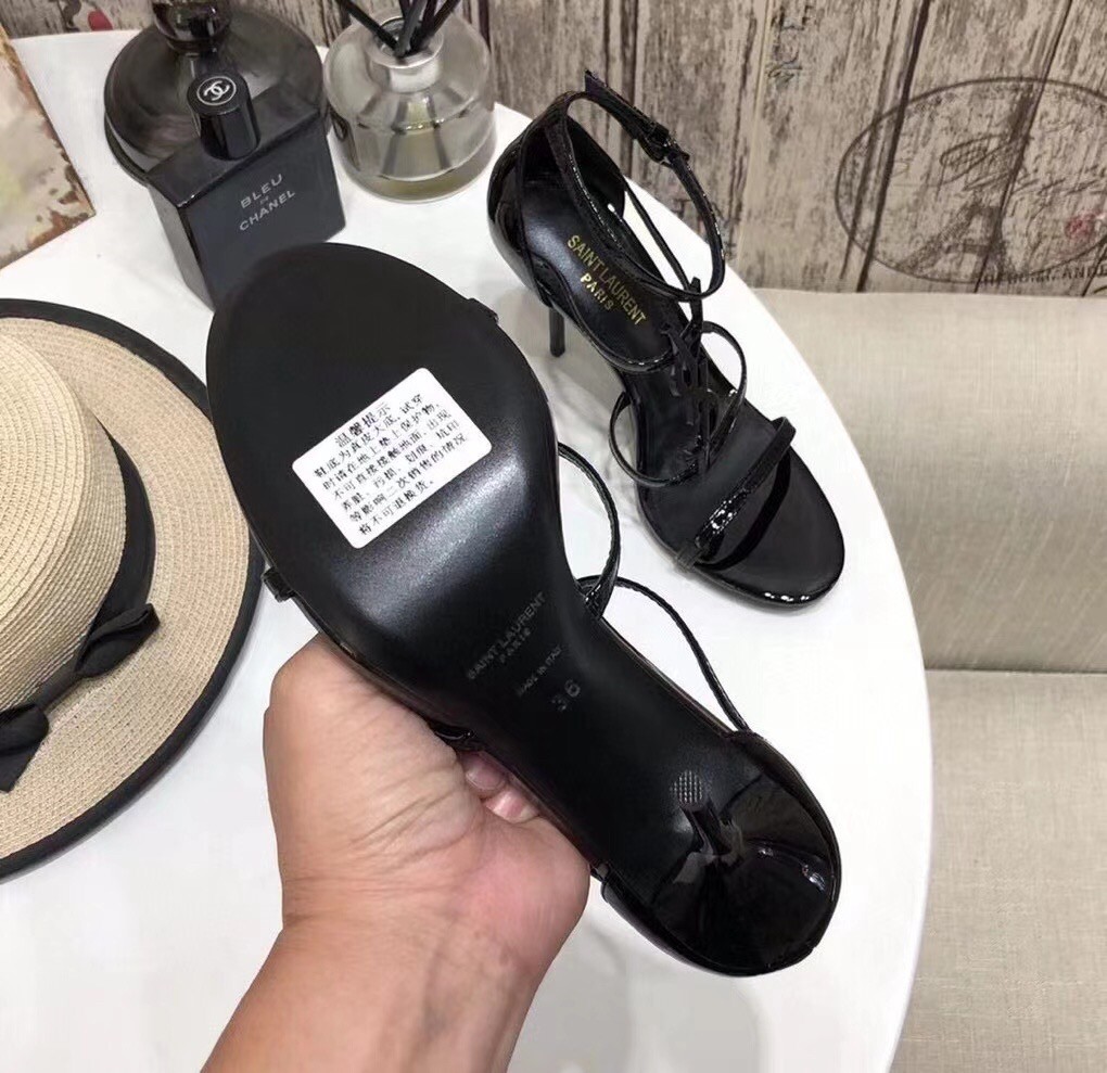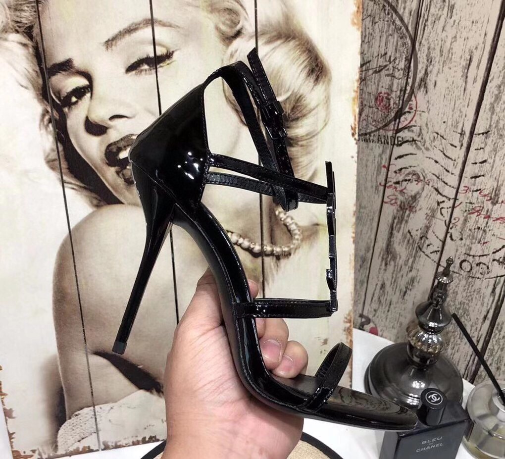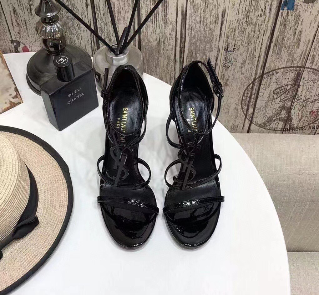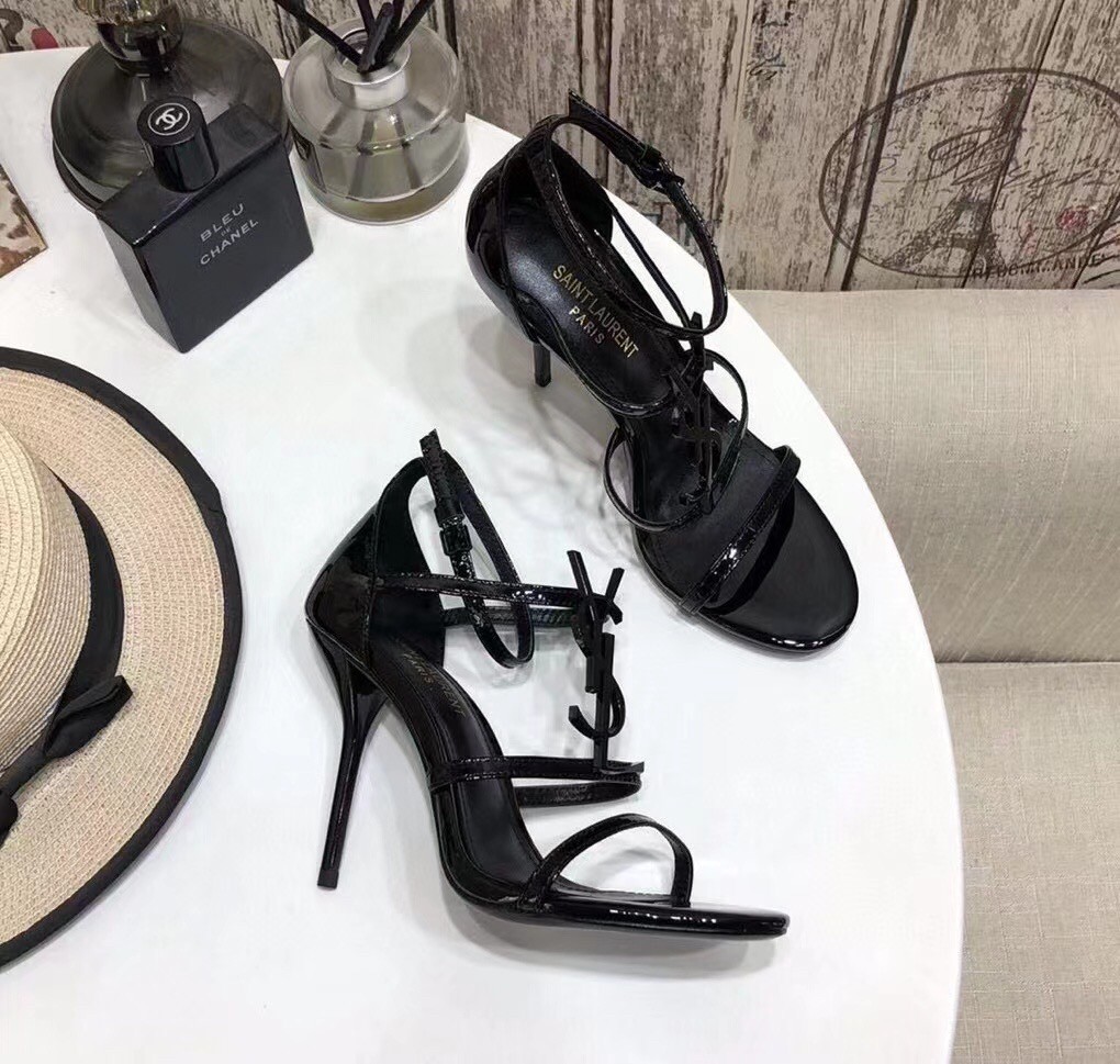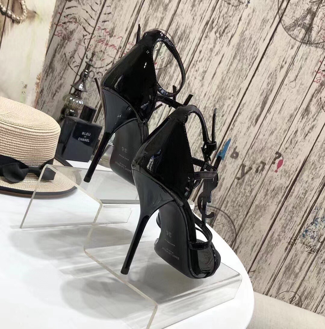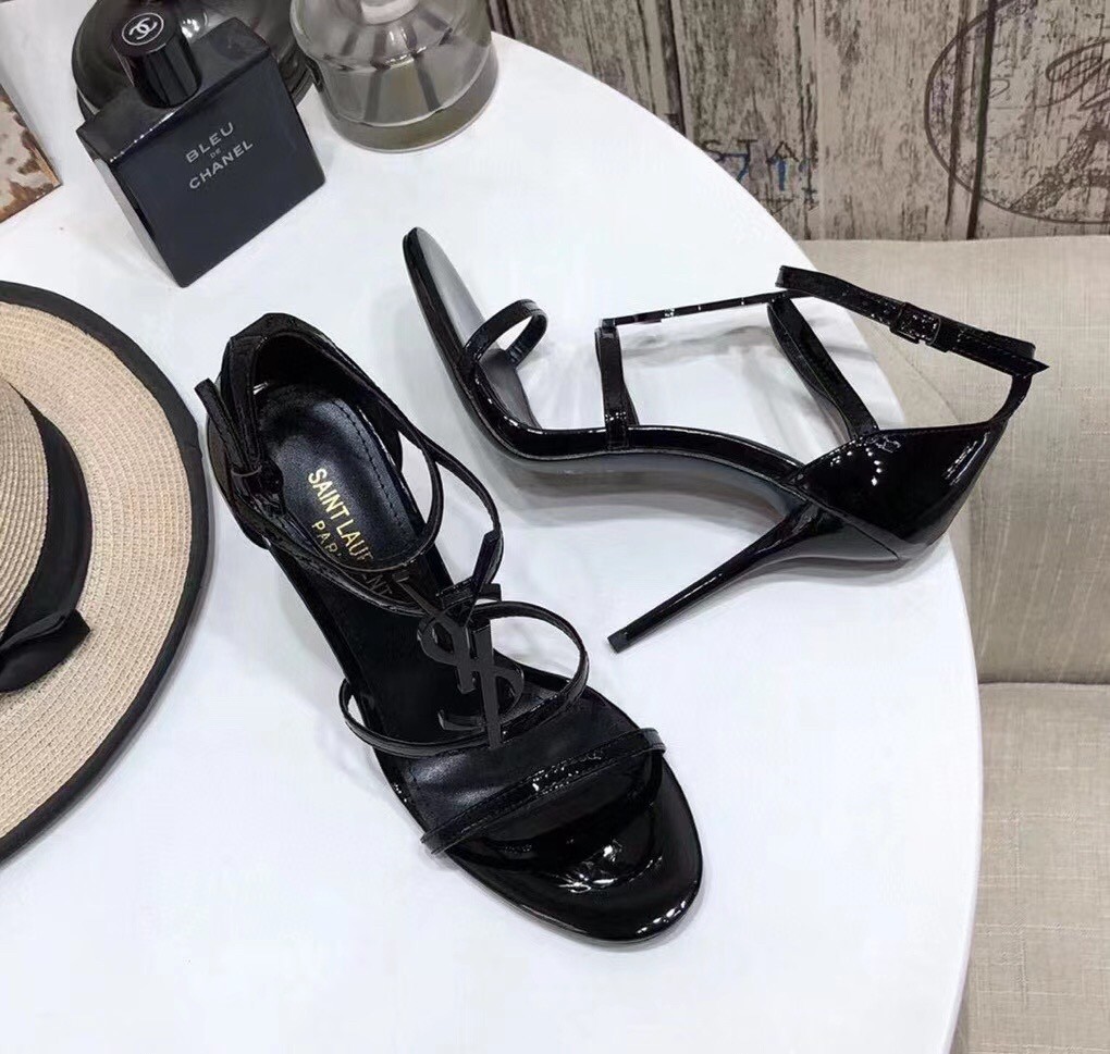 These Saint Laurent Cassandra 100 logo strap sandals are made from glossy patent leather. With a signature logo plaque to the front, these shoes feature strap detailing, round open toes, side buckle fastenings, branded insoles and slim 110 mm heels. It seems fitting that these Saint Laurent heels are named Cassandra, as there’s something about wearing them that makes us feel like the Mistress of the Dark.