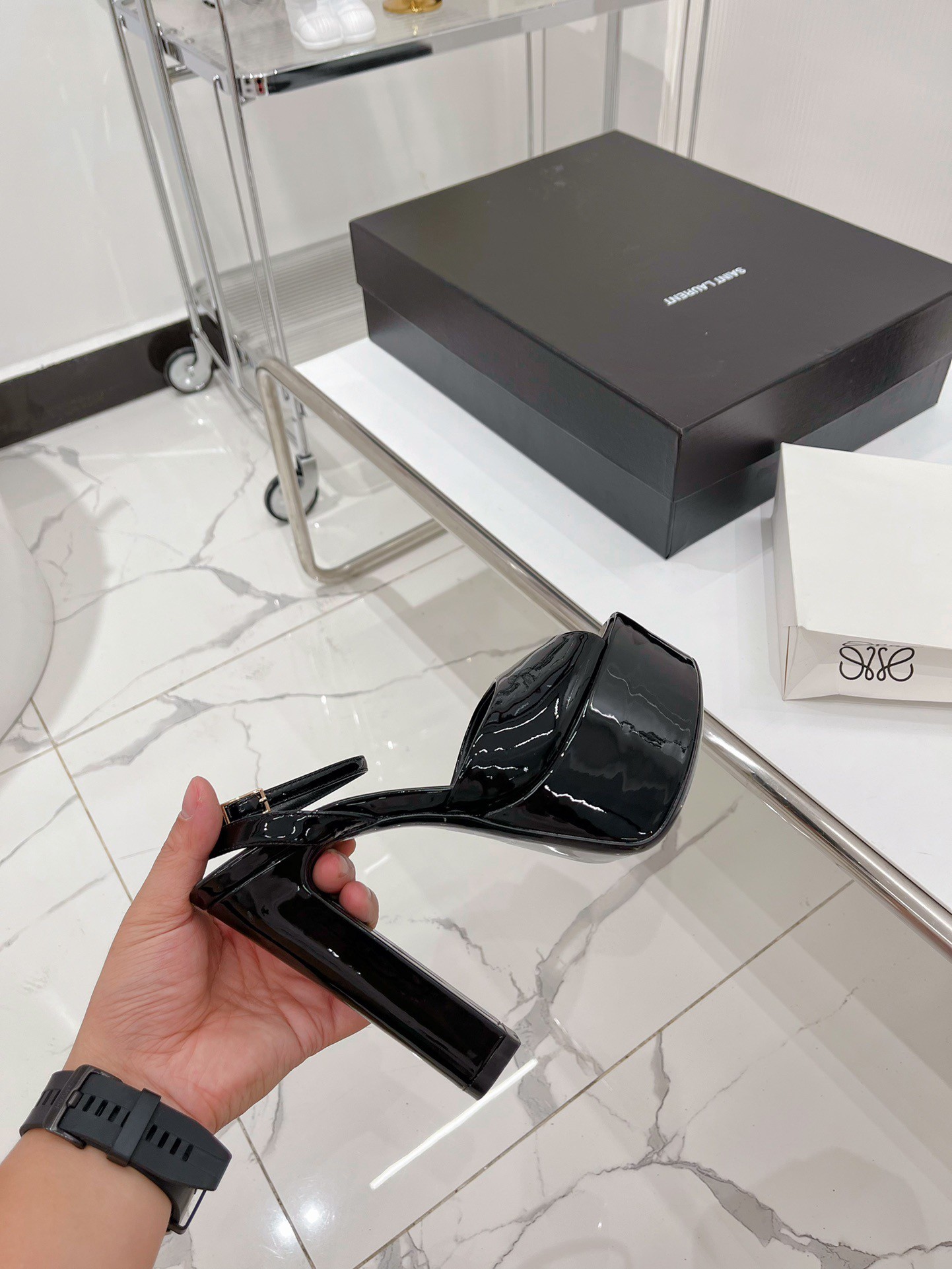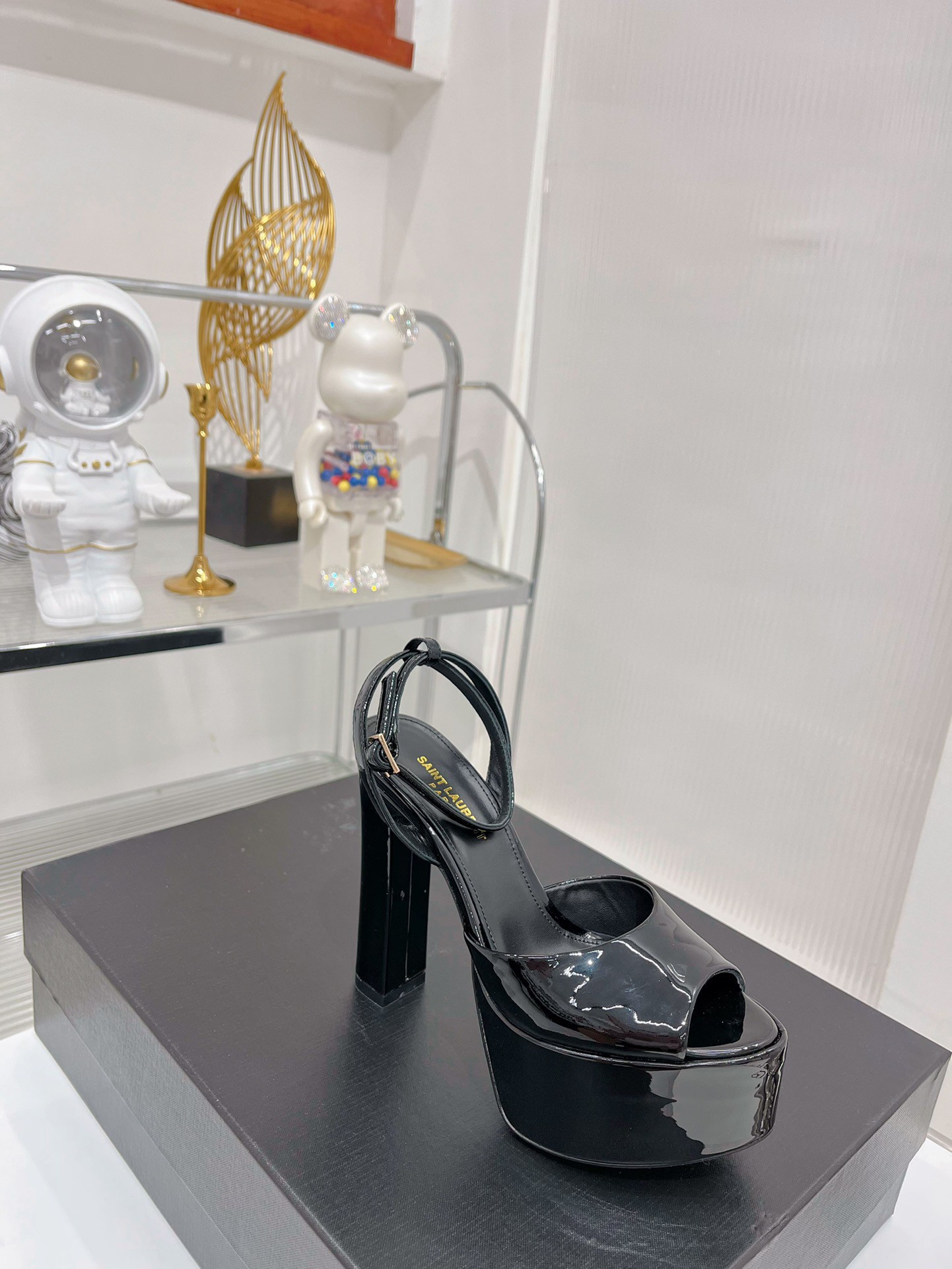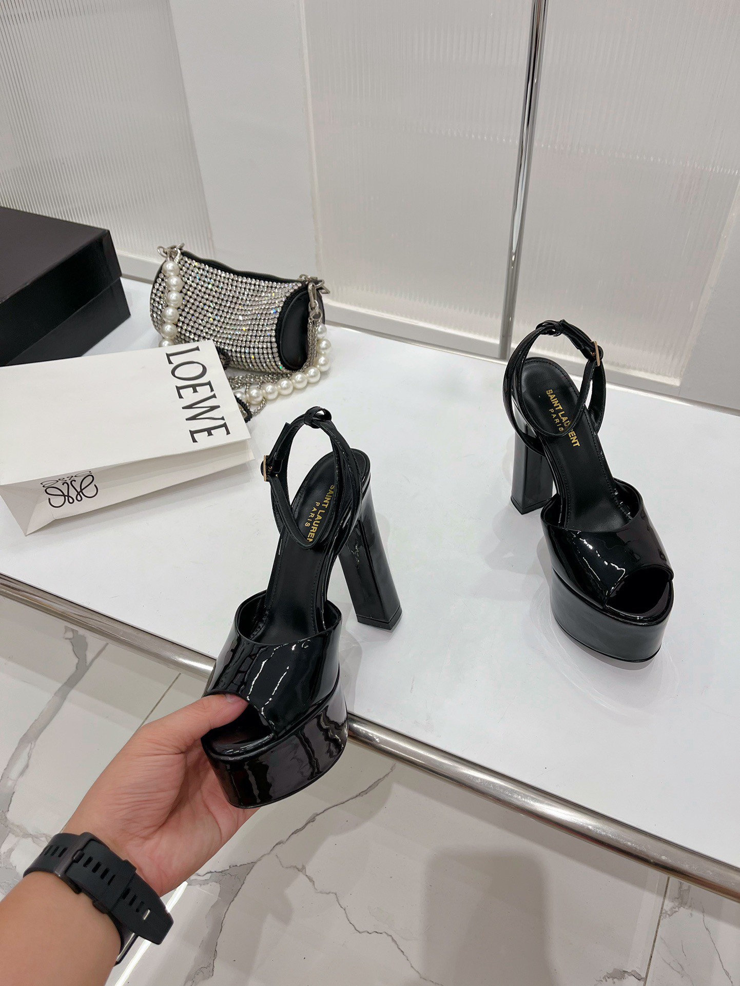 Saint Laurent Jodie Platform Sandals In Black Patent Leather