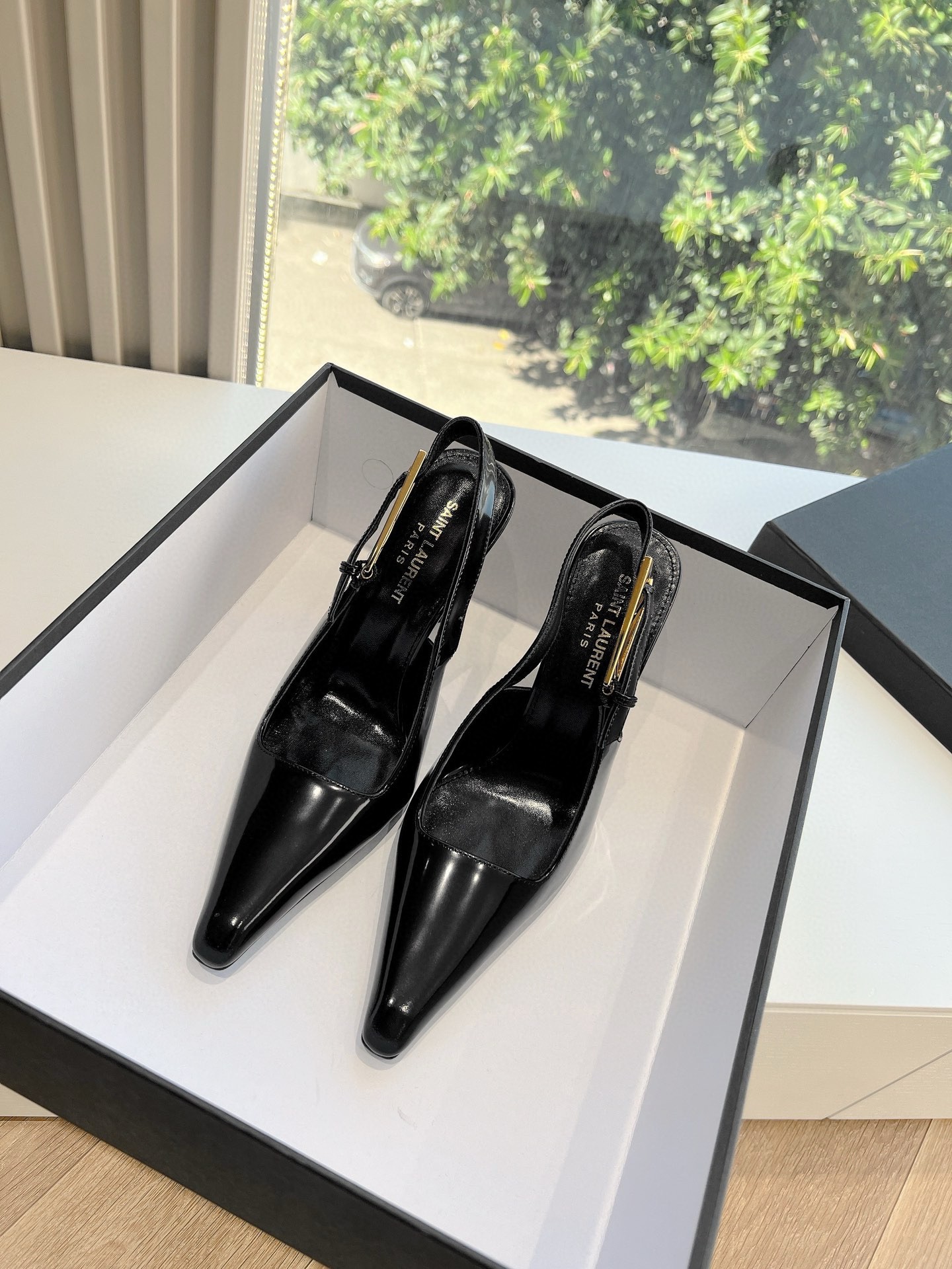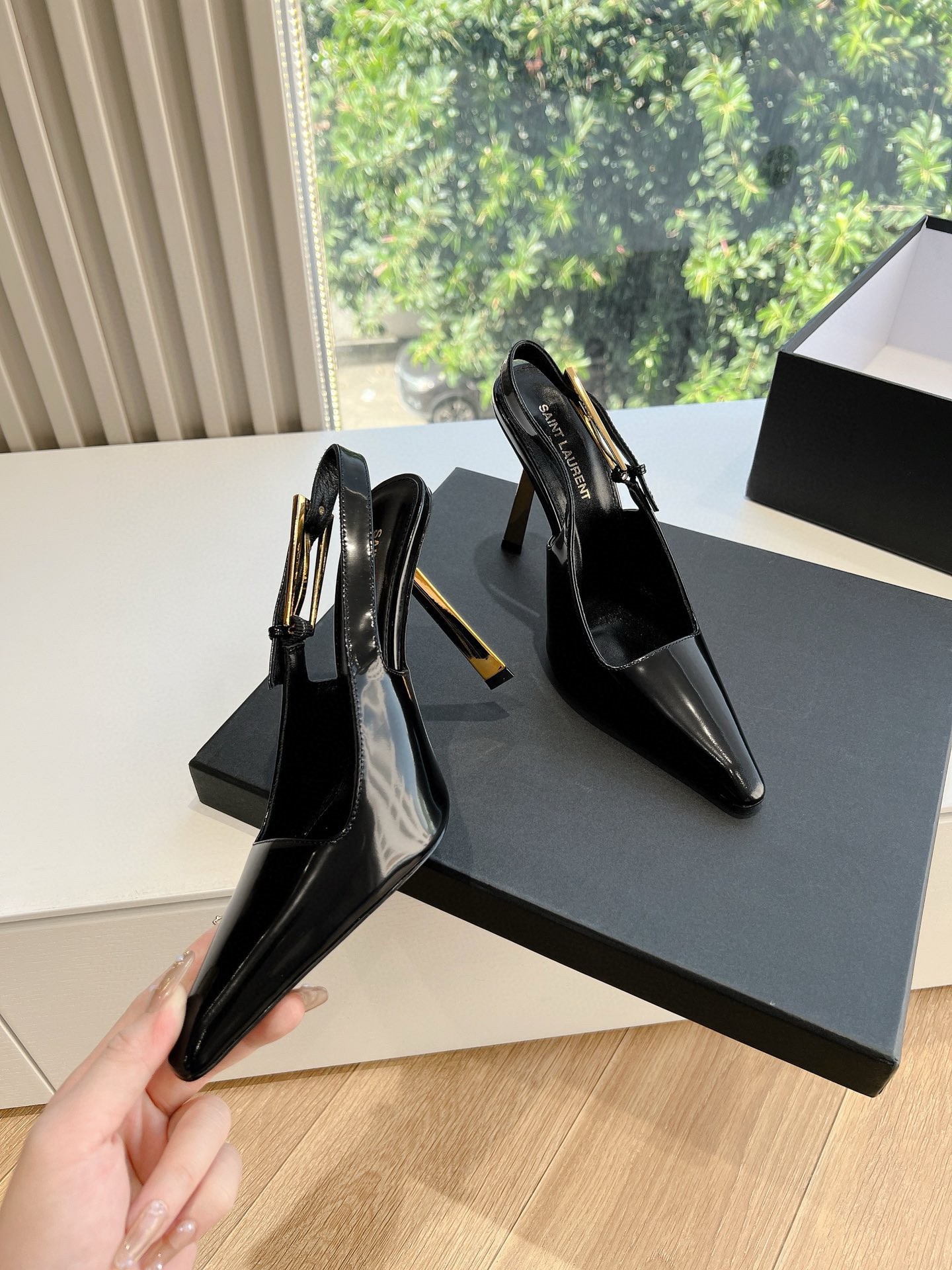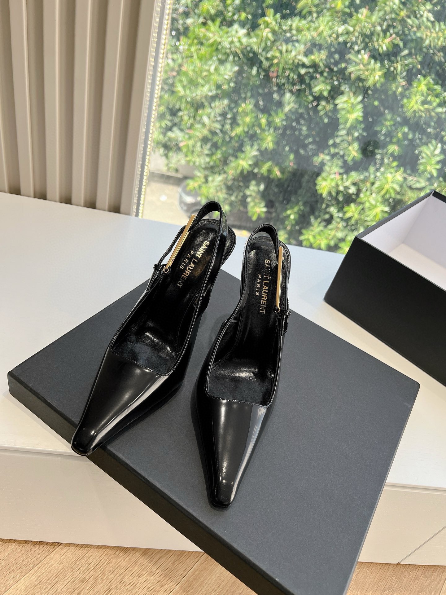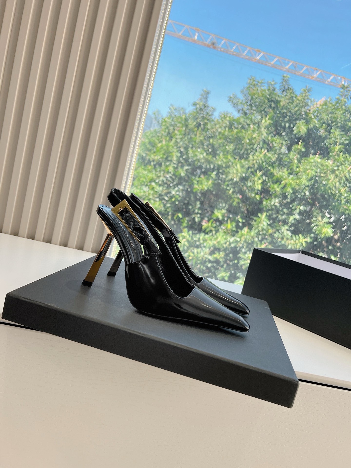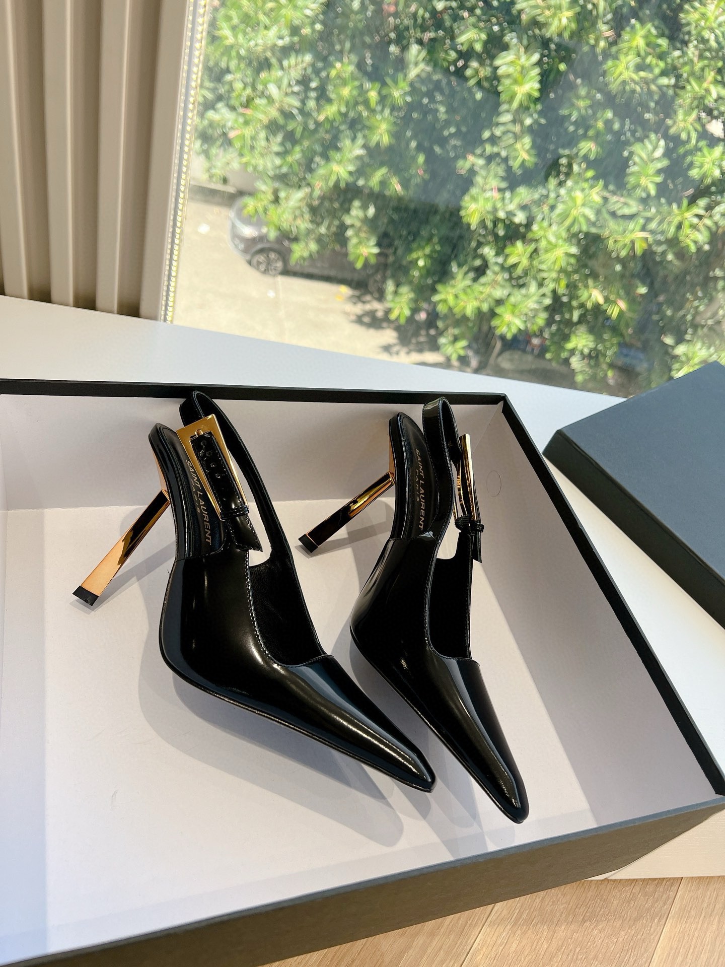 Saint Laurent’s Lee slingbacks will elevate any look thanks to the pointed toe and covered asymmetric stiletto heels. They’ve been made from shiny Glazed leather and have an exaggerated gold-tone buckle. This black version looks chic with nearly anything.
