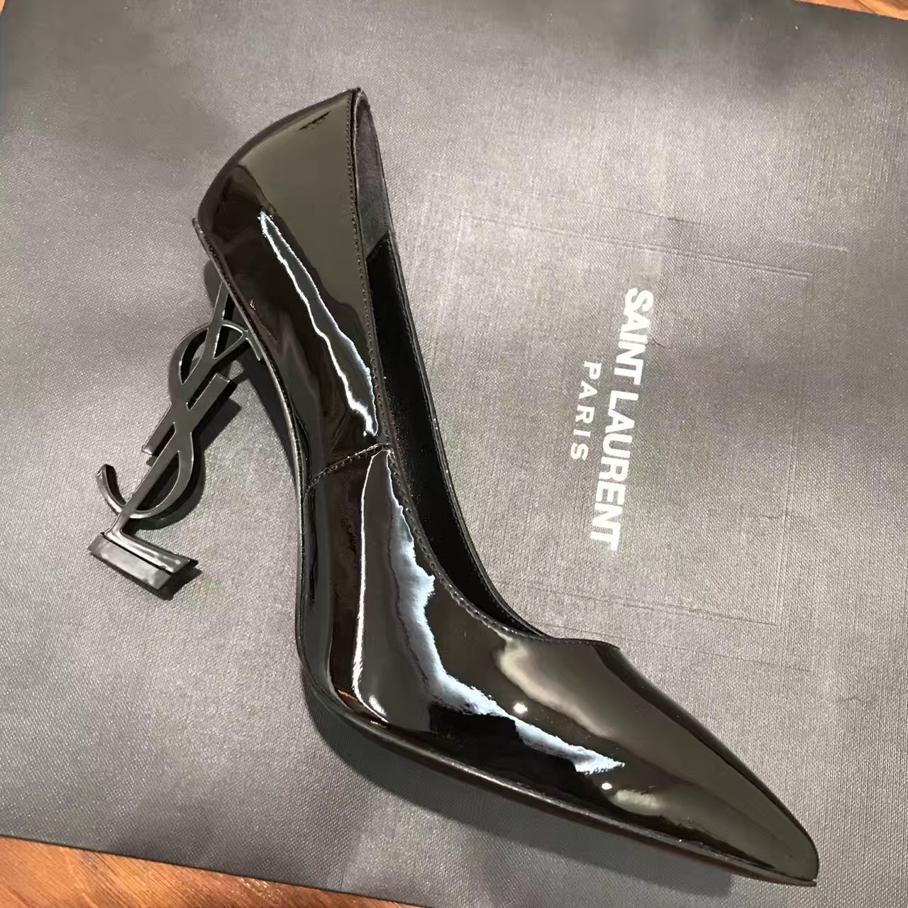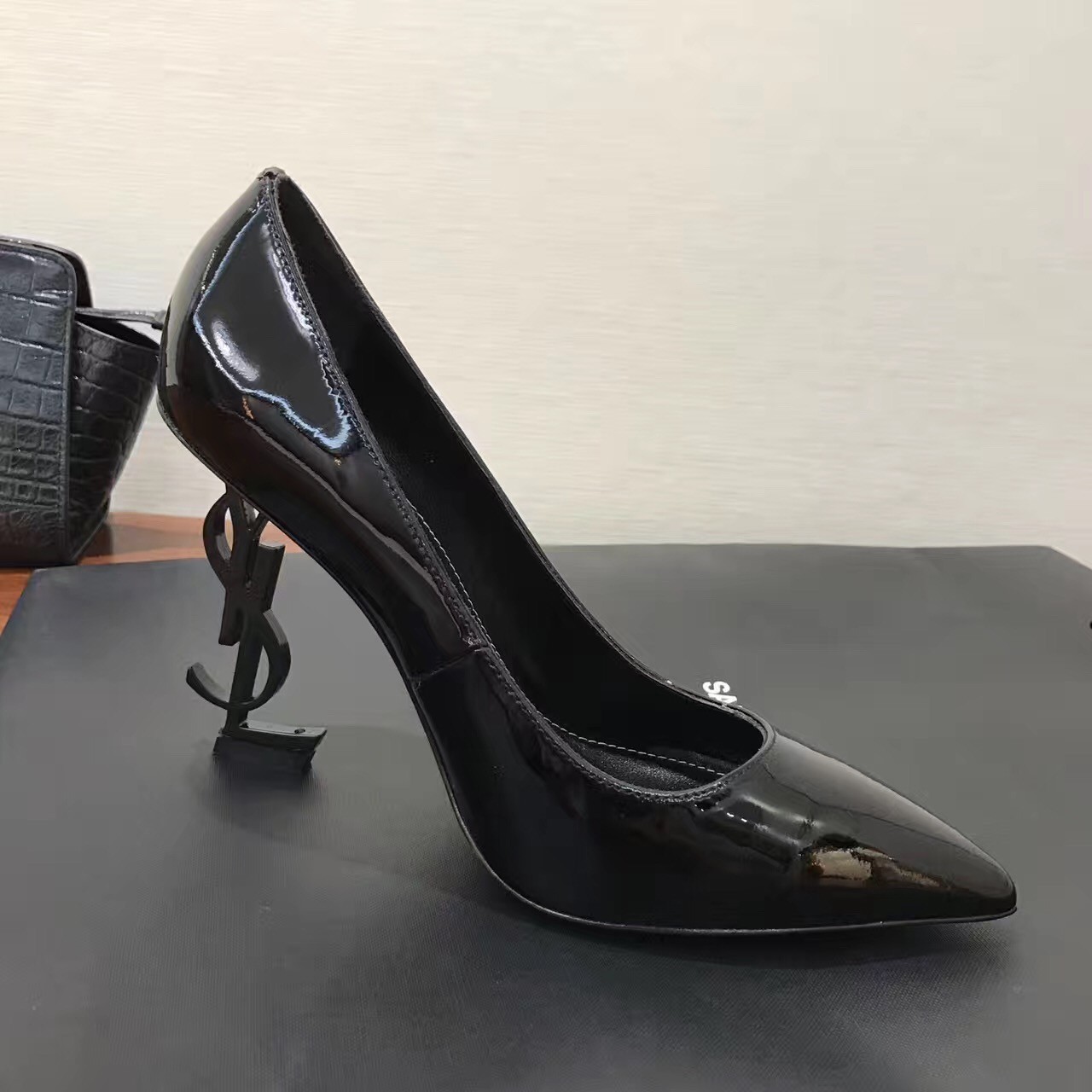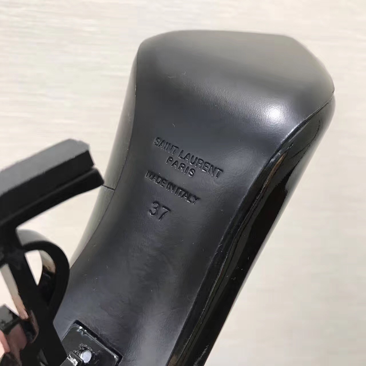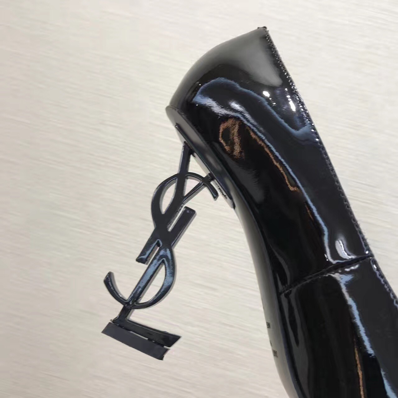 – Black-toned metal YSL heel