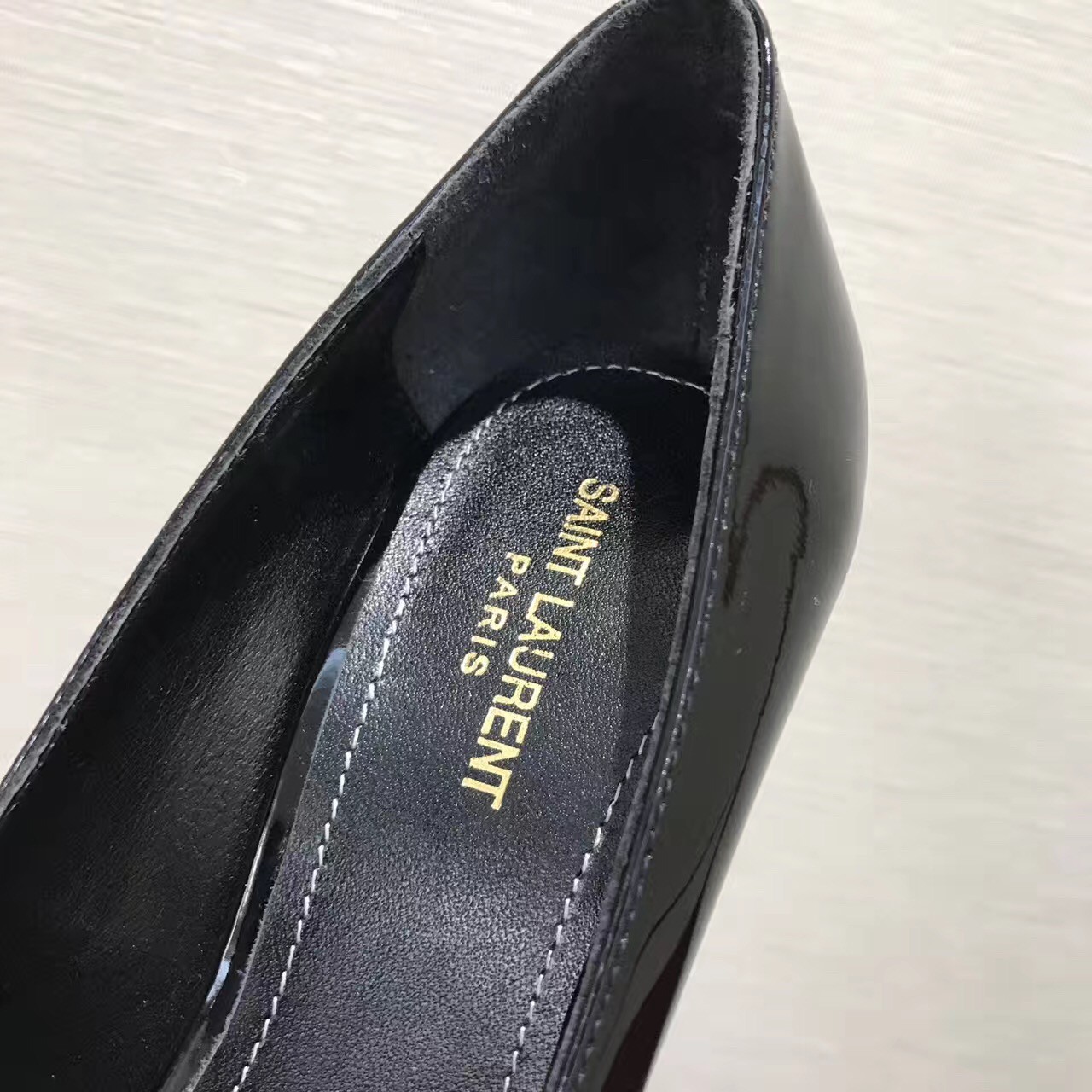 – Structural metal interlocking YSL signature heel and low-cut vamp
