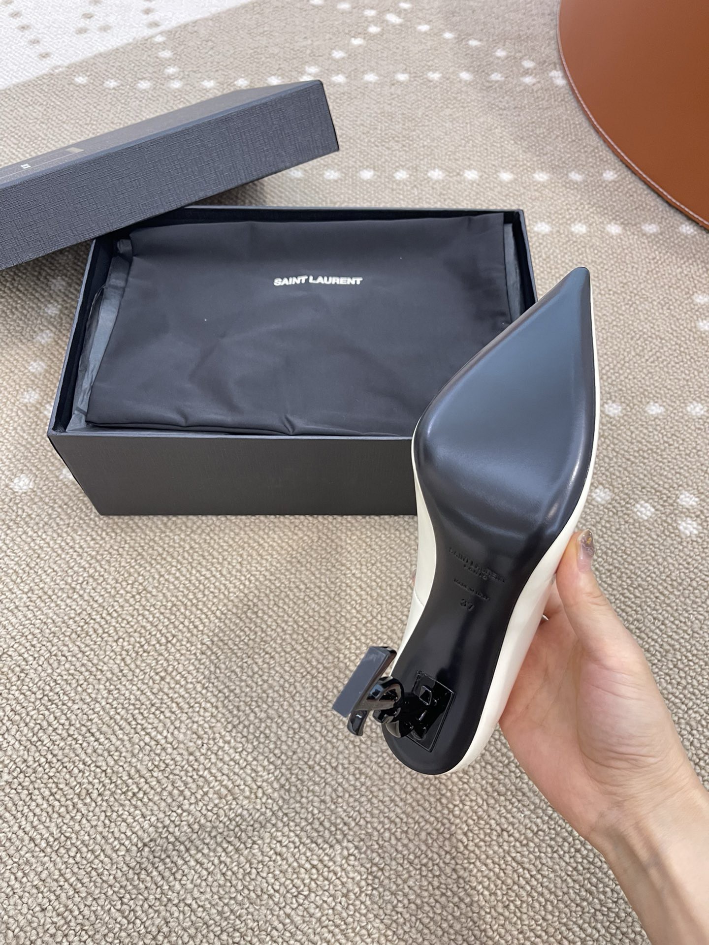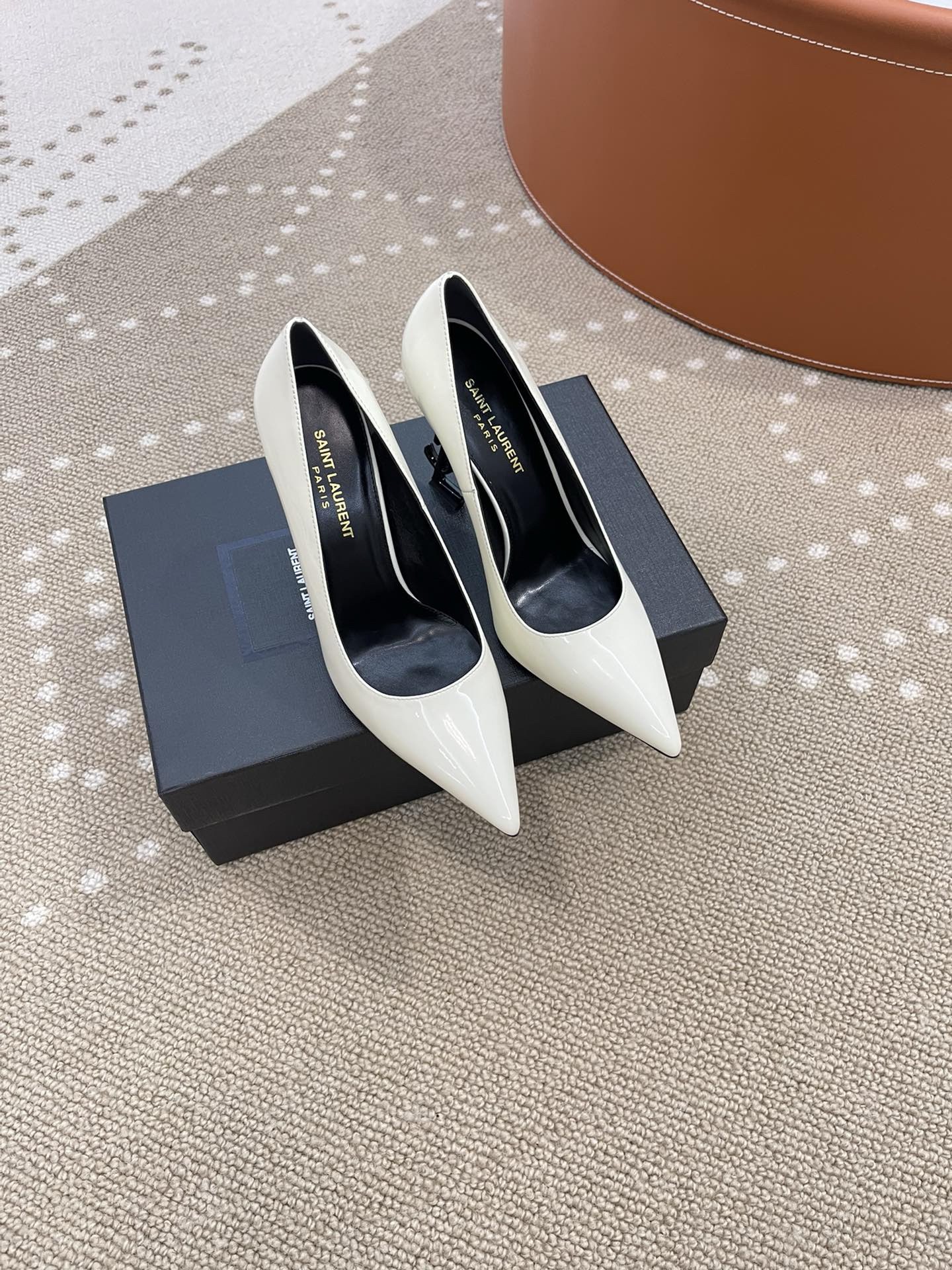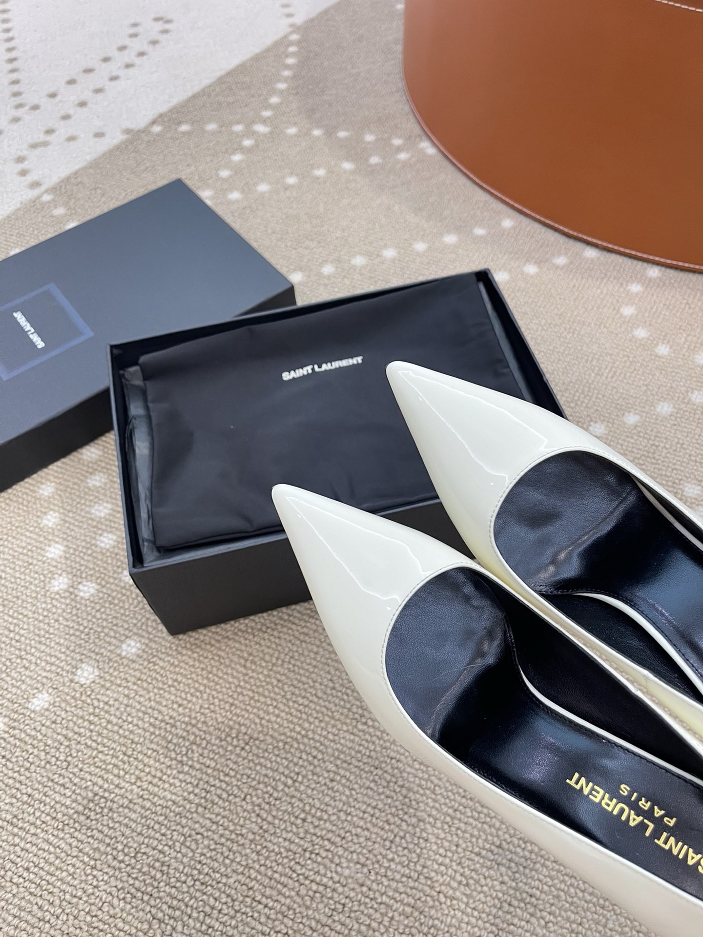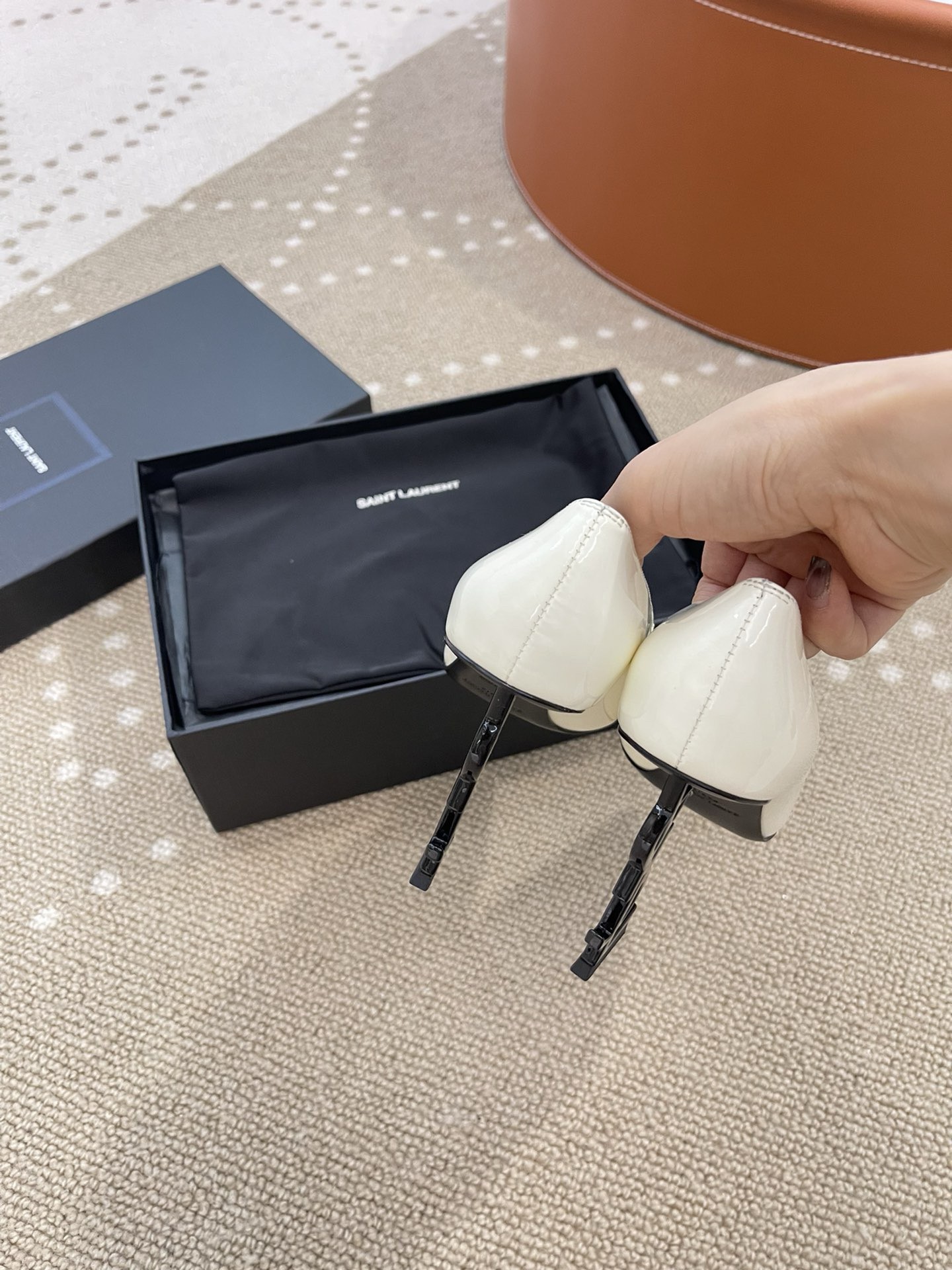 Saint Laurent Opyum 110 Pumps In White Patent Leather with Black Heel