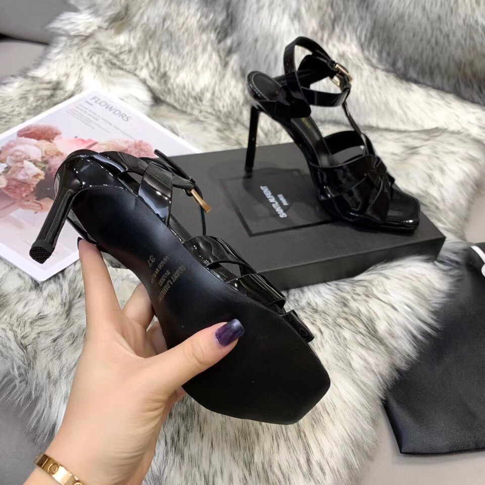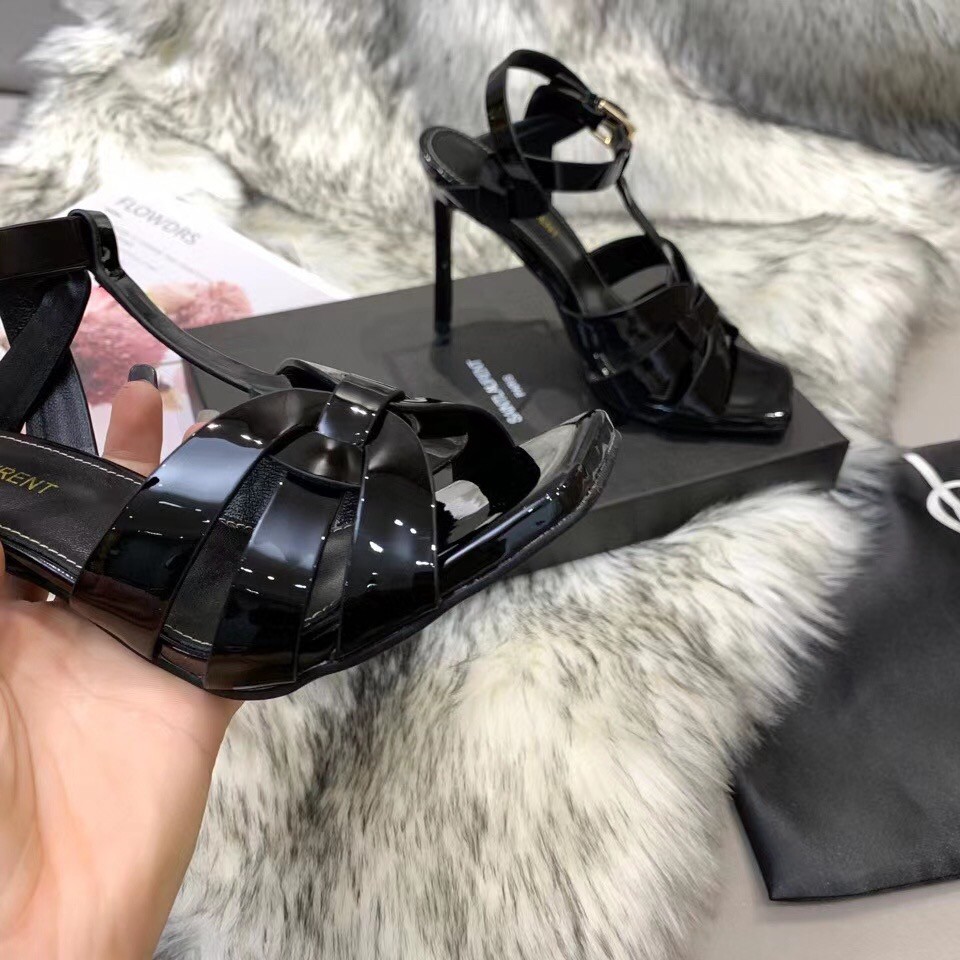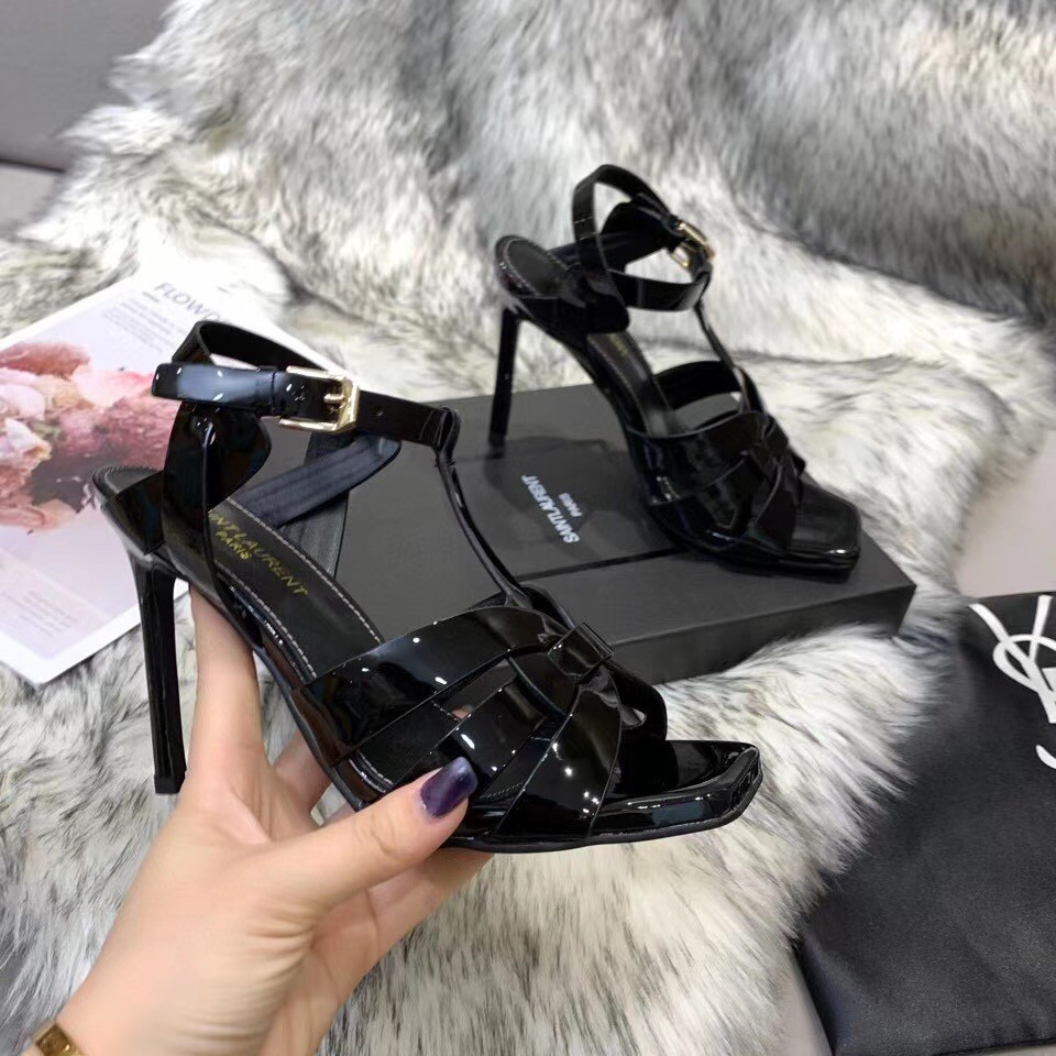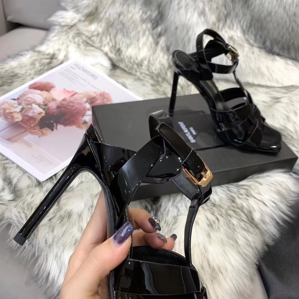 A timeless addition to your shoe portfolio, Saint Laurent’s signature Tribute sandals are updated with an intriguing intertwining strap for a unique touch. Crafted from glossy patent leather and balanced atop a towering stiletto heel for ample height, this recognisable pair promises to complement everything from distressed jeans to floor-skimming gowns.