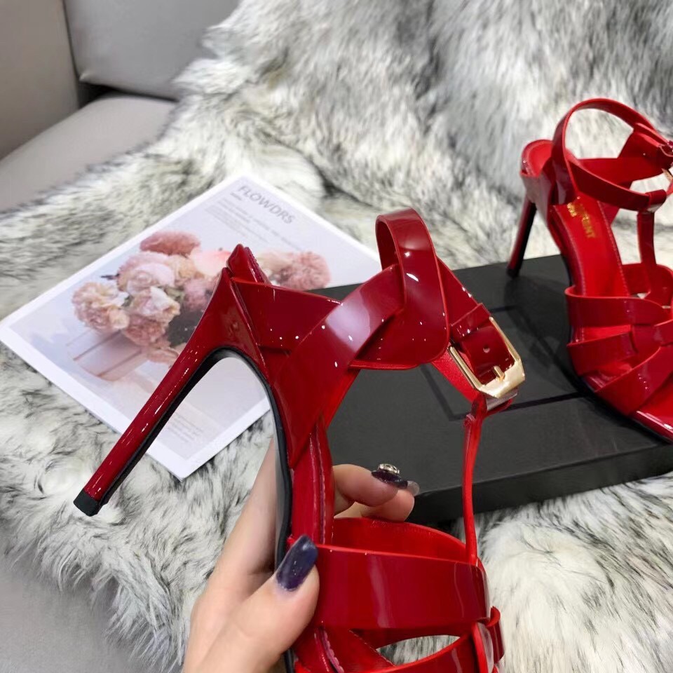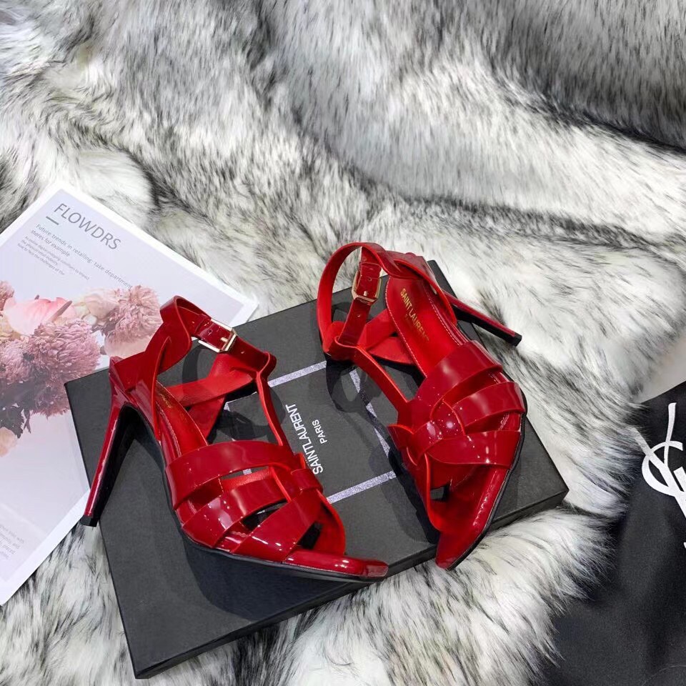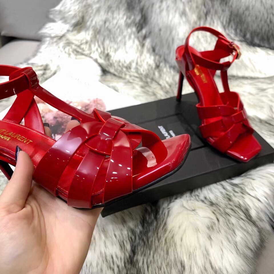 Saint Laurent Tribute Sandals 105 In Red Patent Leather