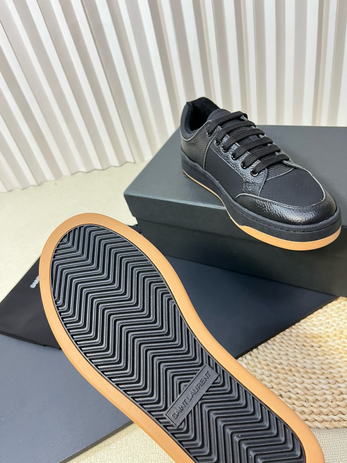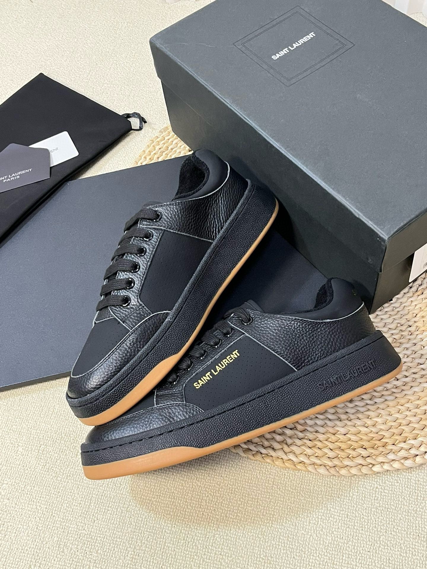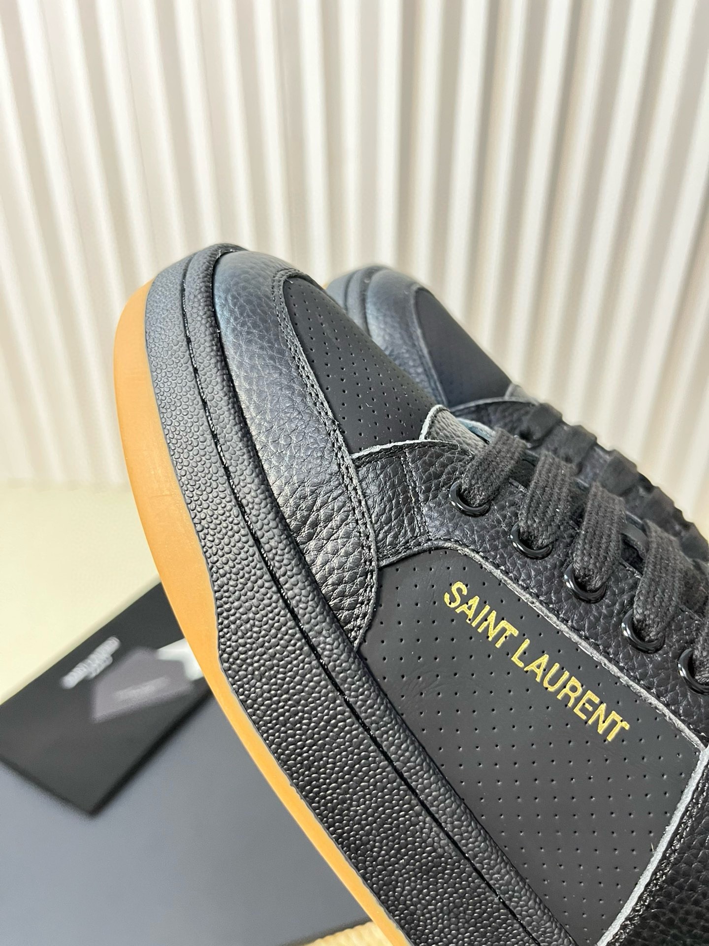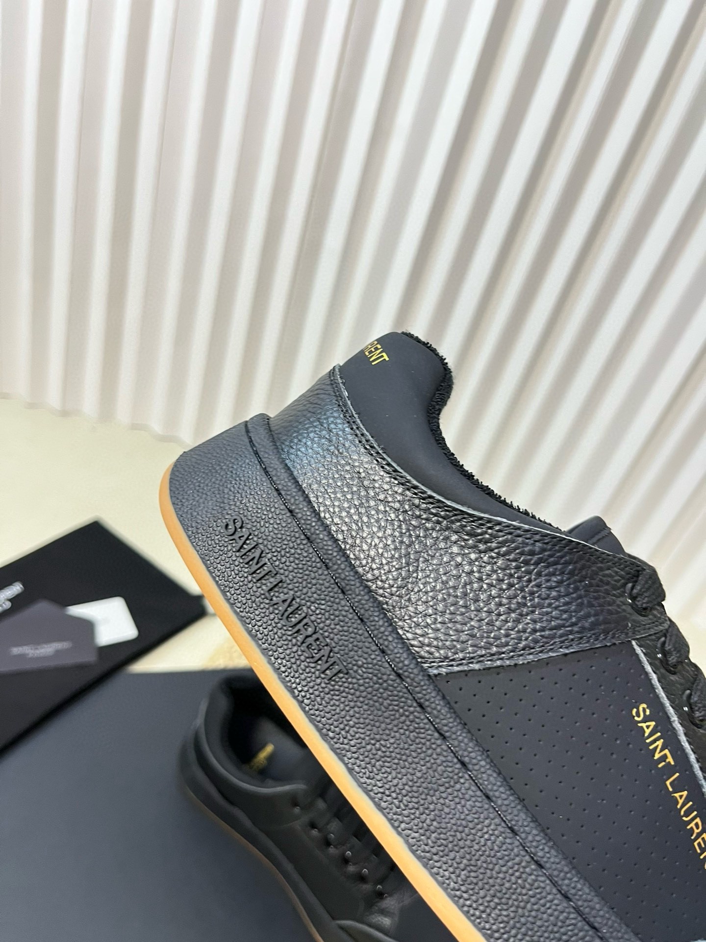 SAINT LAURENT’s ‘SL61’ sneakers have been made from supple black leather that’s perforated at the sides and toe box to enhance breathability. They’re paneled with black for a striking contrast and stamped with the brand’s moniker in gold on the heel tab and sides.