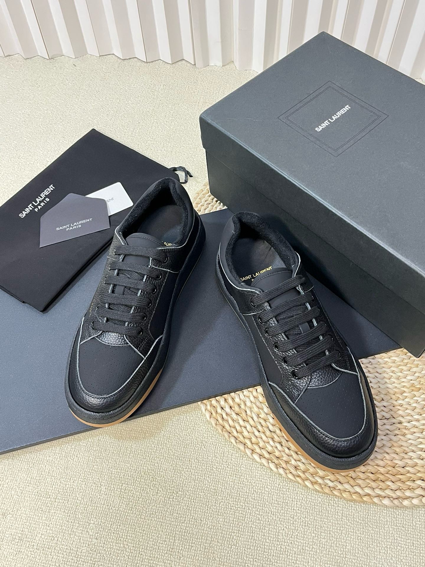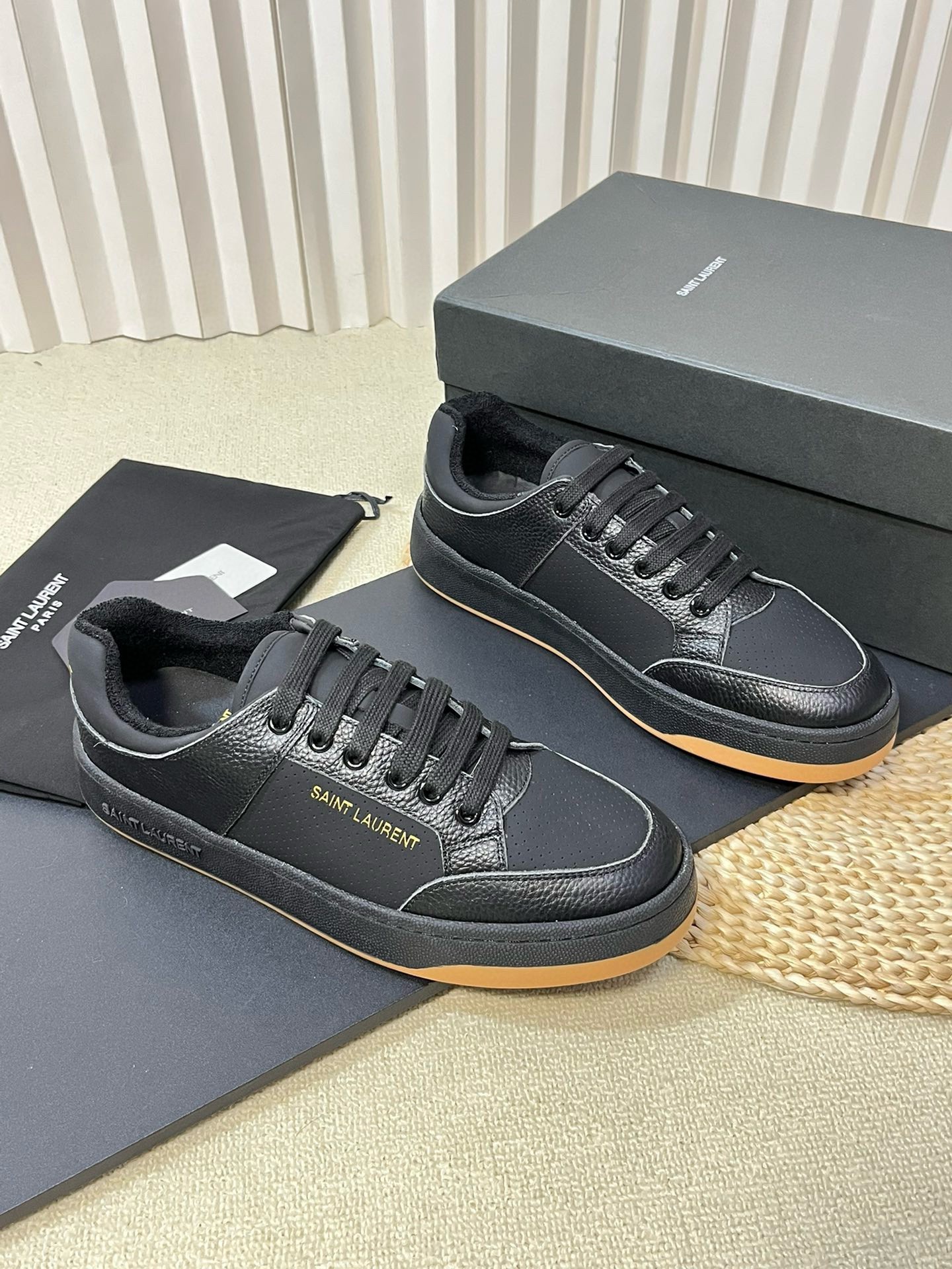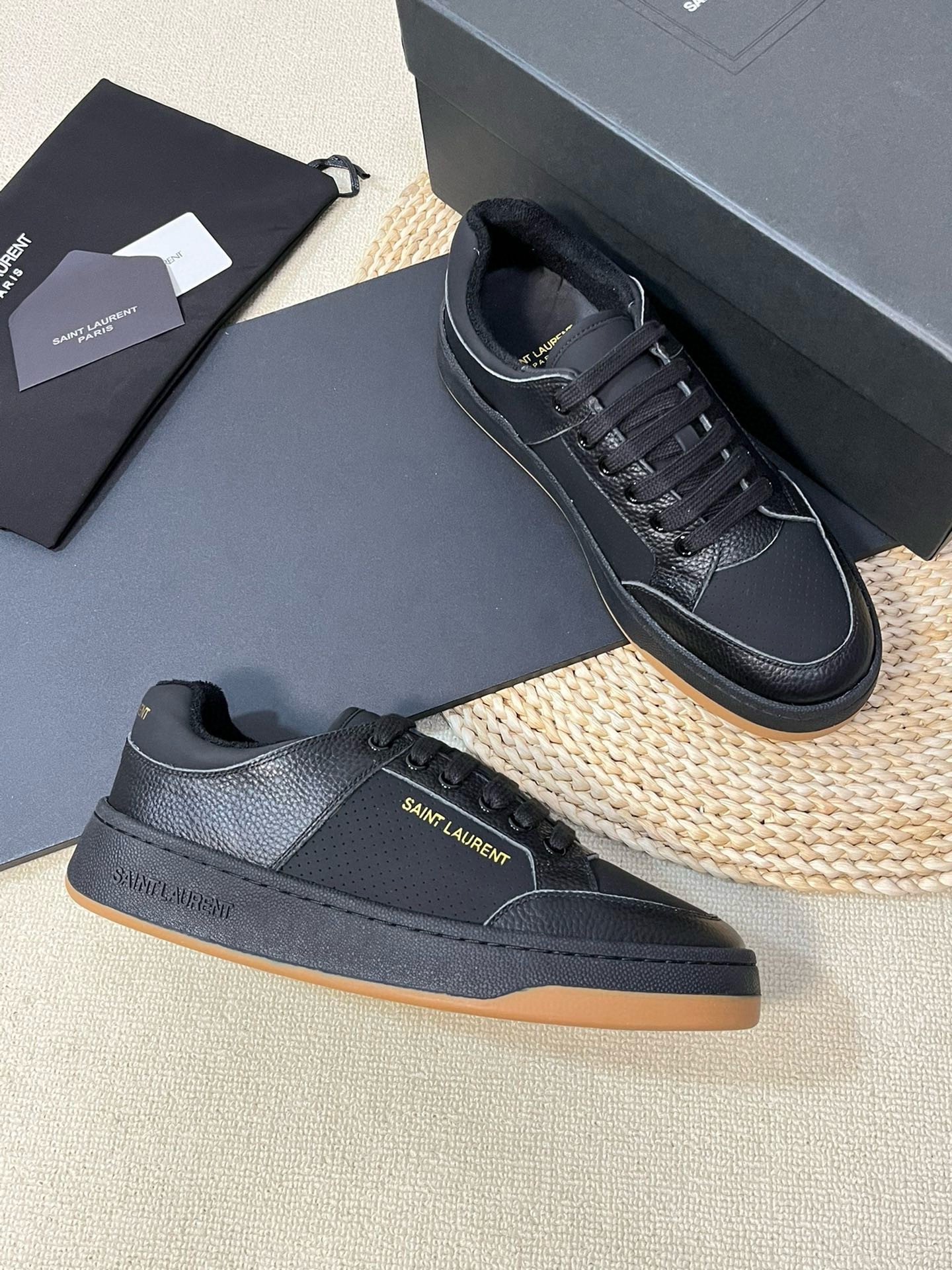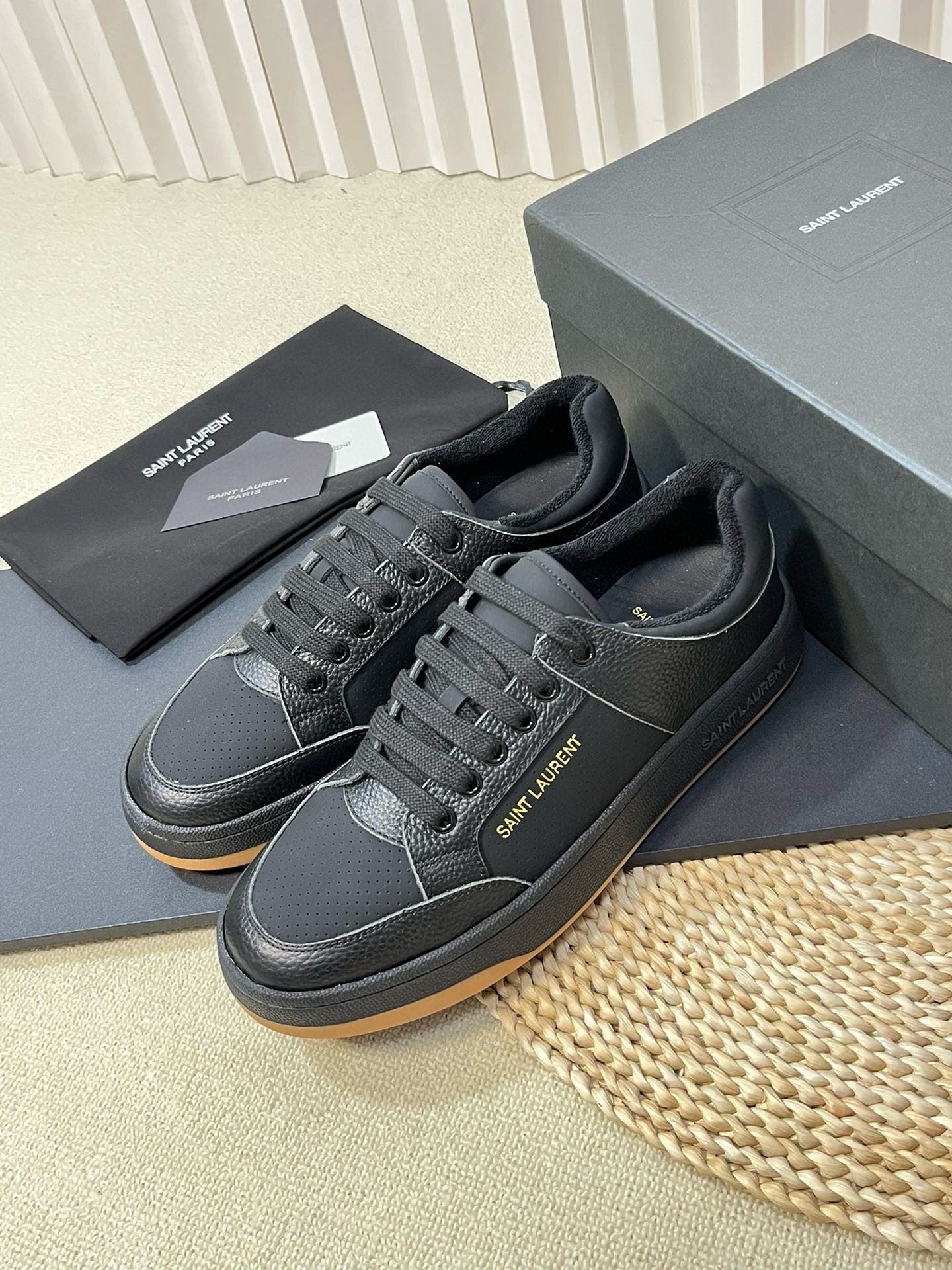SAINT LAURENT’s ‘SL61’ sneakers have been made from supple black leather that’s perforated at the sides and toe box to enhance breathability. They’re paneled with black for a striking contrast and stamped with the brand’s moniker in gold on the heel tab and sides.