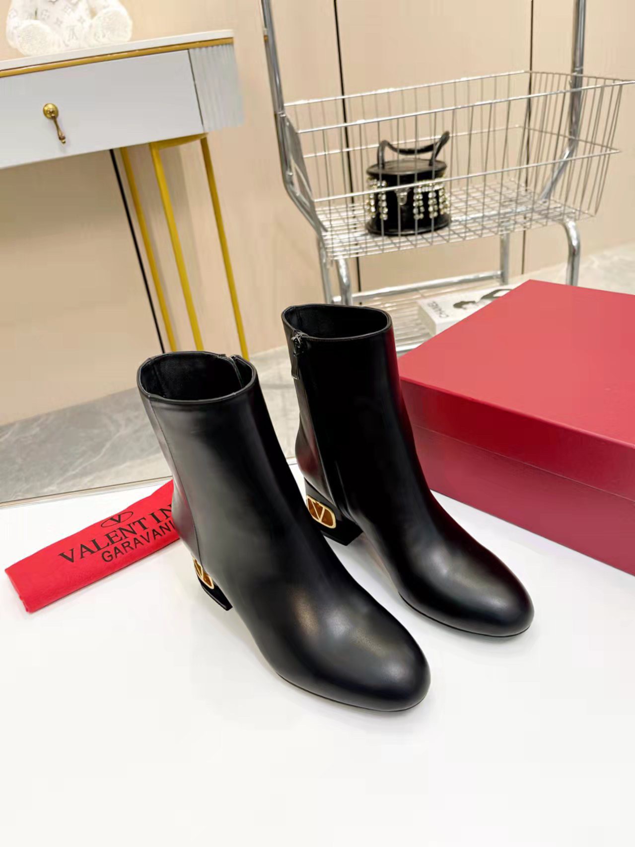 The polished finish of these Valentino Garavani ankle boots will ensure they shine in any weather. Made from calf leather, the sleek design is finished with golden VLogo detailing on the block heels.
