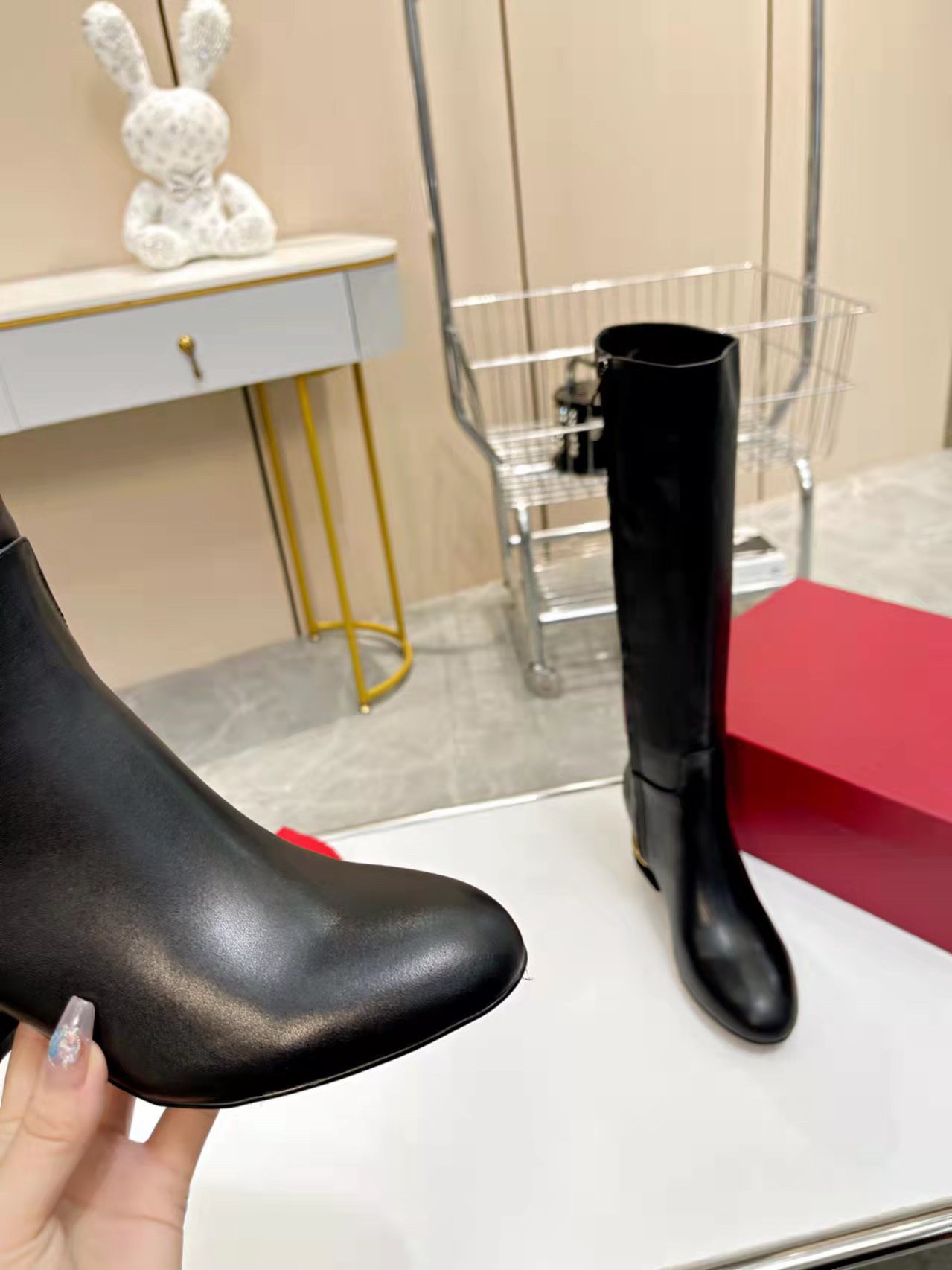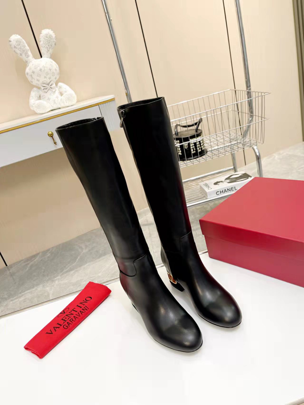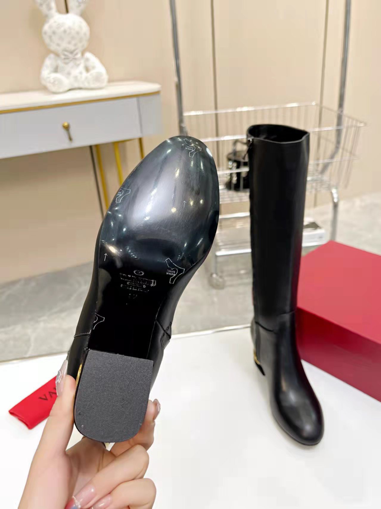 Valentino Garavani adds a signature spin to classic black knee-high boots as showcased on this pair that are detailed with the house’s signature VLogo at the heel.