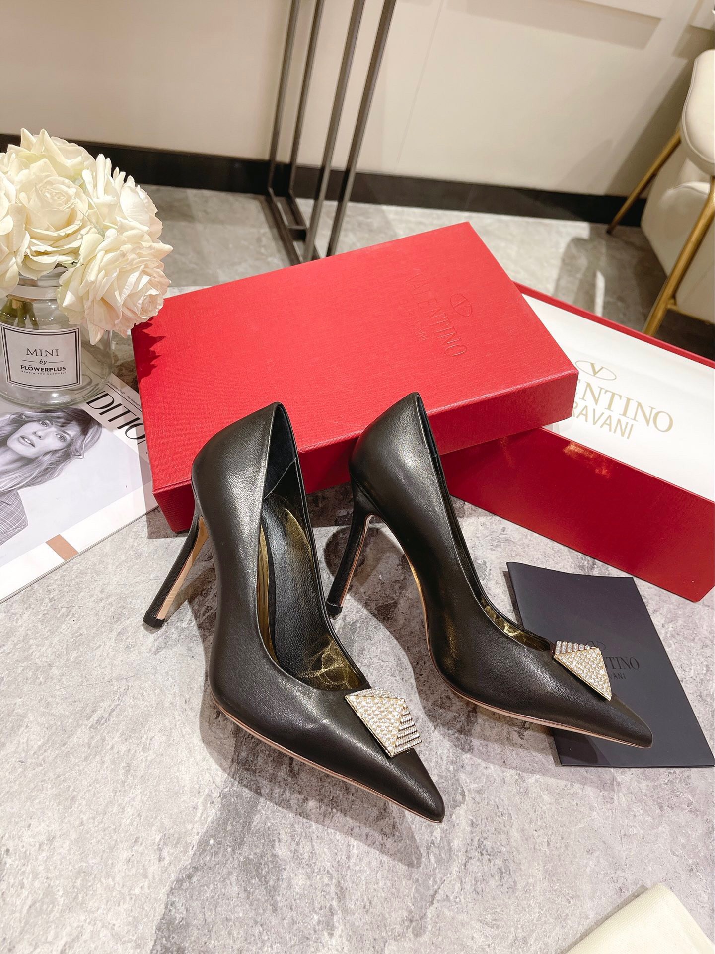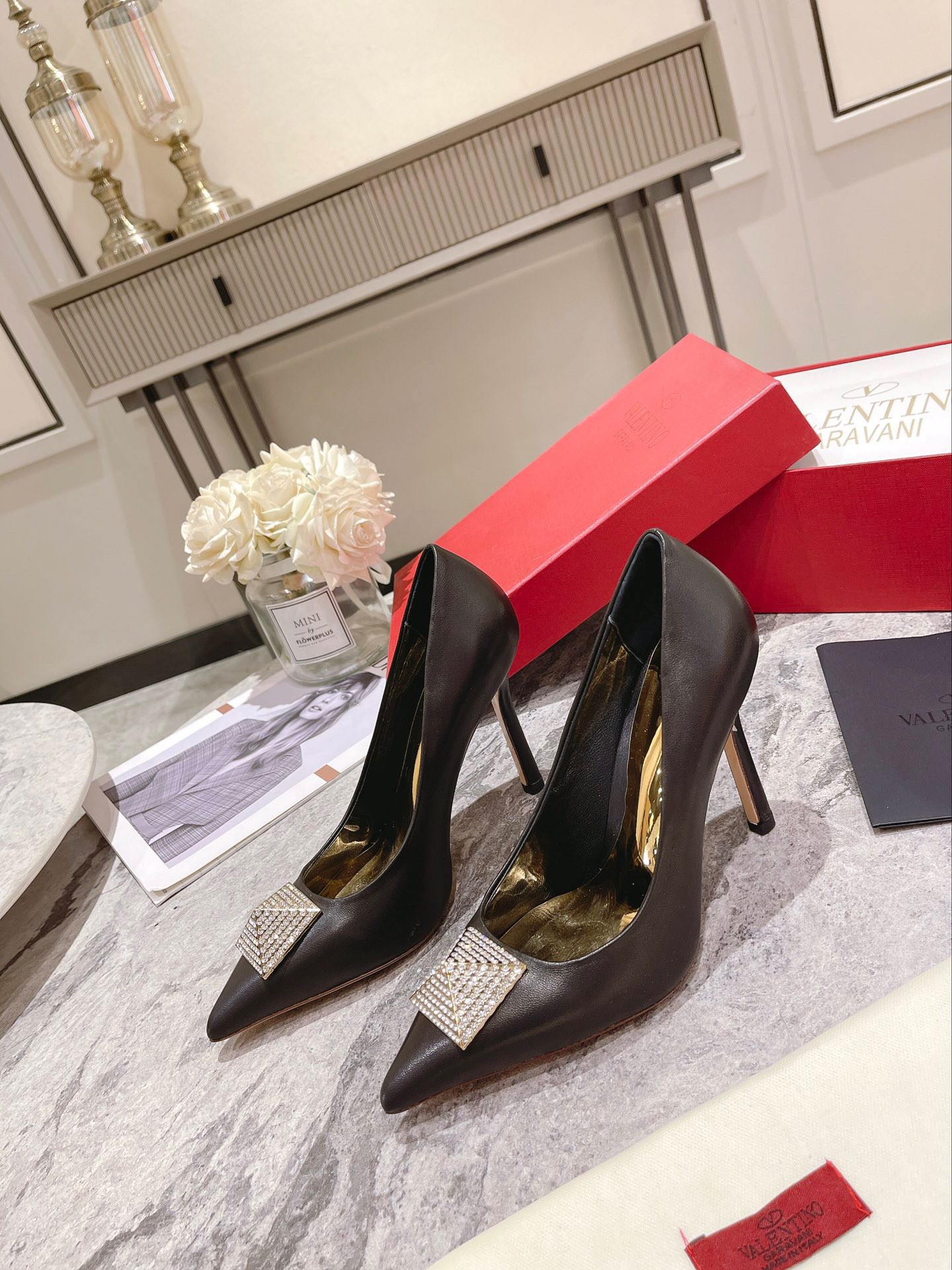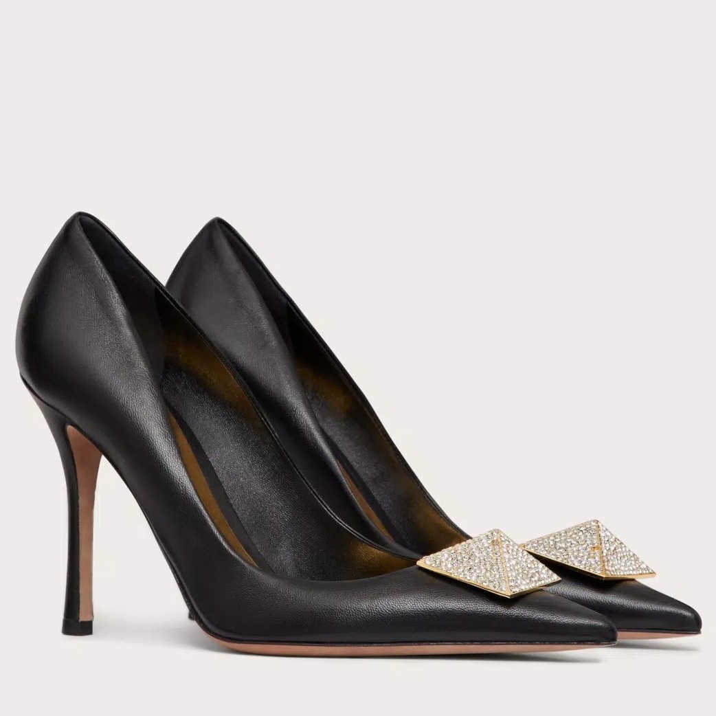 Valentino One Stud Pumps 100mm in Black Nappa Leather with Crystal