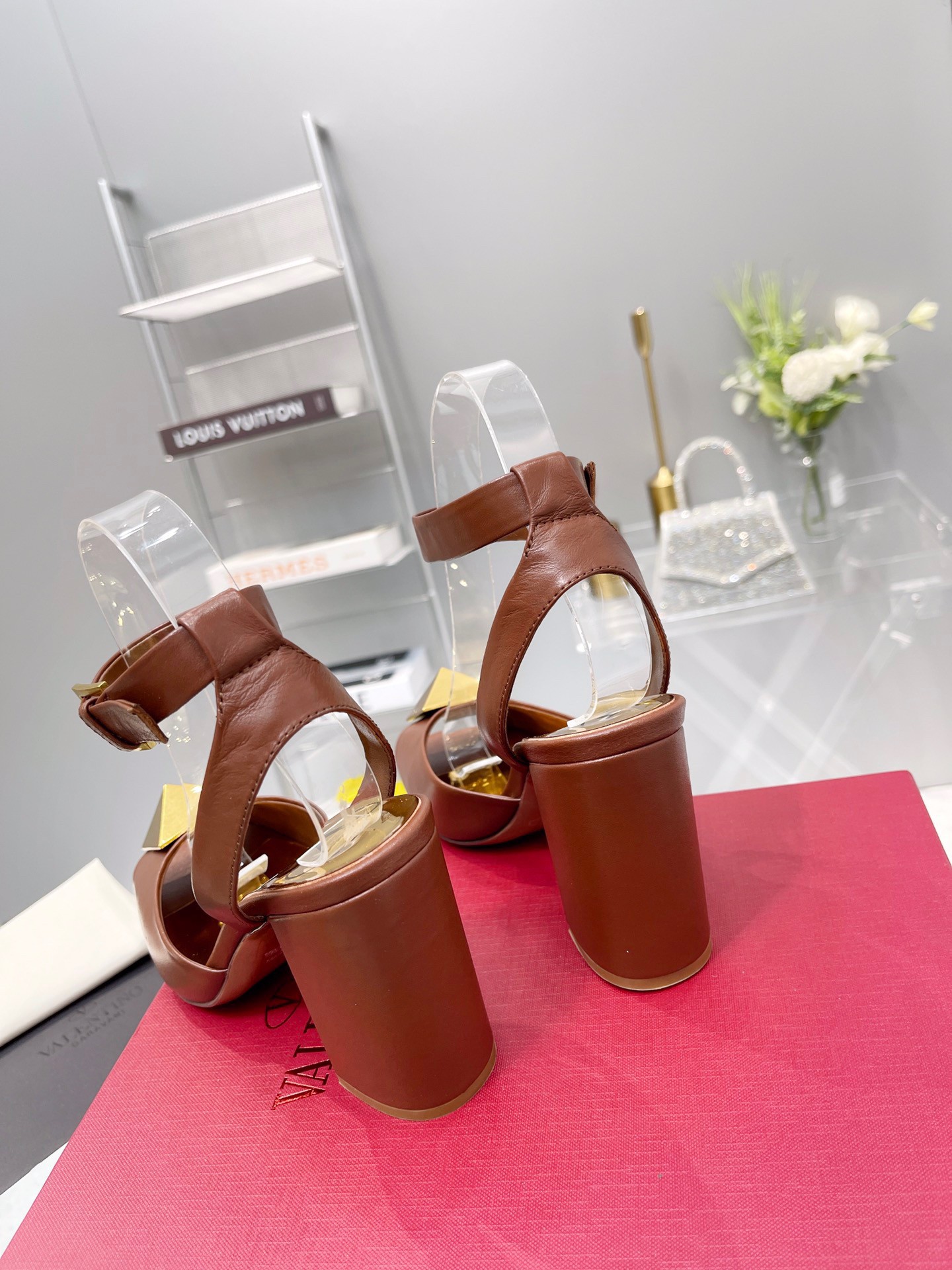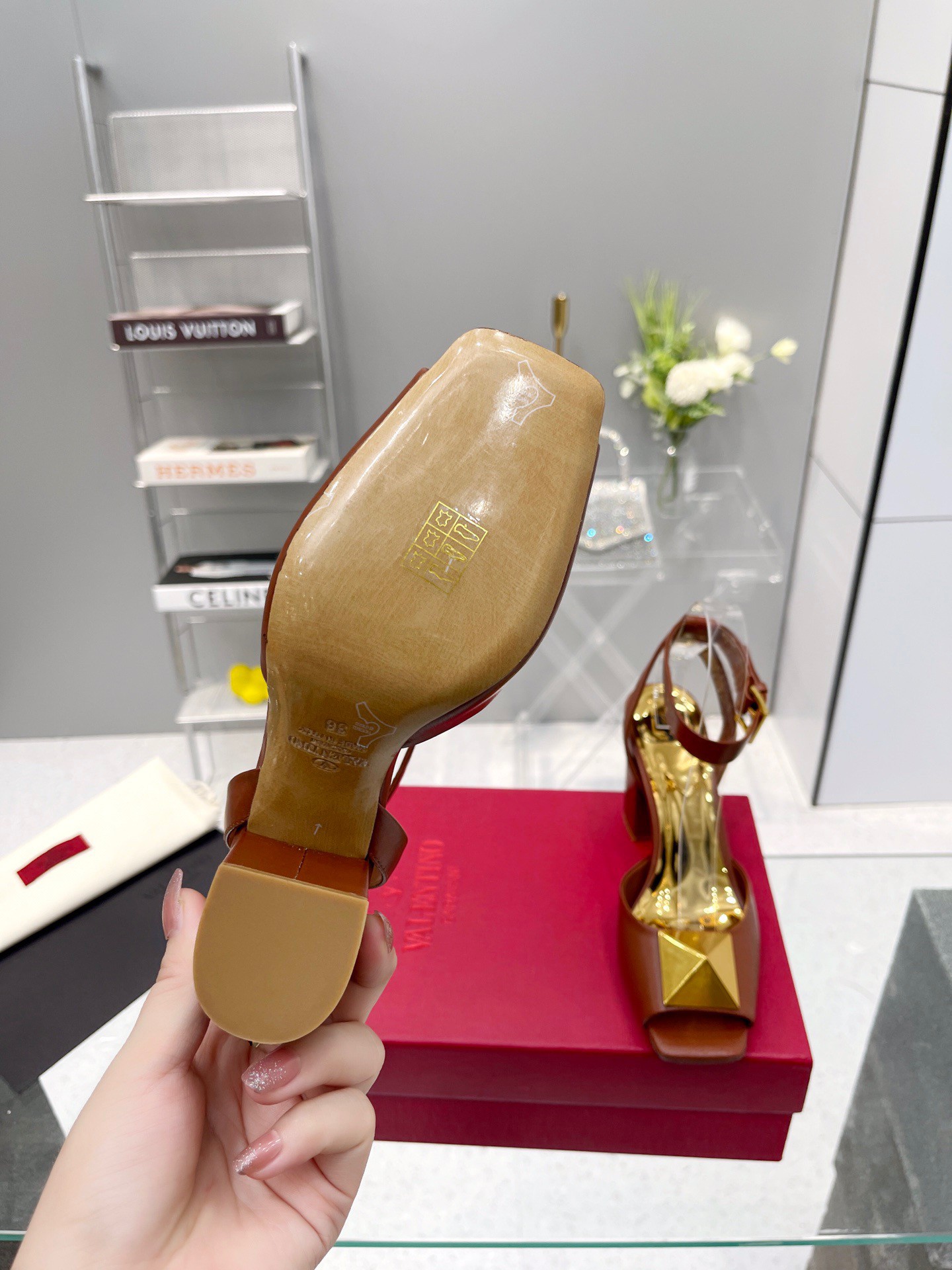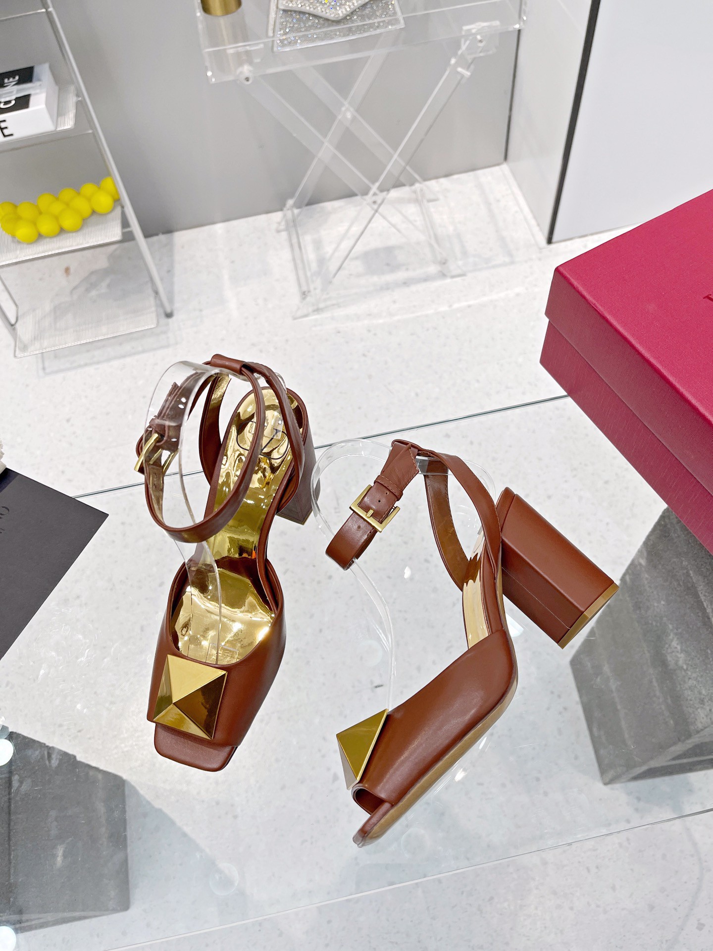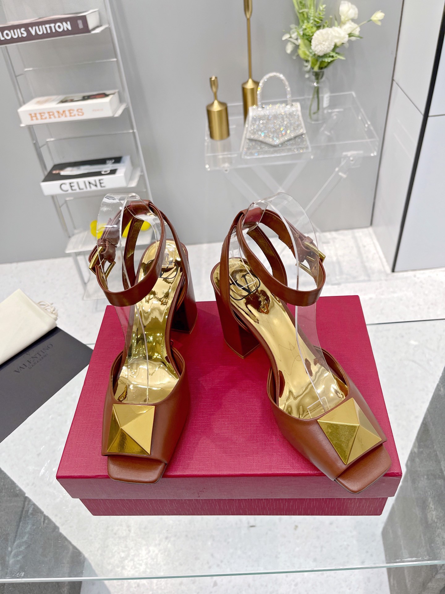 Valentino Garavani’s sandals are topped with a single, sizable gold-tone pyramid stud that matches the buckle fastening at the ankle strap. They’re made from leather in a chic square-toe silhouette and have a 90mm heel. Wear yours with tailoring or dresses.