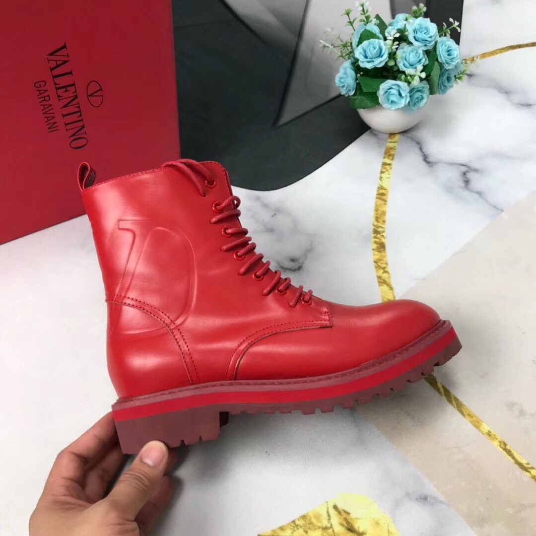 Capture the essence of Italian luxury and glamour with the latest Valentino collection and these smooth leather Vlogo combat boots. Featuring an ankle length, a pull tab at the rear, a lace-up front fastening and a ridged rubber sole.