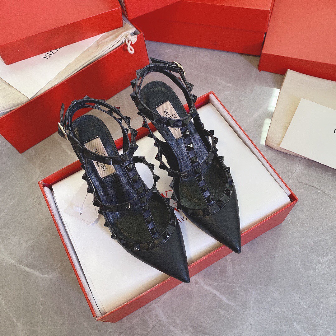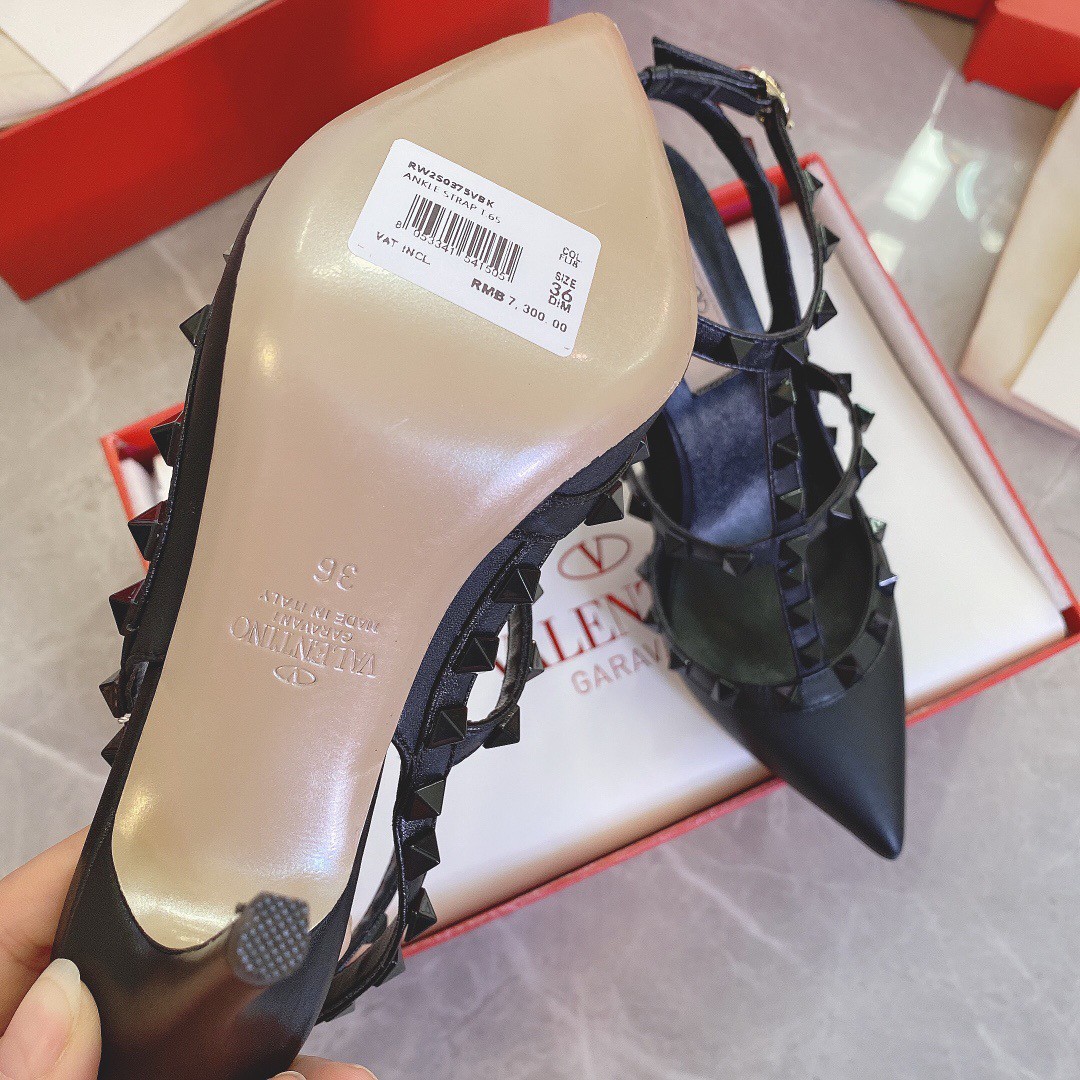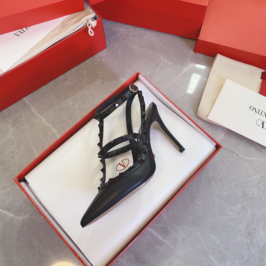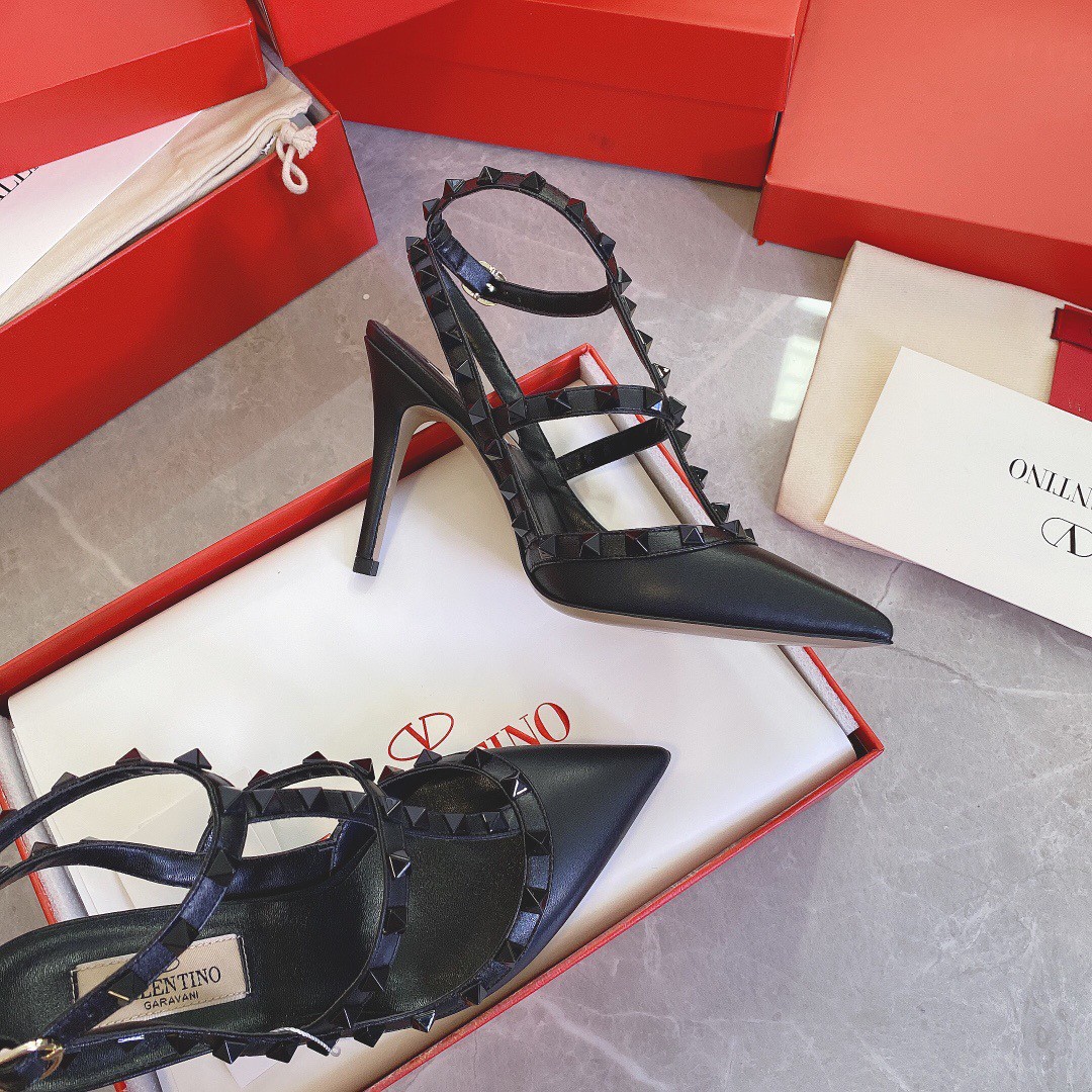 These black ankle strap pumps encapsulate Valentino Garavani’s careful balance of femininity and rebellion. Made from smooth leather, they have a point-toe silhouette with Rockstud-embellished straps and stiletto heels.