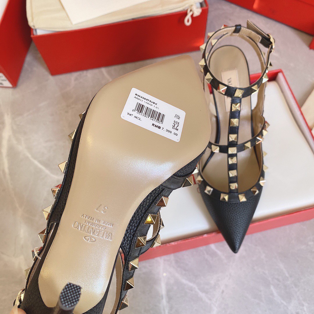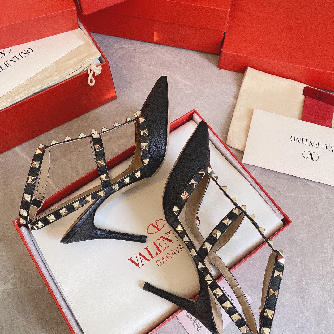 Valentino Garavani’s Rockstud pumps area now-iconic style, instantly recognisable for its triple strap silhouette and polished pyramid studs. Expertly crafted from luxurious grained leather, this bold high-heeled pump narrows into a flattering pointed toe. Pair with tailored separates by day and a cocktail dress come nightfall.