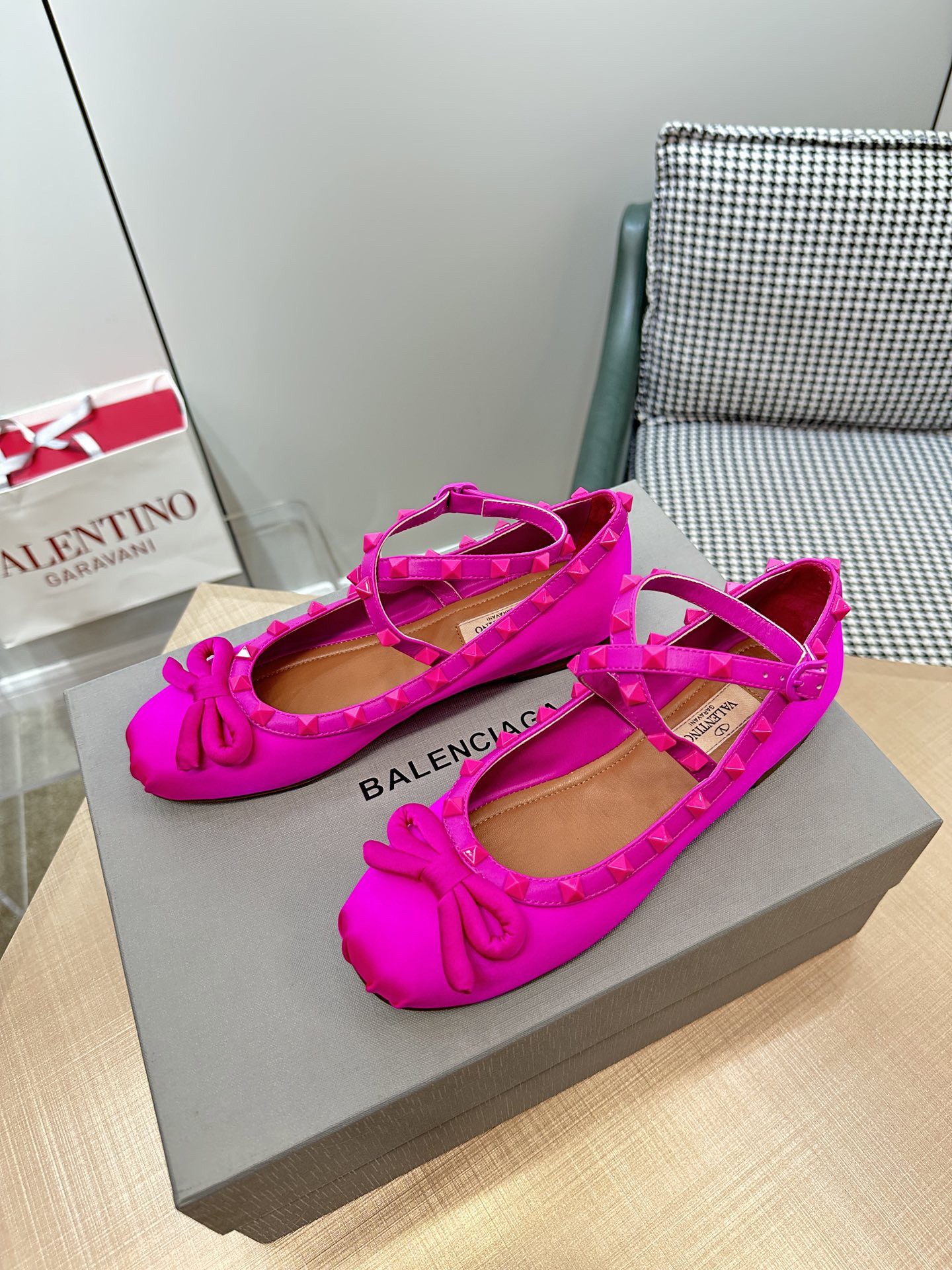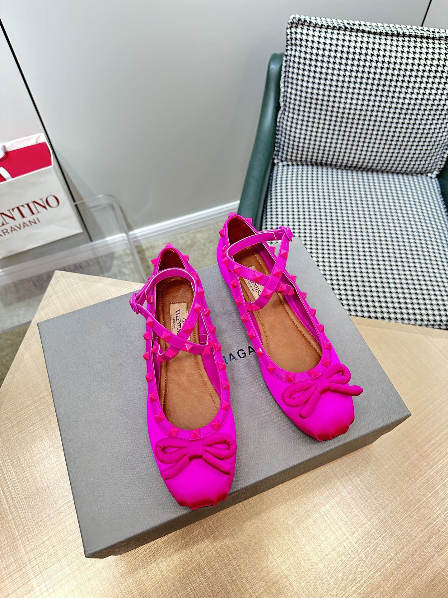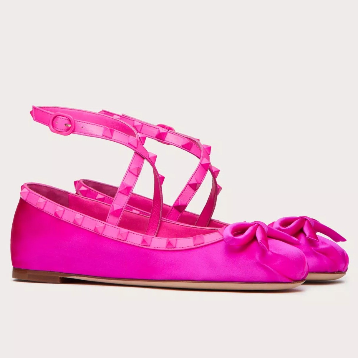 Ballet flats are having a renaissance and Valentino Garavani’s iteration are undeniably classic. Leather trims and pointy ‘Rockstuds’ toughen up the softness of the satin and the pretty bows. The crisscross straps keep your feet comfortably in place.