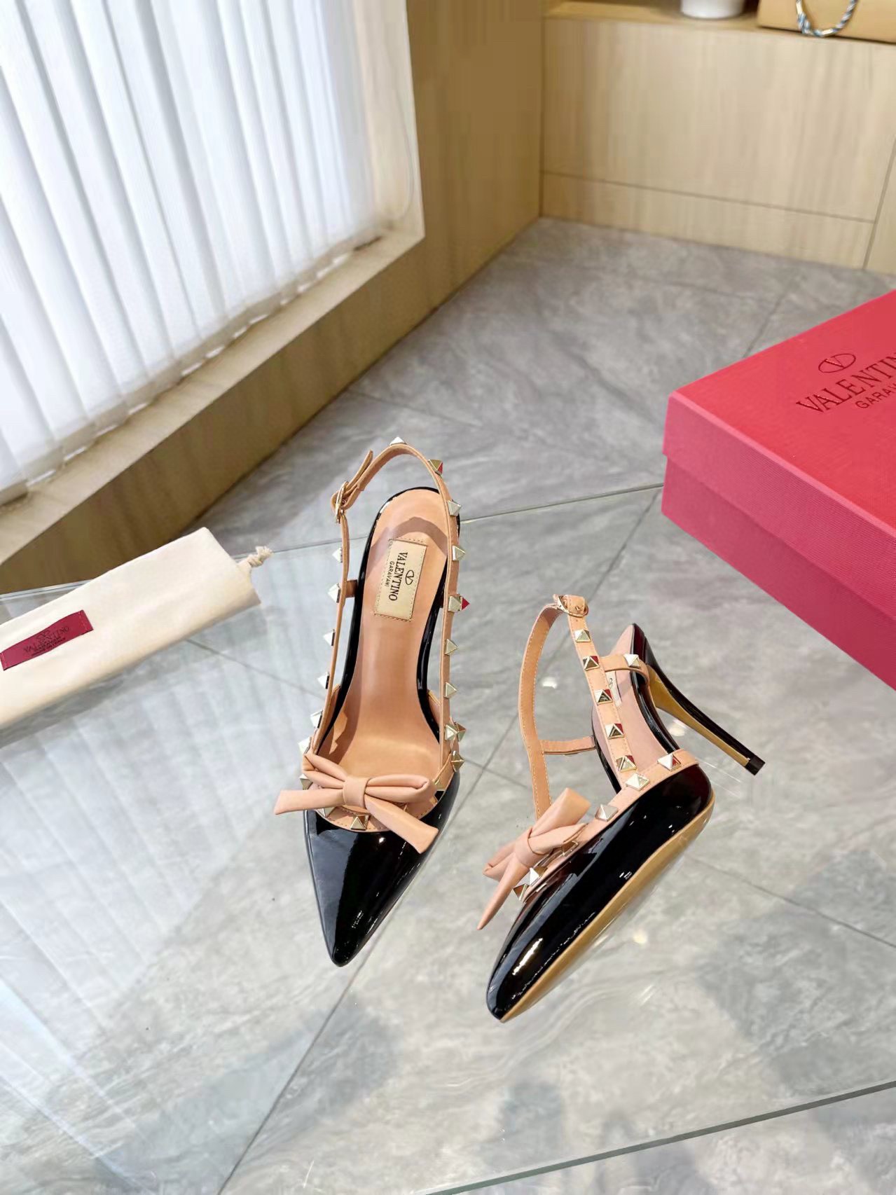 Valentino Rockstud Bow Slingback Pumps 100mm in Black Patent Leather