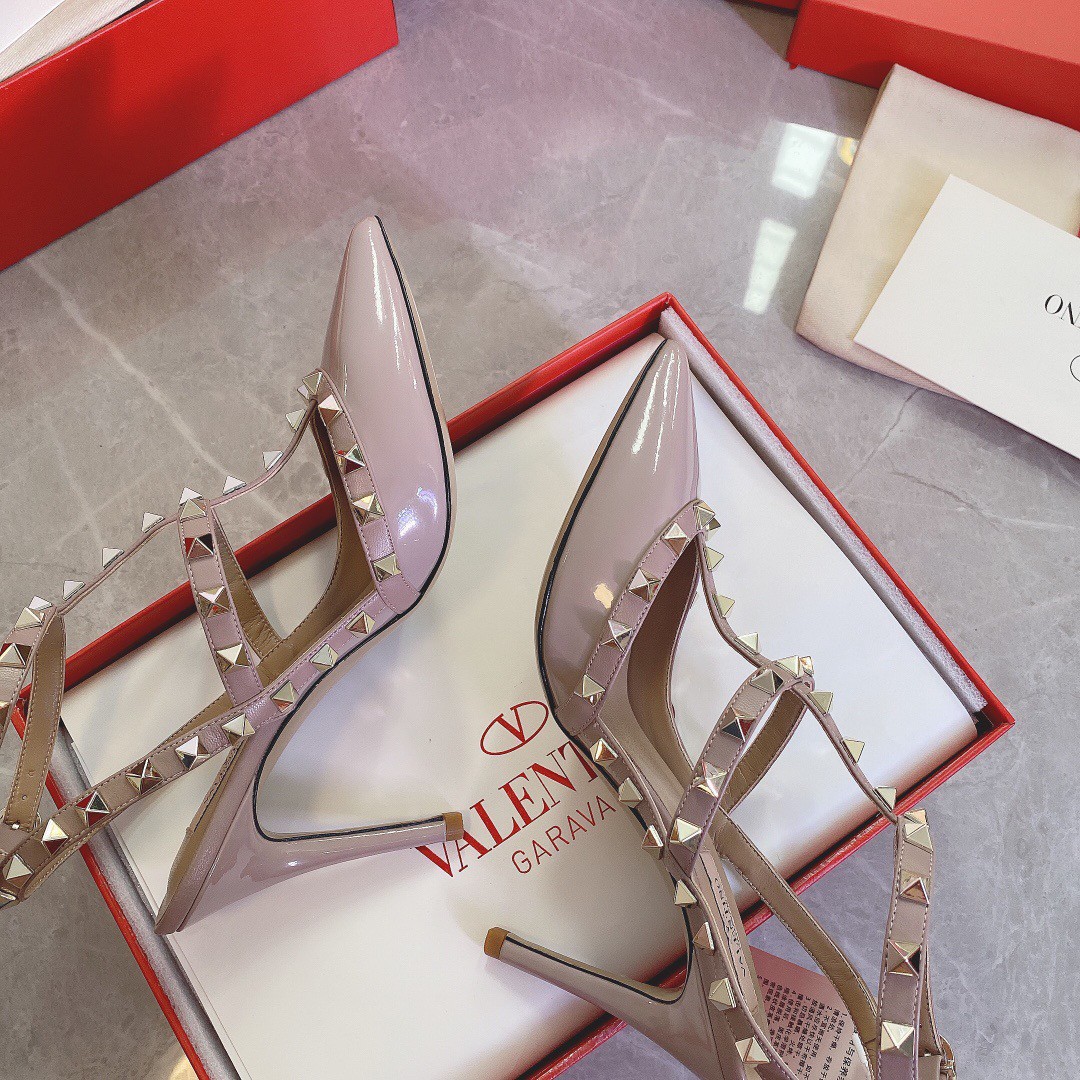 Valentino Garavani’s iconic Rockstud pumps have been crafted from glossy patent leather and embellished with signature studs. The gold adornments are hand-galvanized one by one for a lustrous finish that won’t tarnish. They’re set on high 100mm heels, but the cushioned insoles ensure they’re comfortable.