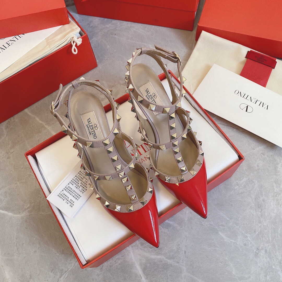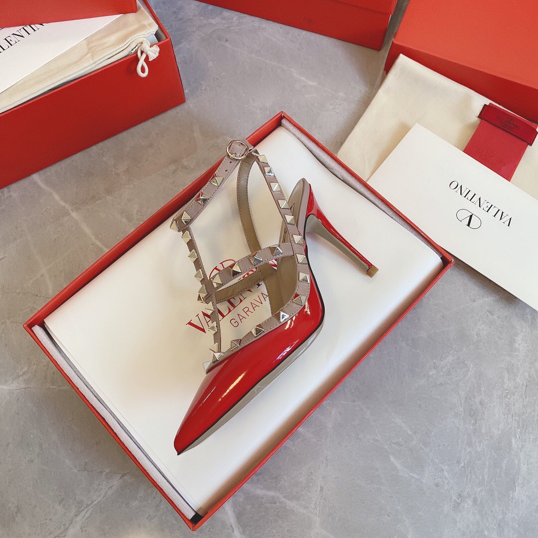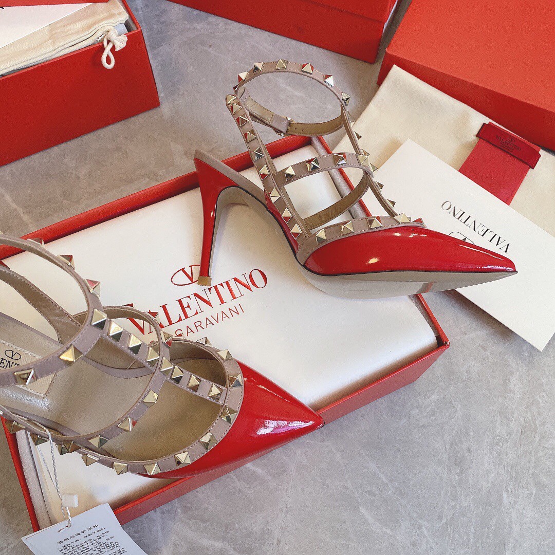Valentino Rockstud Caged Pumps 100mm In Red Patent Leather