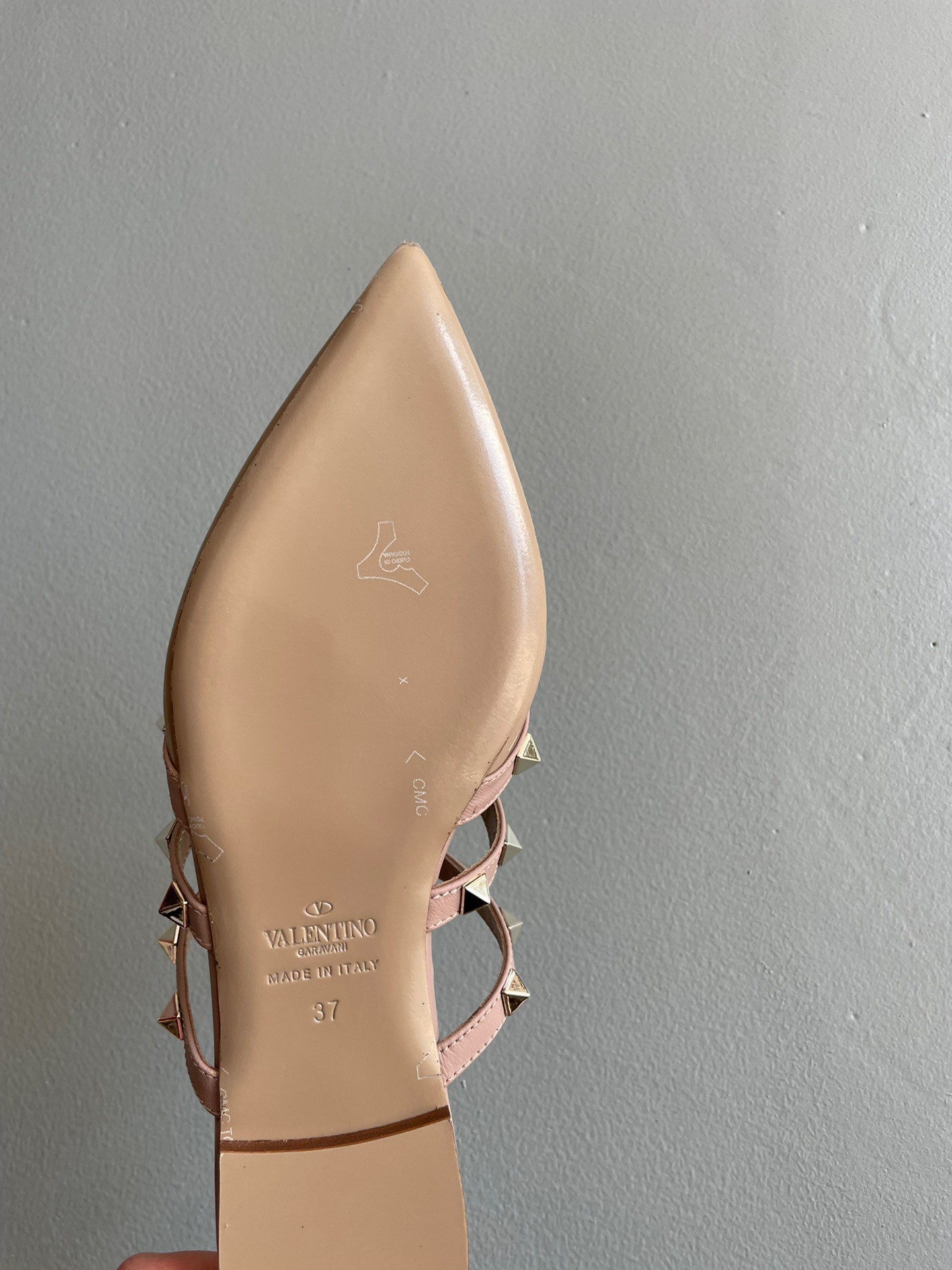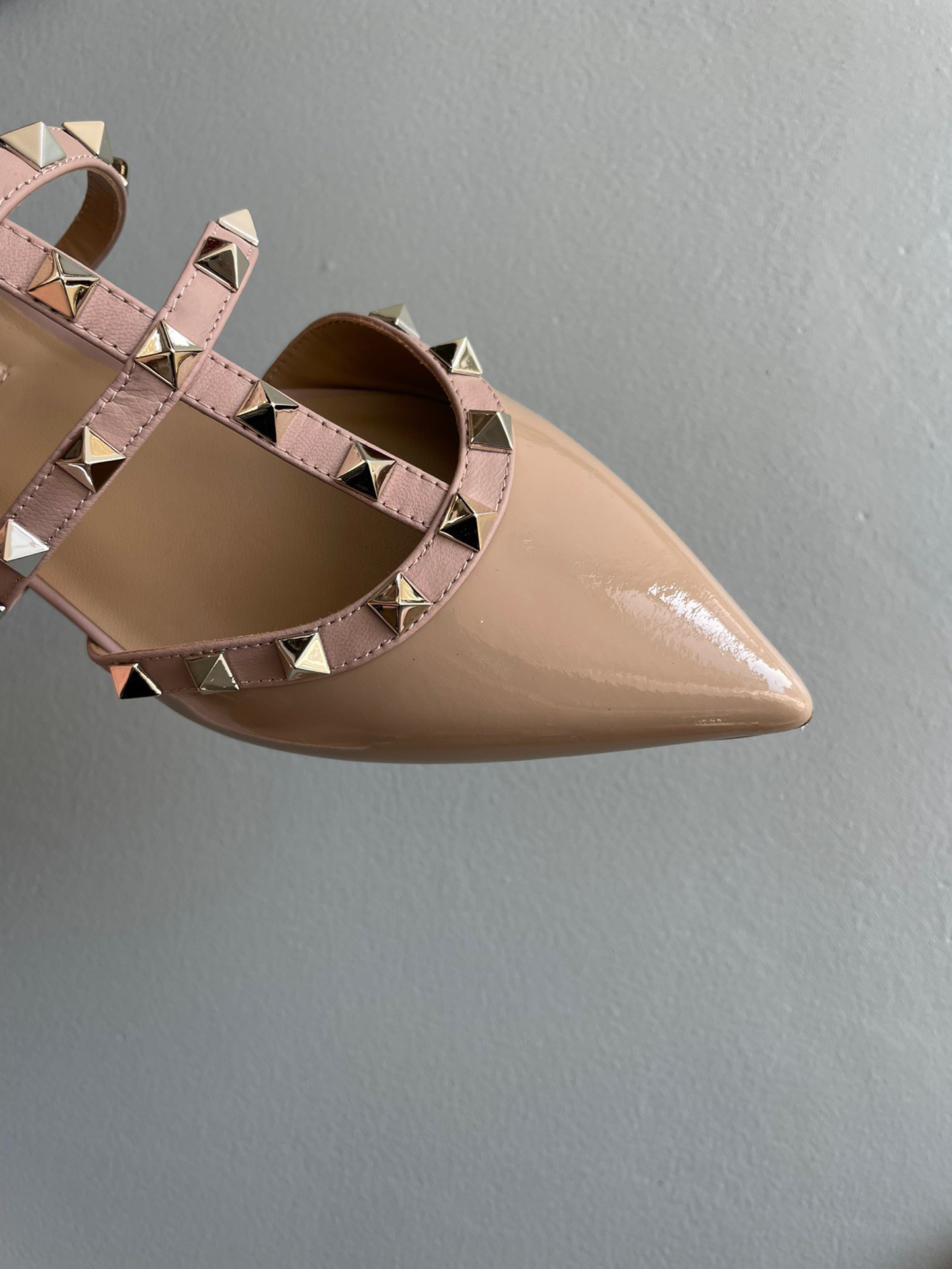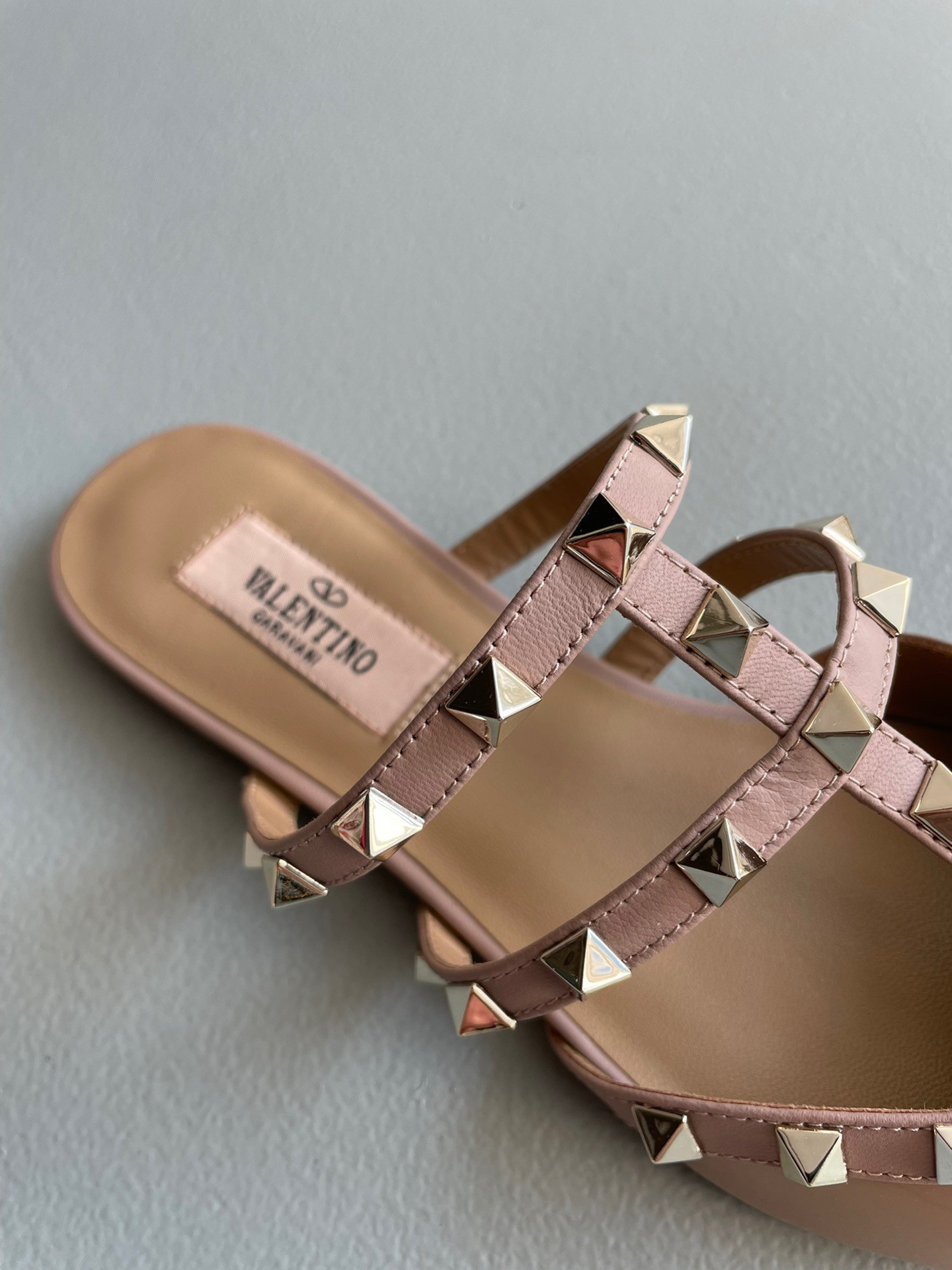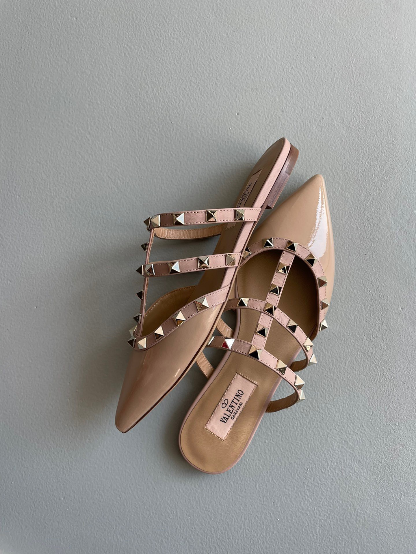 Valentino Rockstud Flat Mules In Poudre Patent Leather