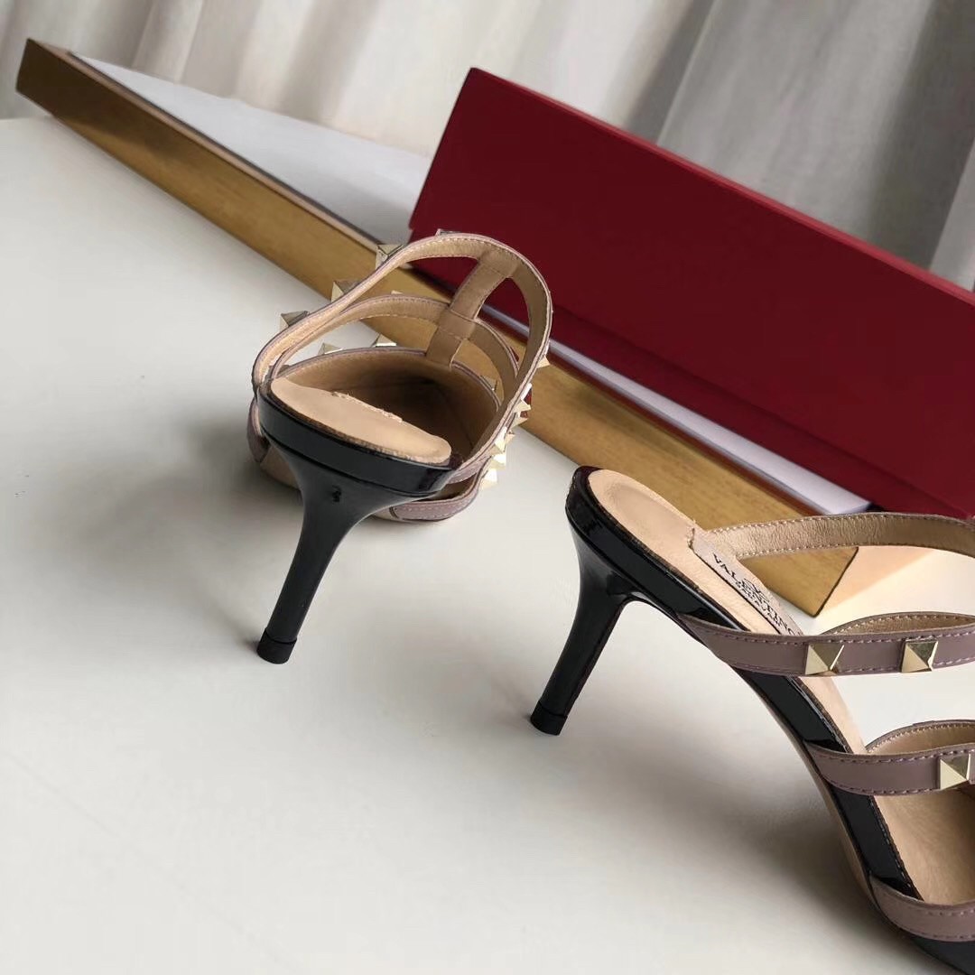 Let Valentino Garavani’s Rockstud mules add a tough-luxe look to your shoe rotation. The glossy patent leather design was made in Italy and molded to a point-toe silhouette set on sleek kitten heels. Taupe-hued contrast straps lend a caged effect and show off the label’s signature golden pyramid studs.