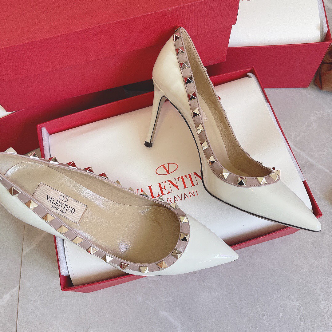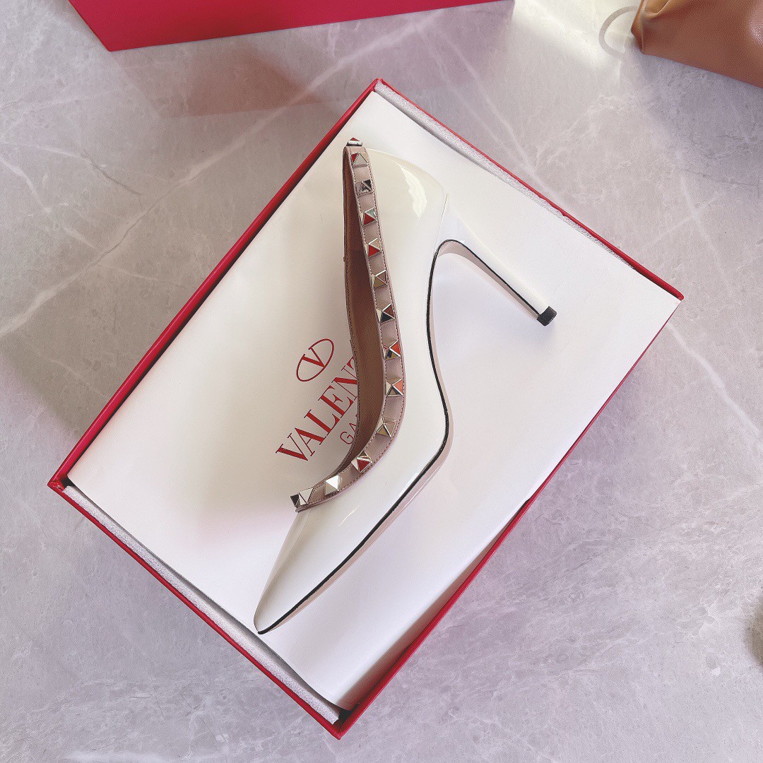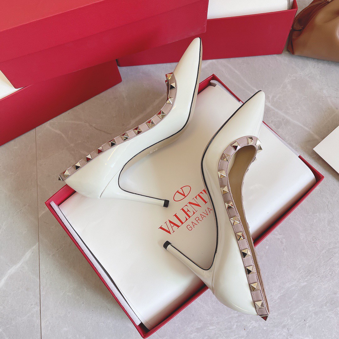 Valentino Rockstud Pumps 100mm In White Patent Leather