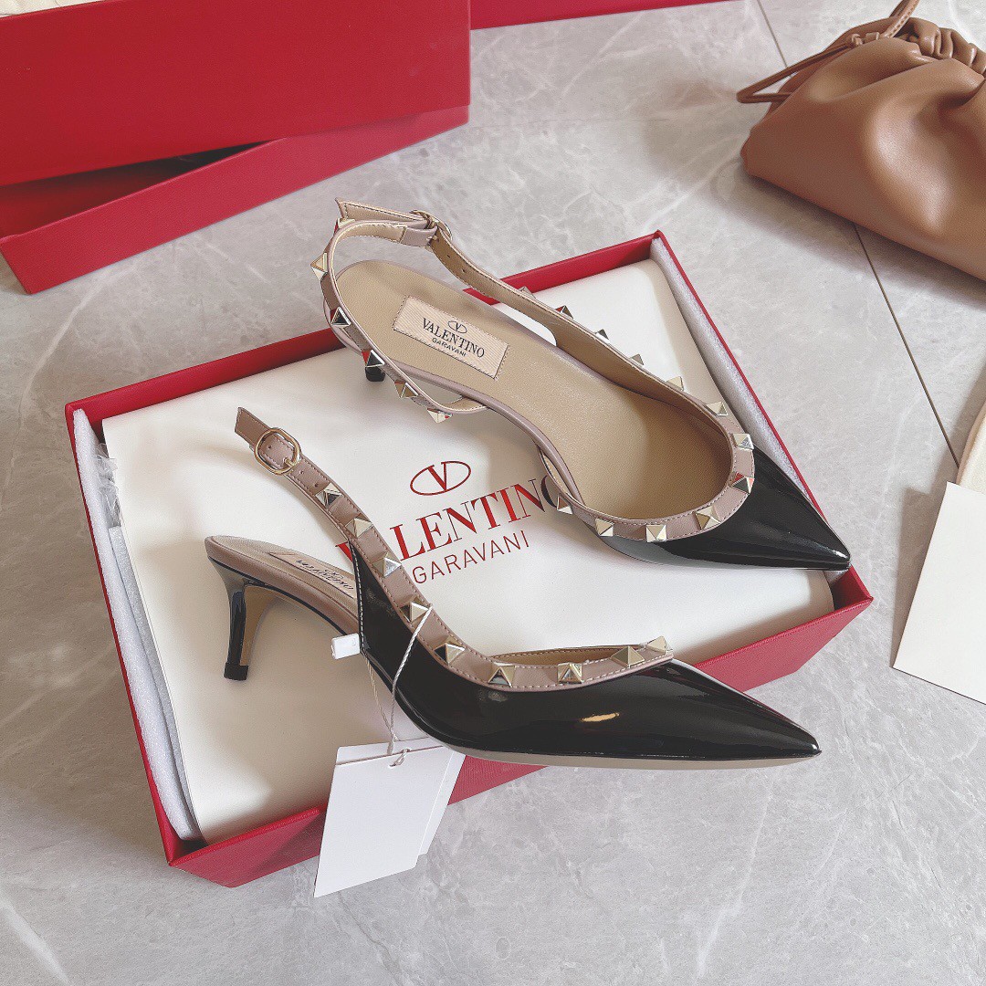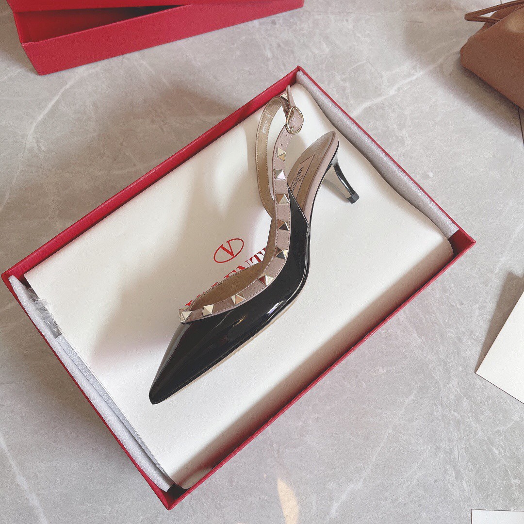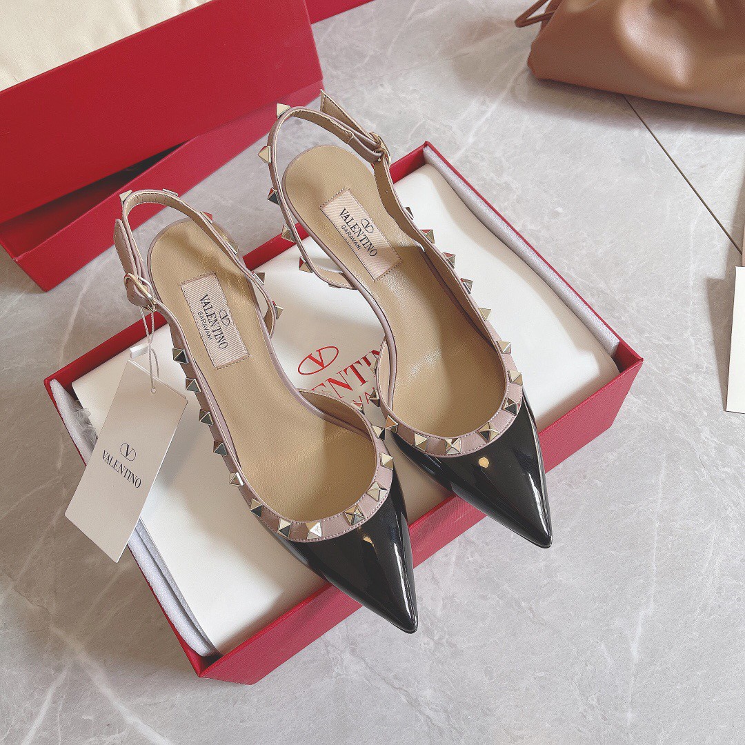 The ‘Rockstud’ pumps have been part of every Valentino Garavani collection since their debut over 18 years ago. This slingback pair has been made from glossy patent leather and sits on an elegant kitten heel. Each one of the iconic pyramid studs is applied by hand and galvanized so the shine won’t fade.