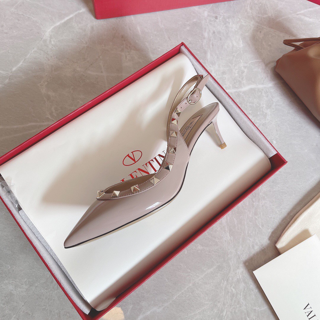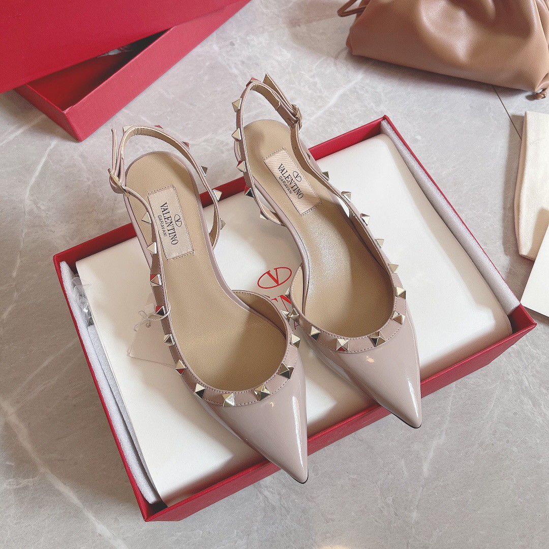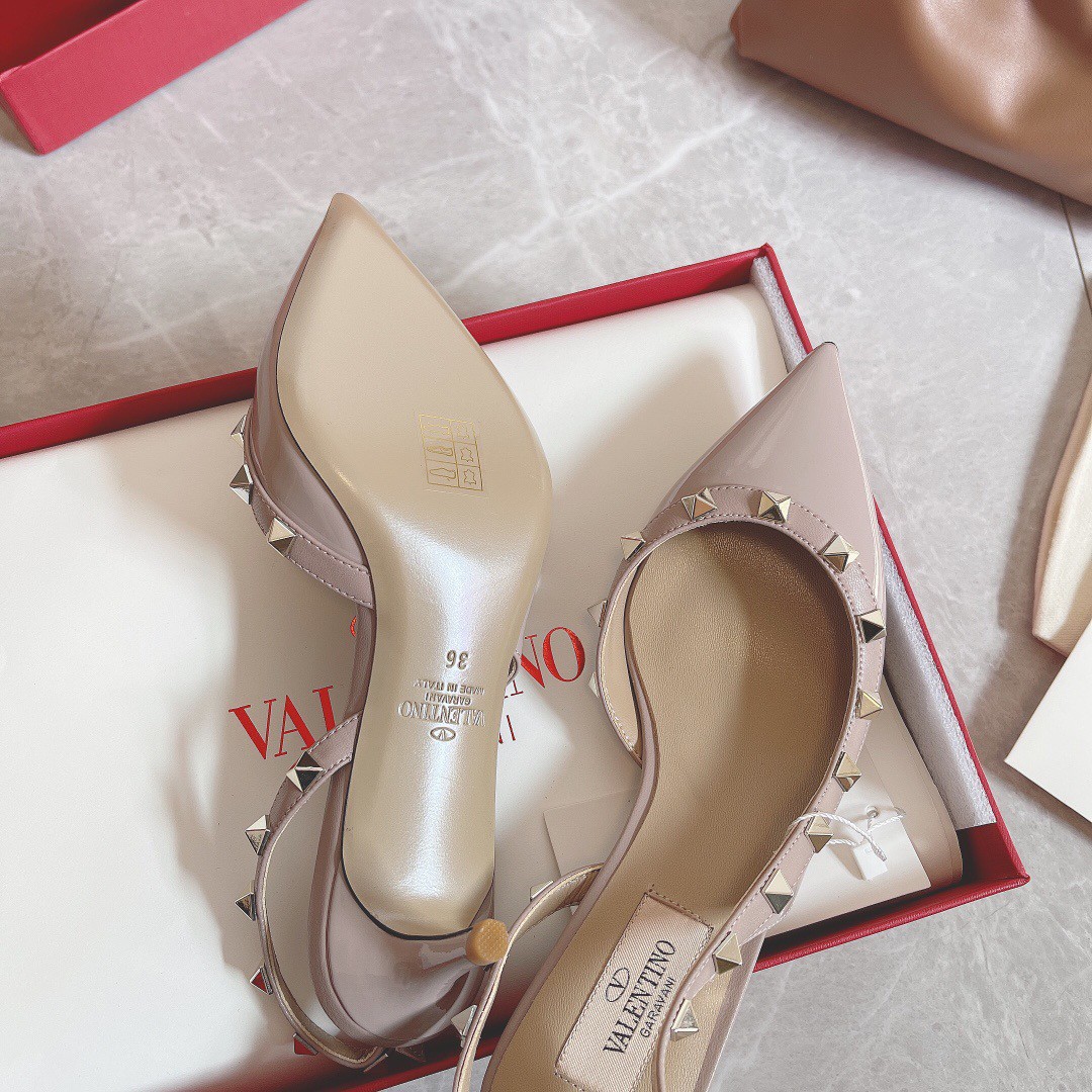 Valentino Rockstud Slingback Pumps 50mm In Poudre Patent Leather