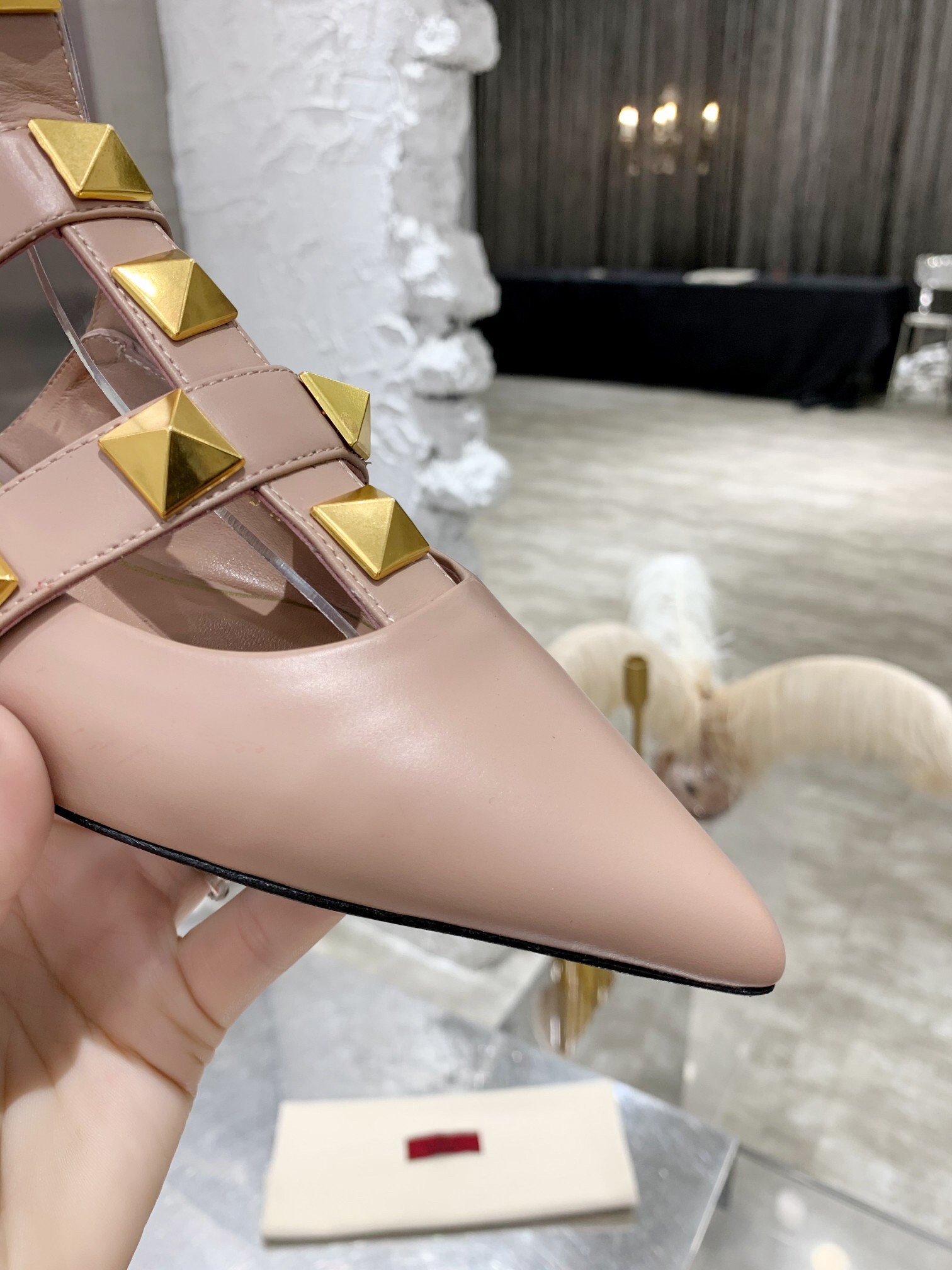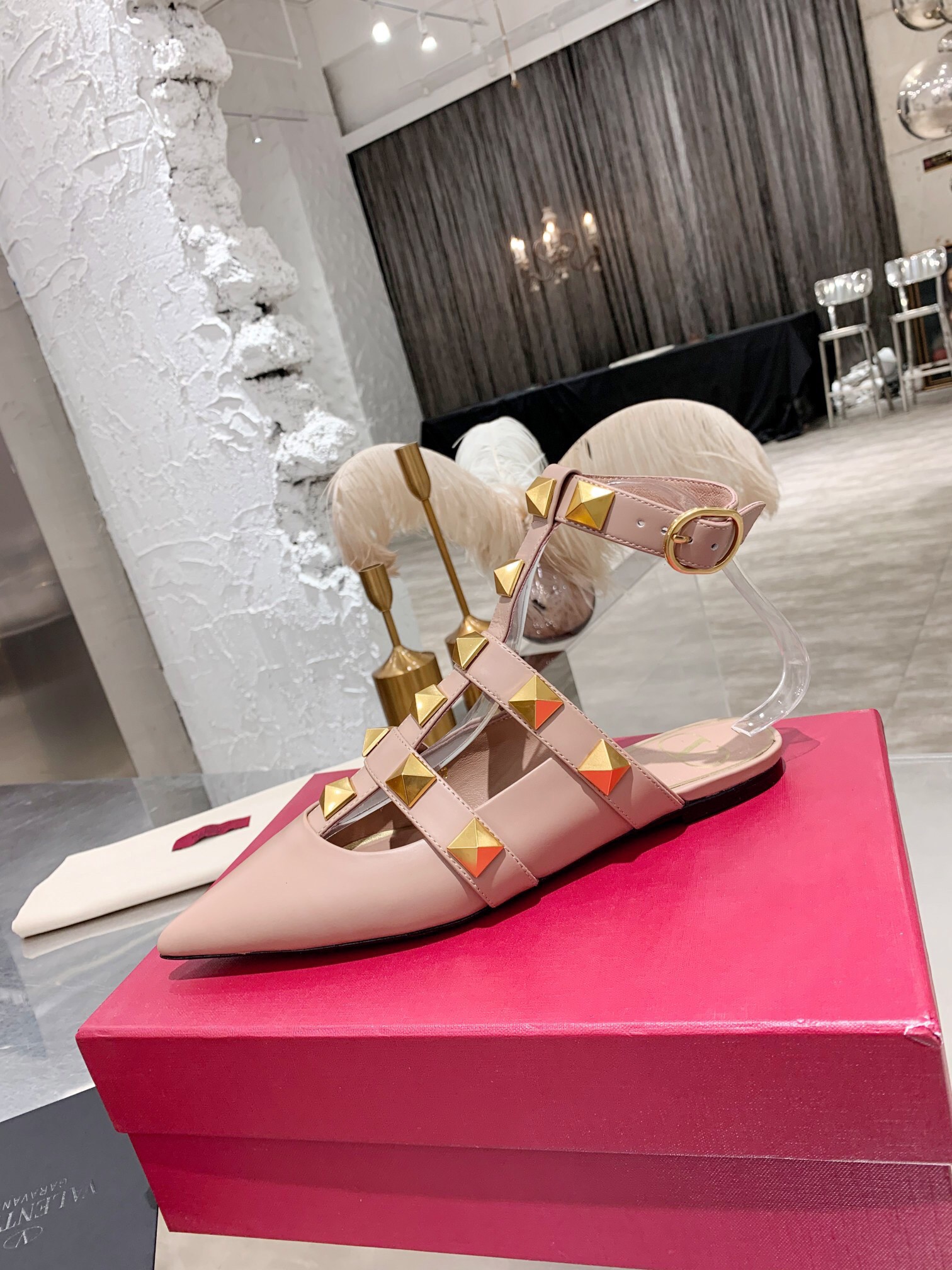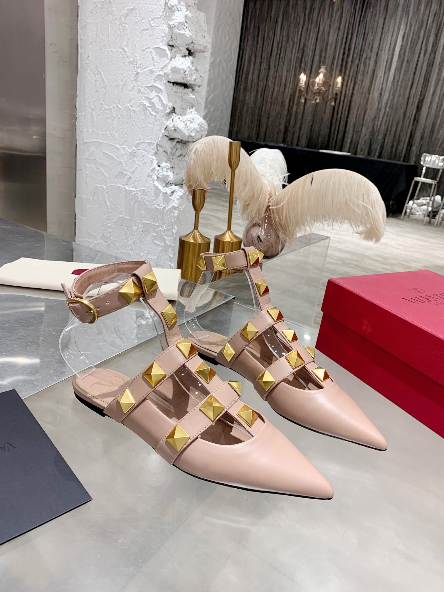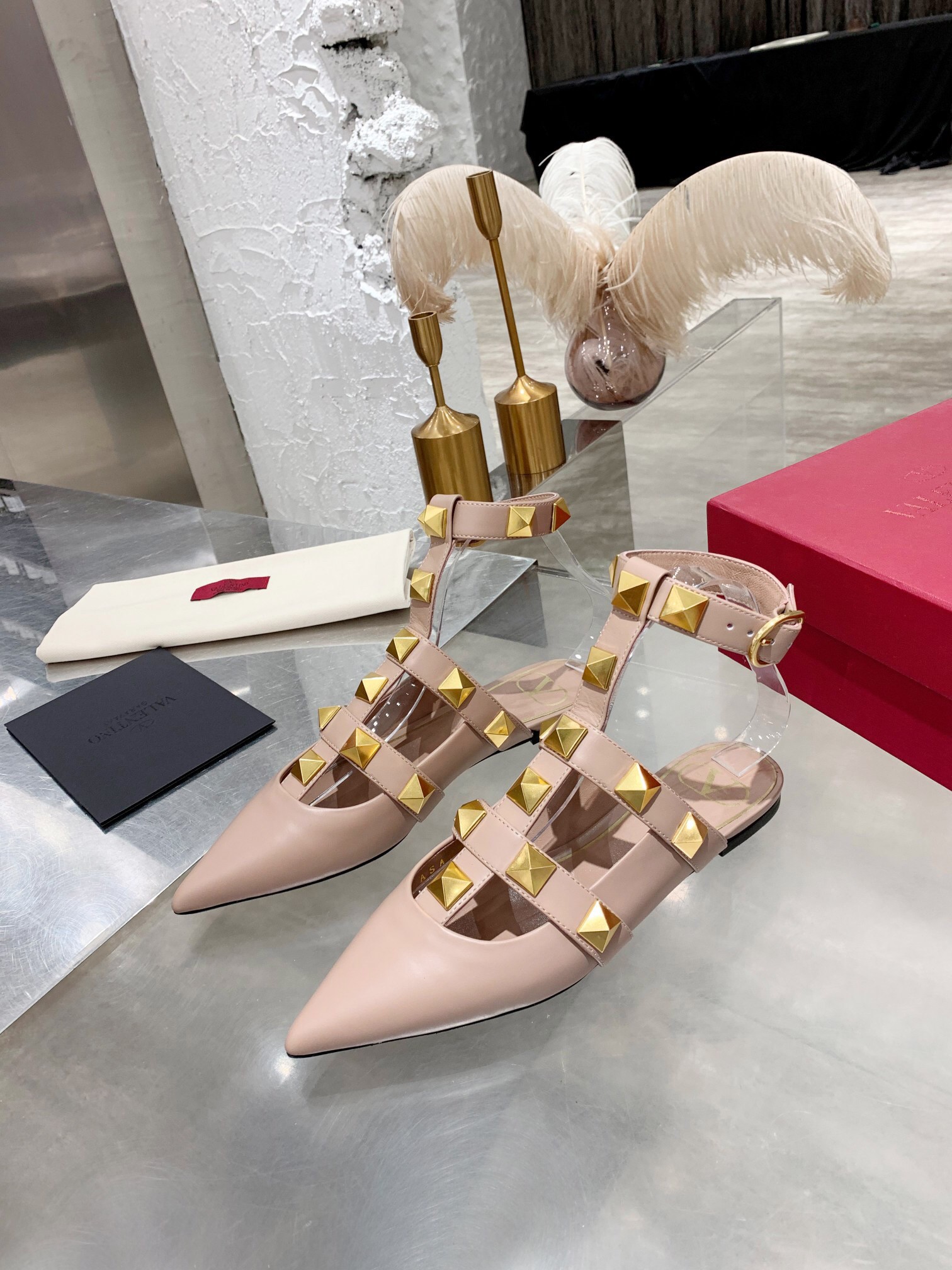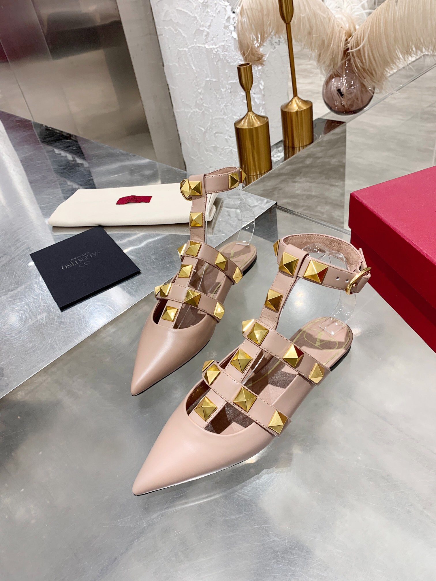 Valentino Roman Stud Ballet Flats In Powder Calfskin