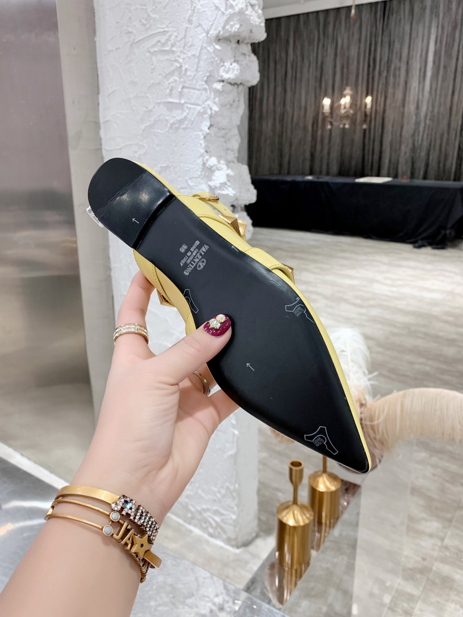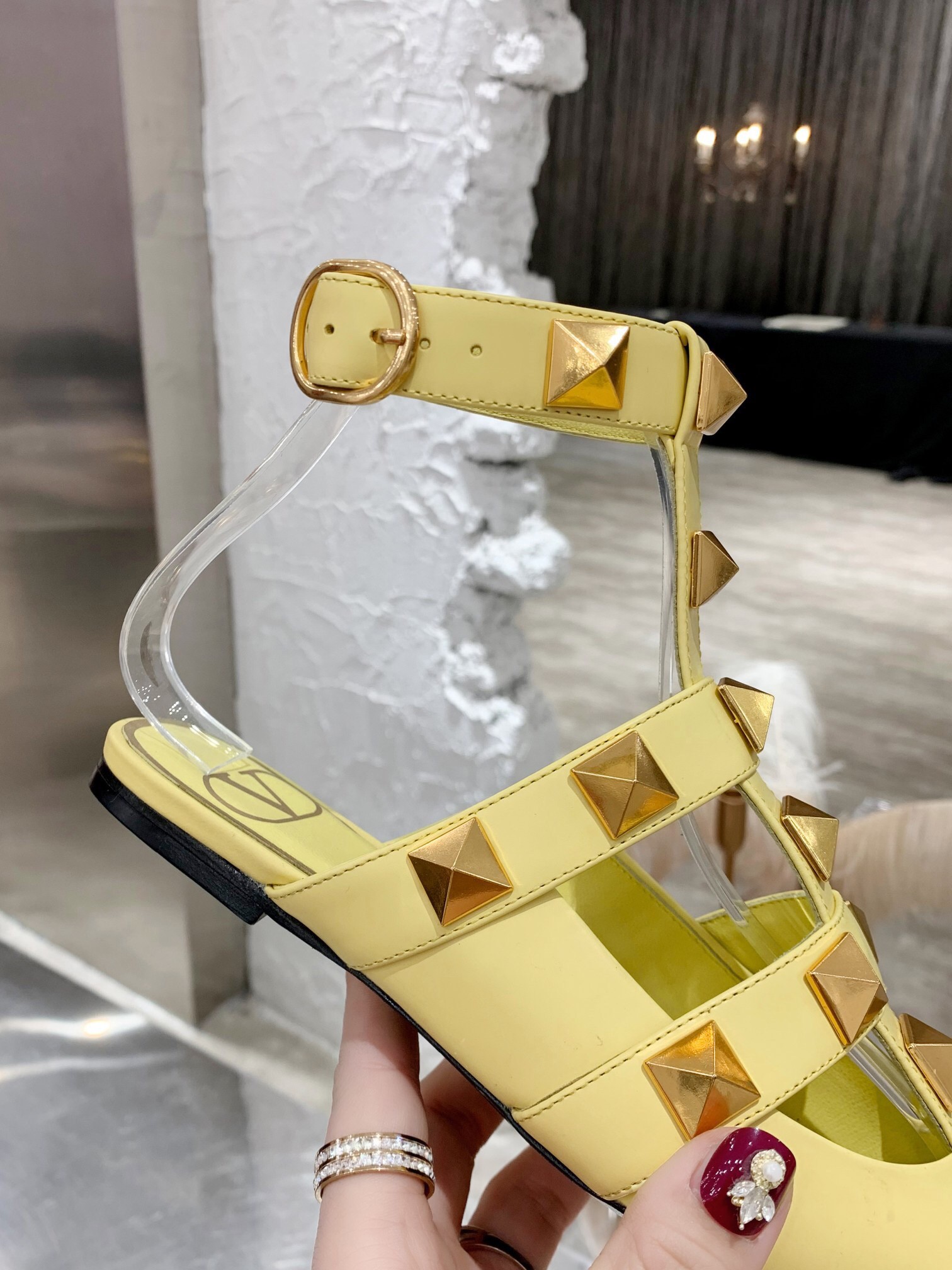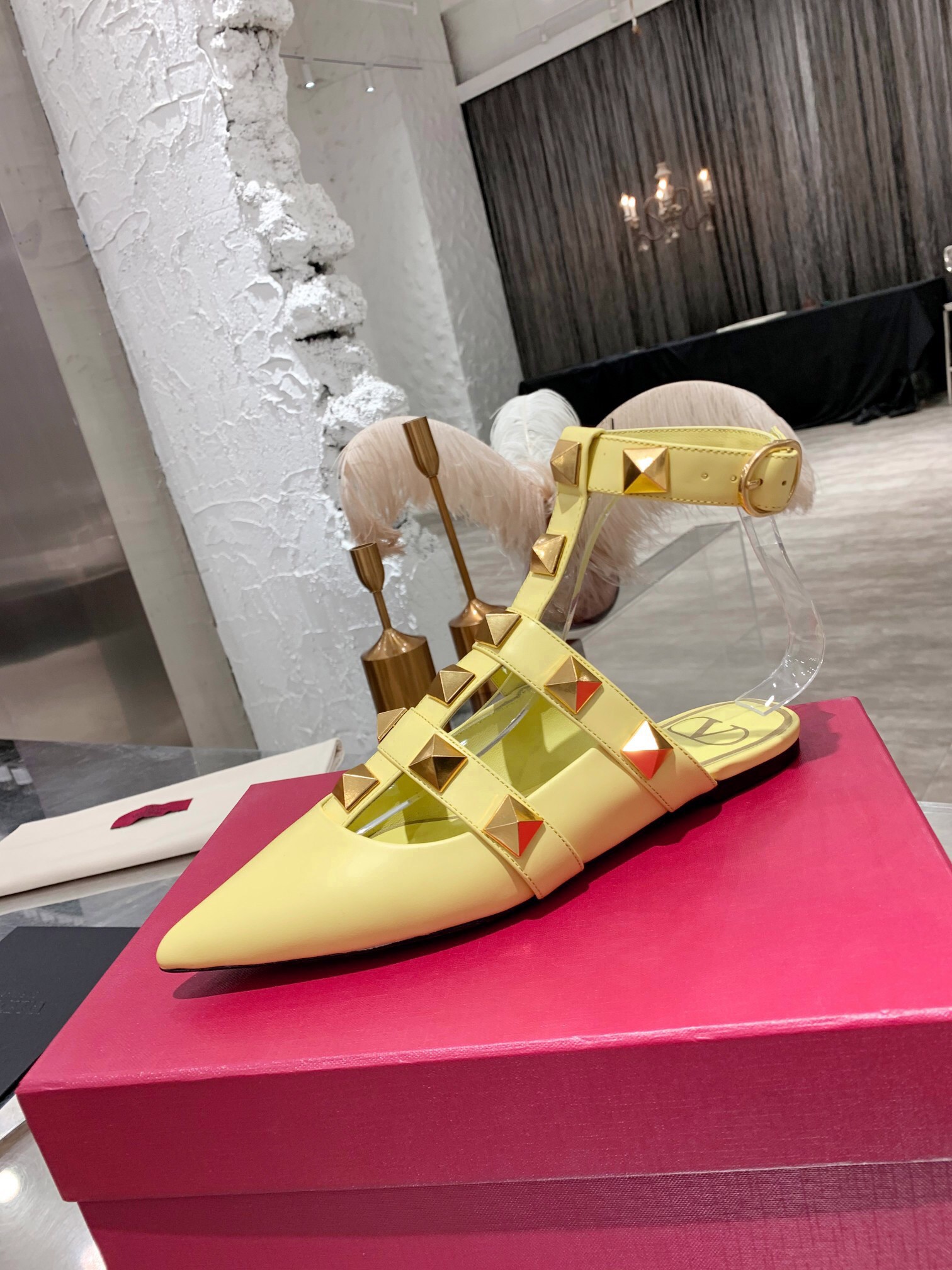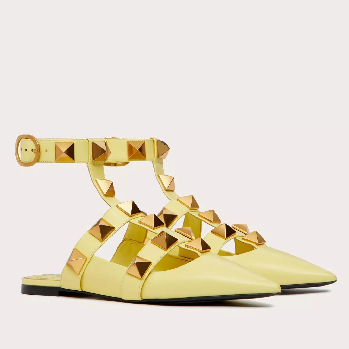 Valentino Roman Stud Ballet Flats In Yellow Calfskin