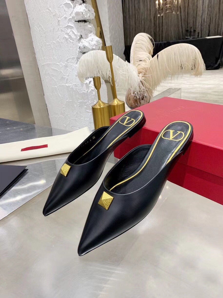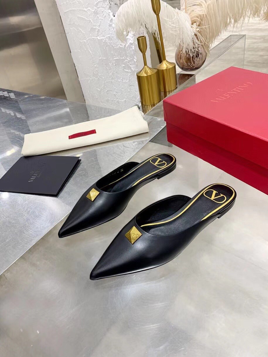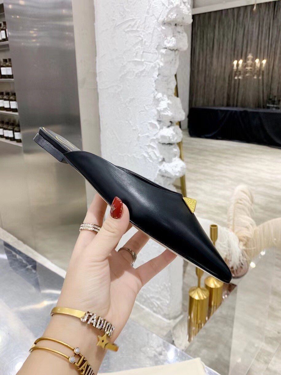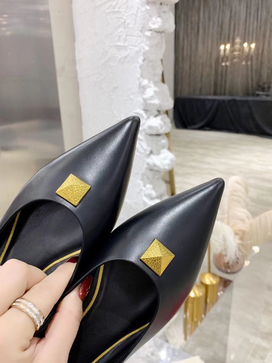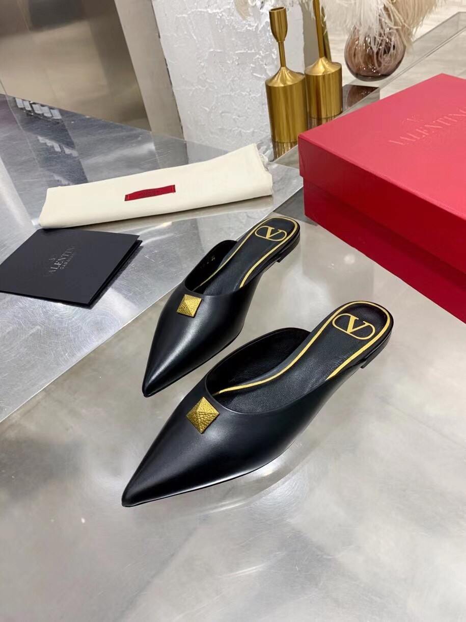 These flat mules from Valentino Garavani are punctuated by a single Roman Stud – a new iteration of the house’s iconic hardware. Made from smooth calf leather, these mule-inspired flats have pointed toes, padded insoles, and slender heels.