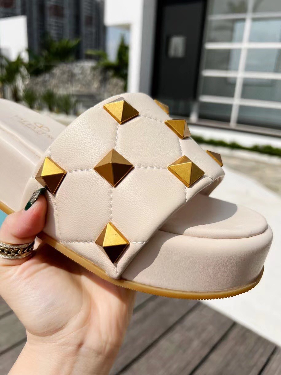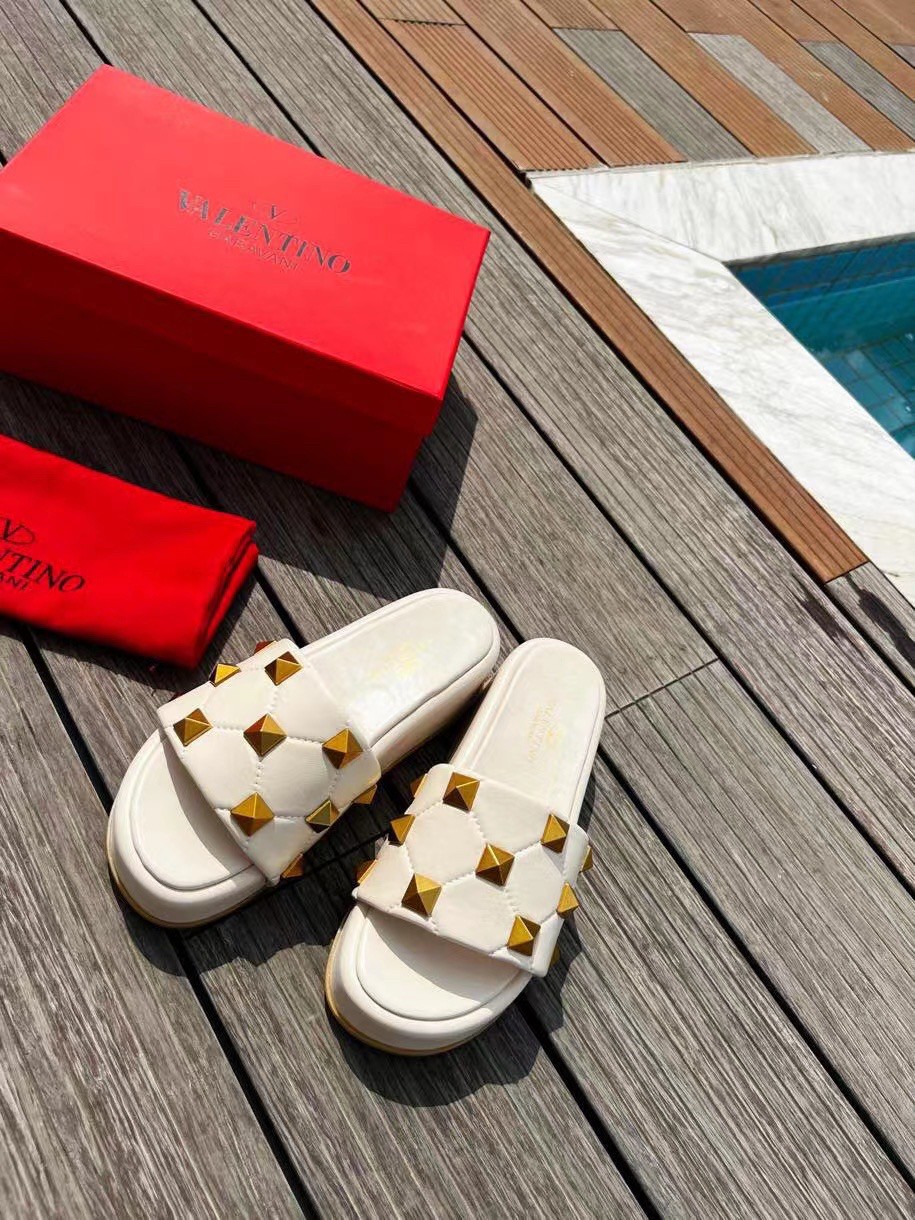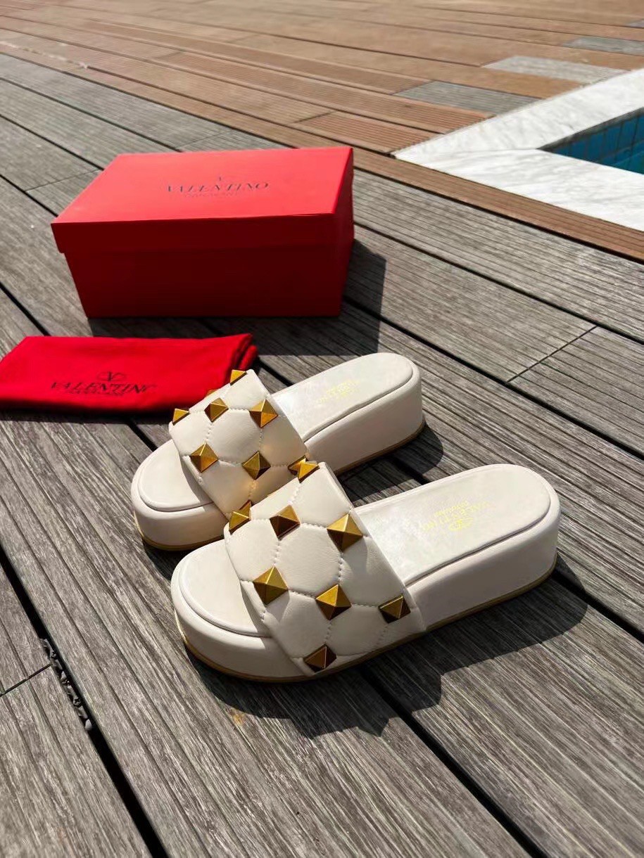 Valentino Roman Stud Flatform Slides In White Nappa Leather