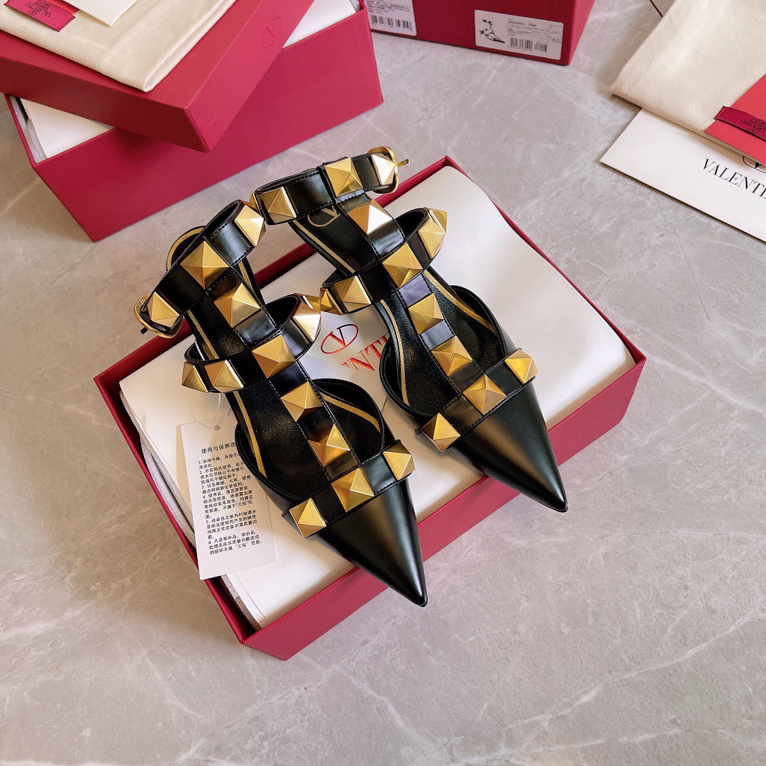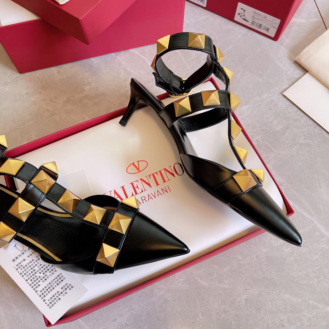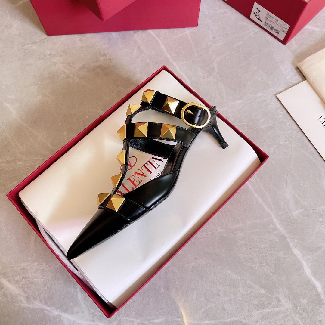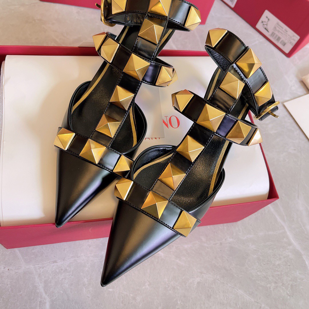 Valentino Roman Stud Pumps 40mm In Black Calfskin