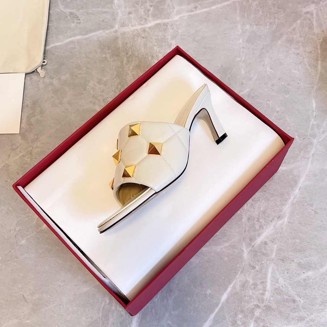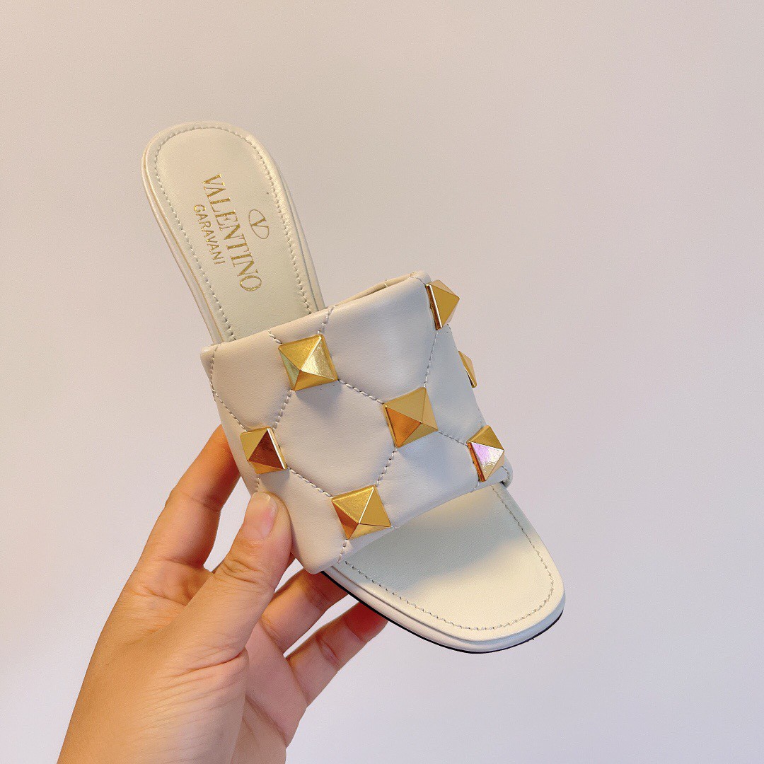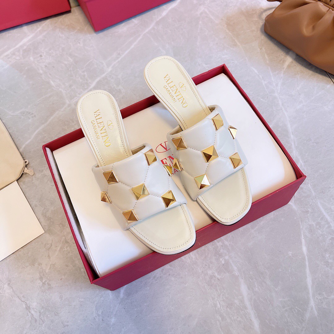 Valentino Roman Stud Slide Sandals 65mm In White Leather
