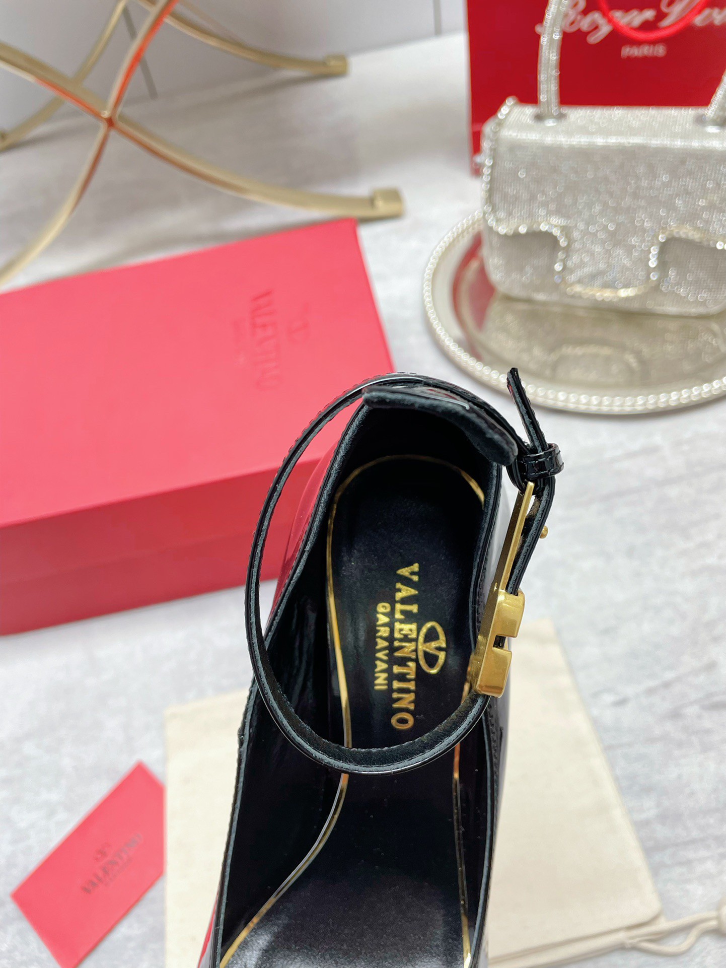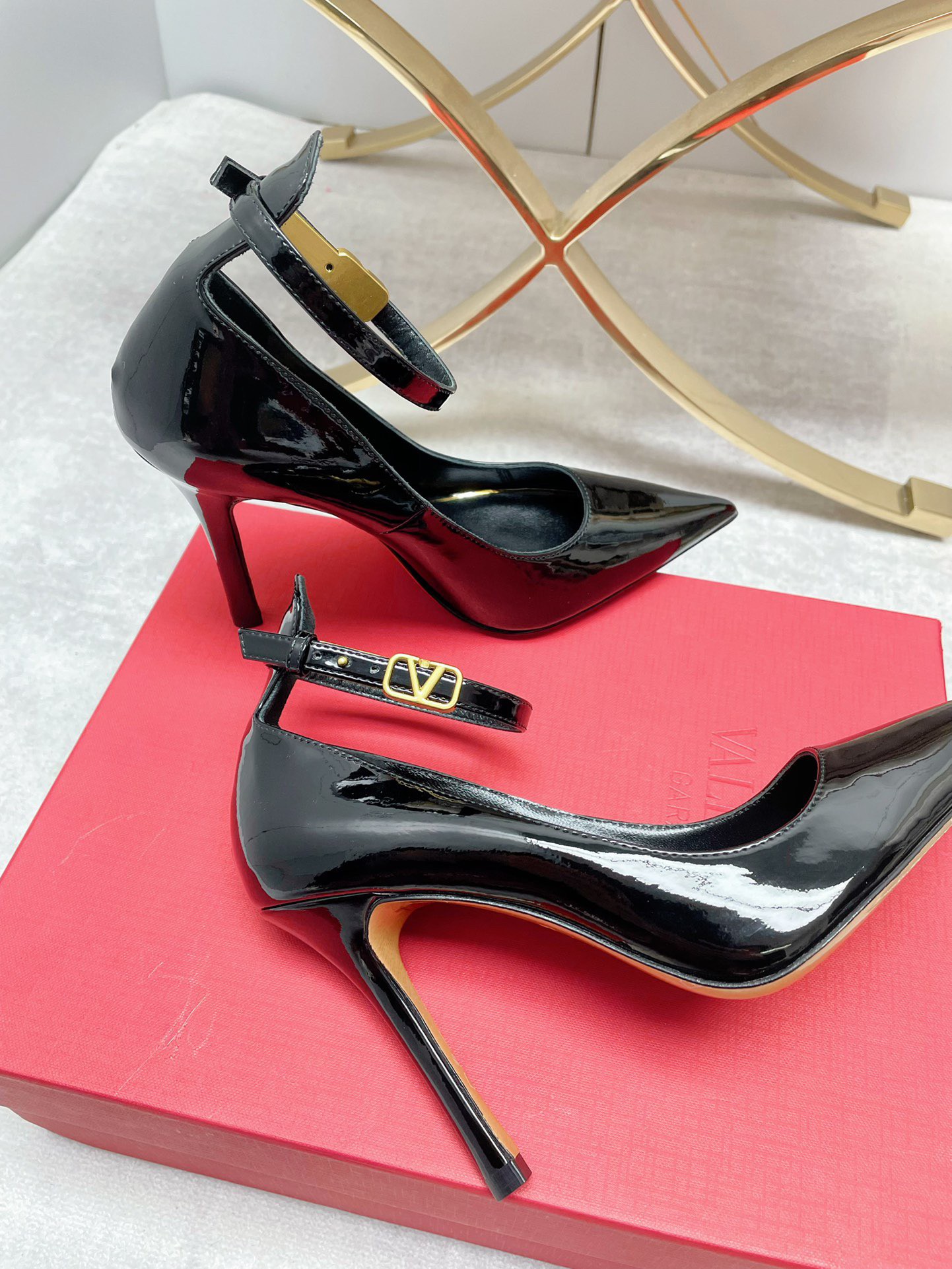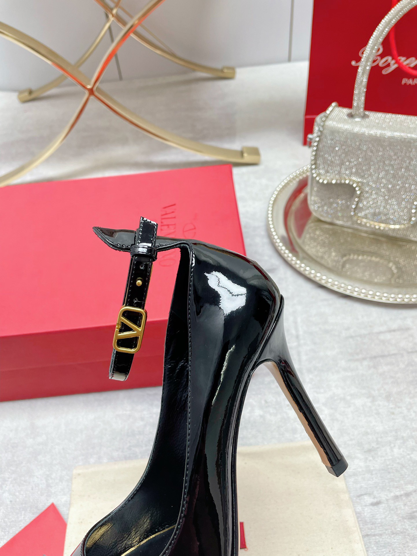 Valentino Tan-Go Pumps 100mm In Black Patent Leather
