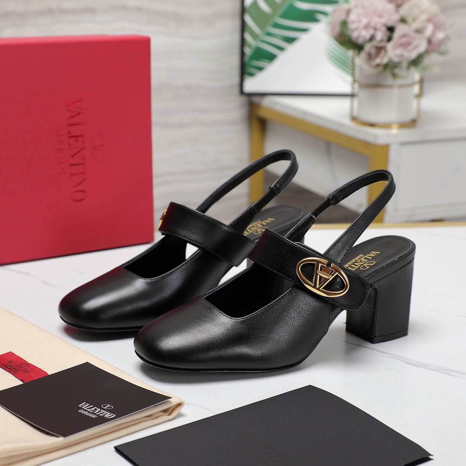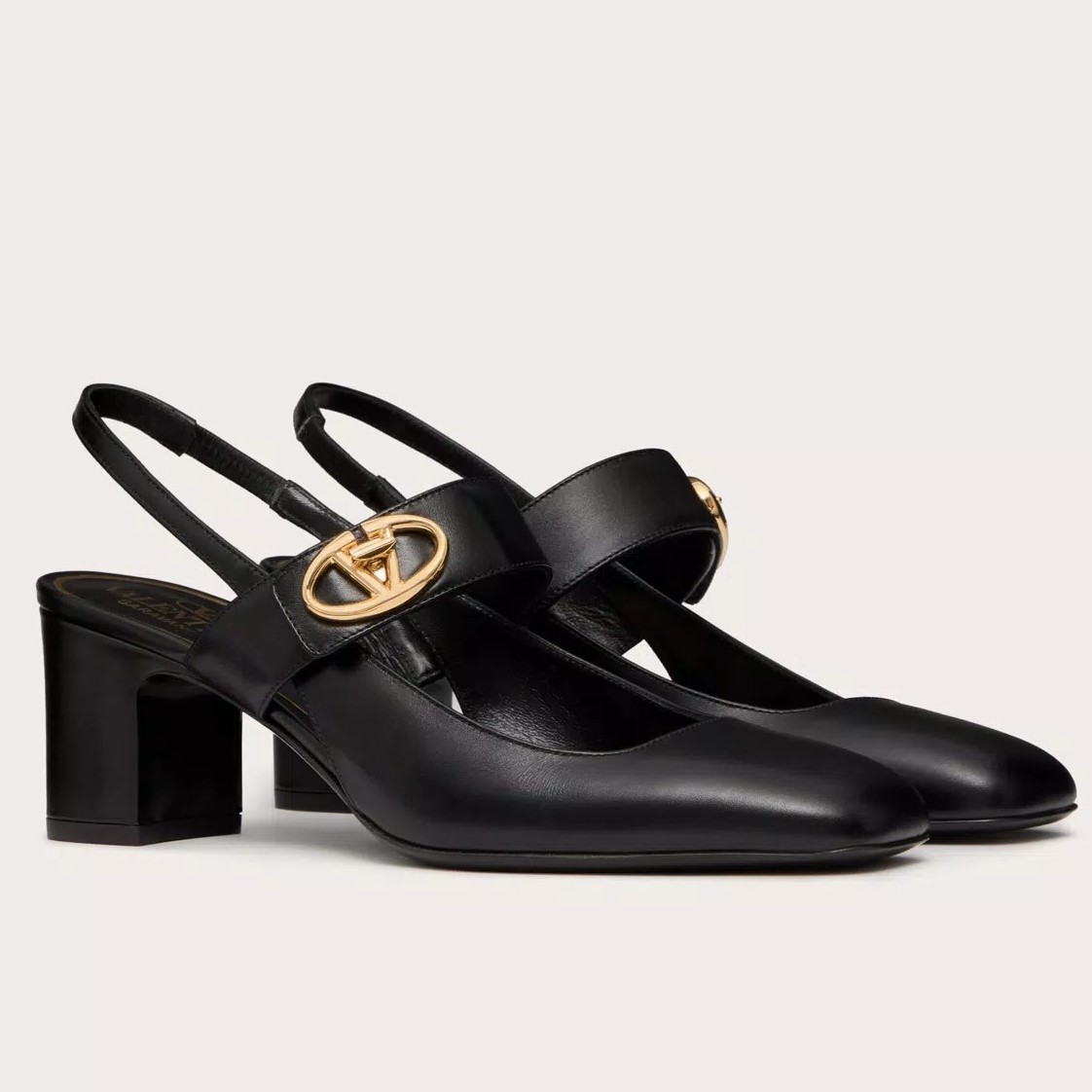 Valentino VLogo Locker Mary-Jane Slingback Pumps 60mm in Black Calfskin