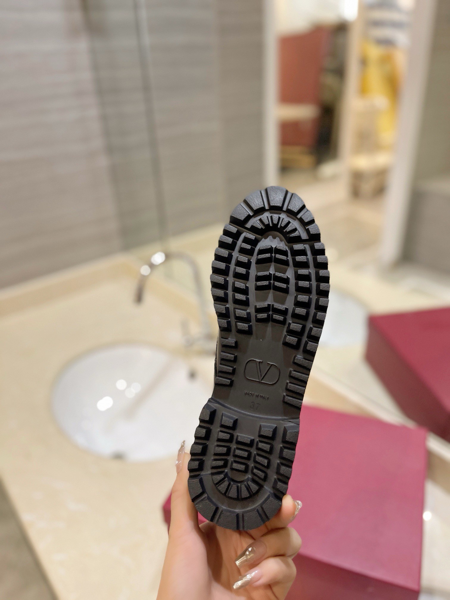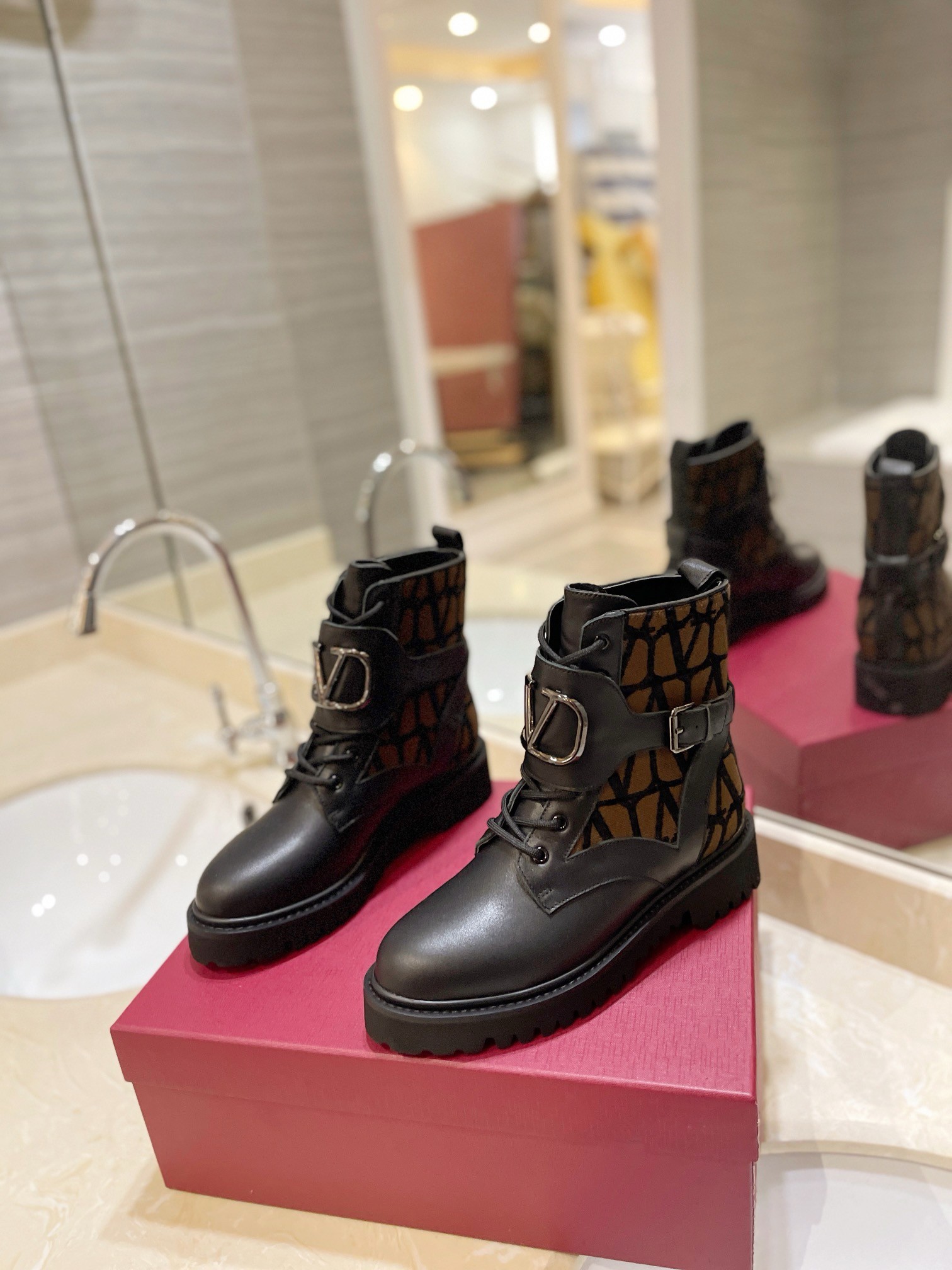 At once iconic and understated, Valentino Garavani’s VLogo carries the Maison’s legacy of elegance. The motif appears in tone-on-tone hardware on the smooth leather panels of these Toile Iconographe jacquard combat boots, resting on lugged soles.