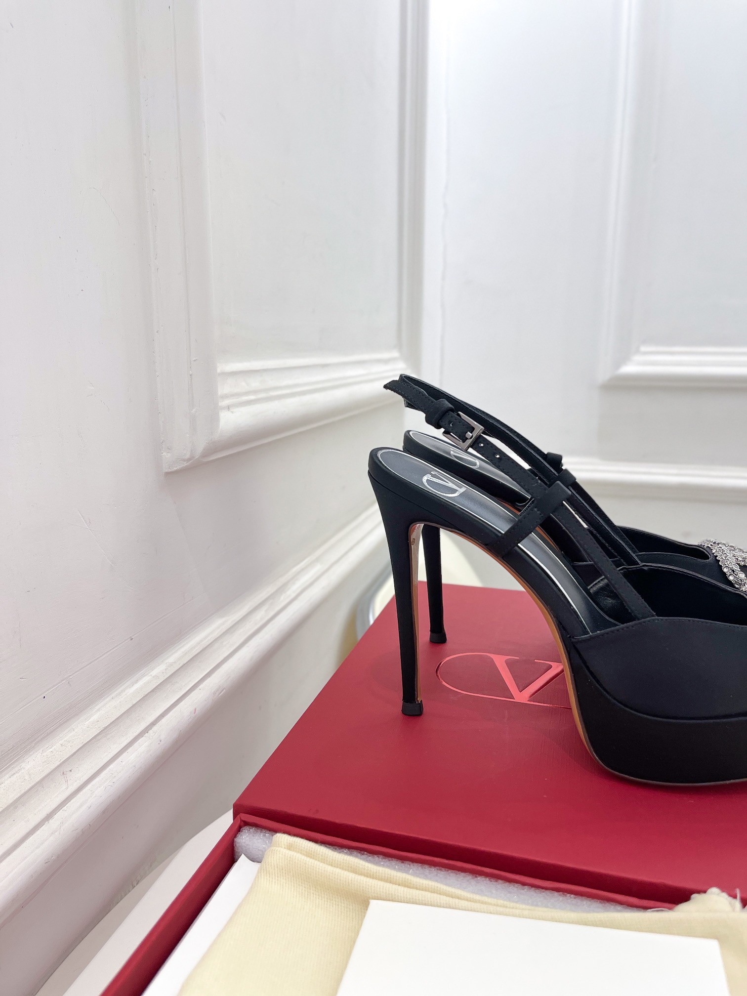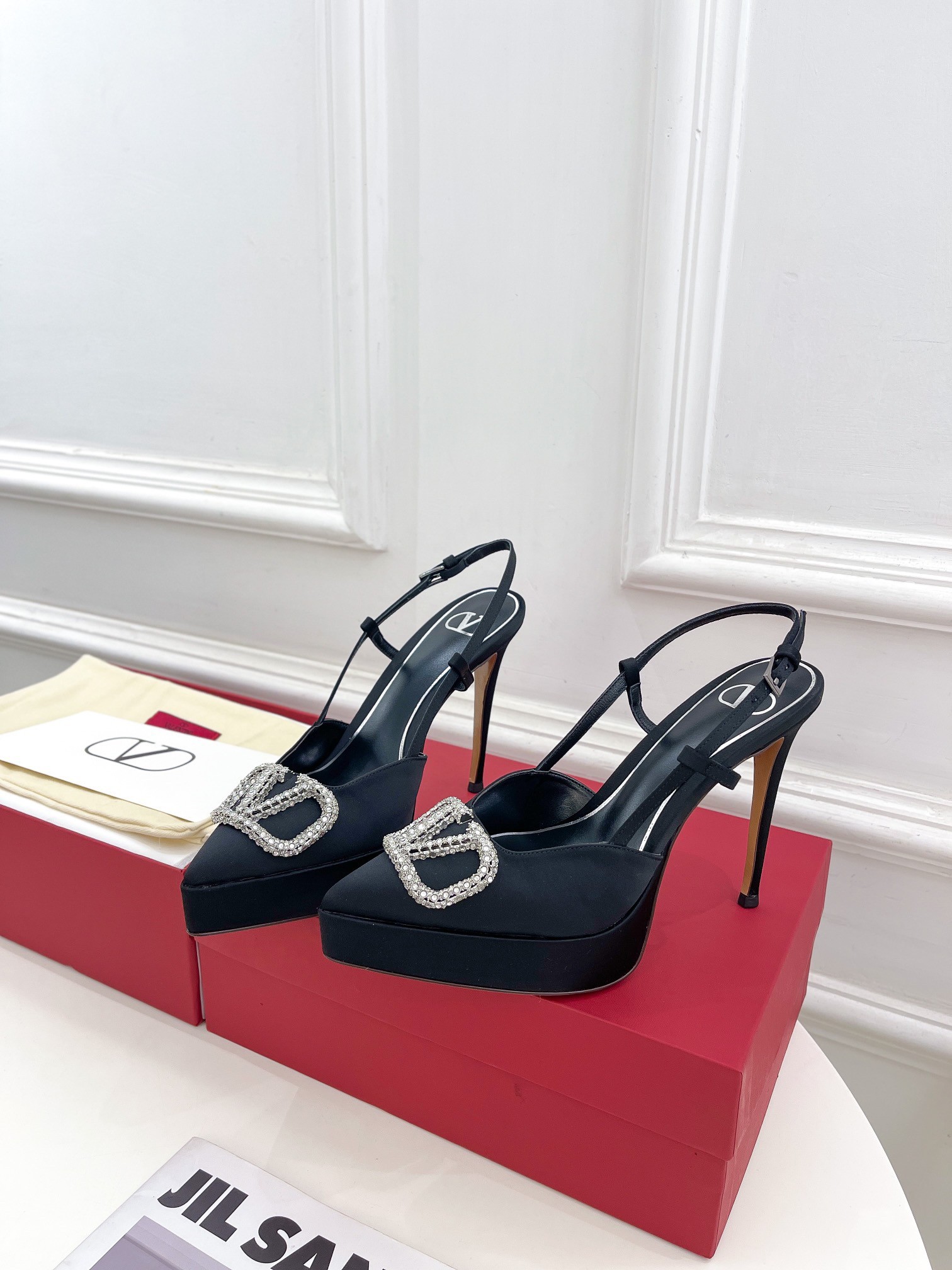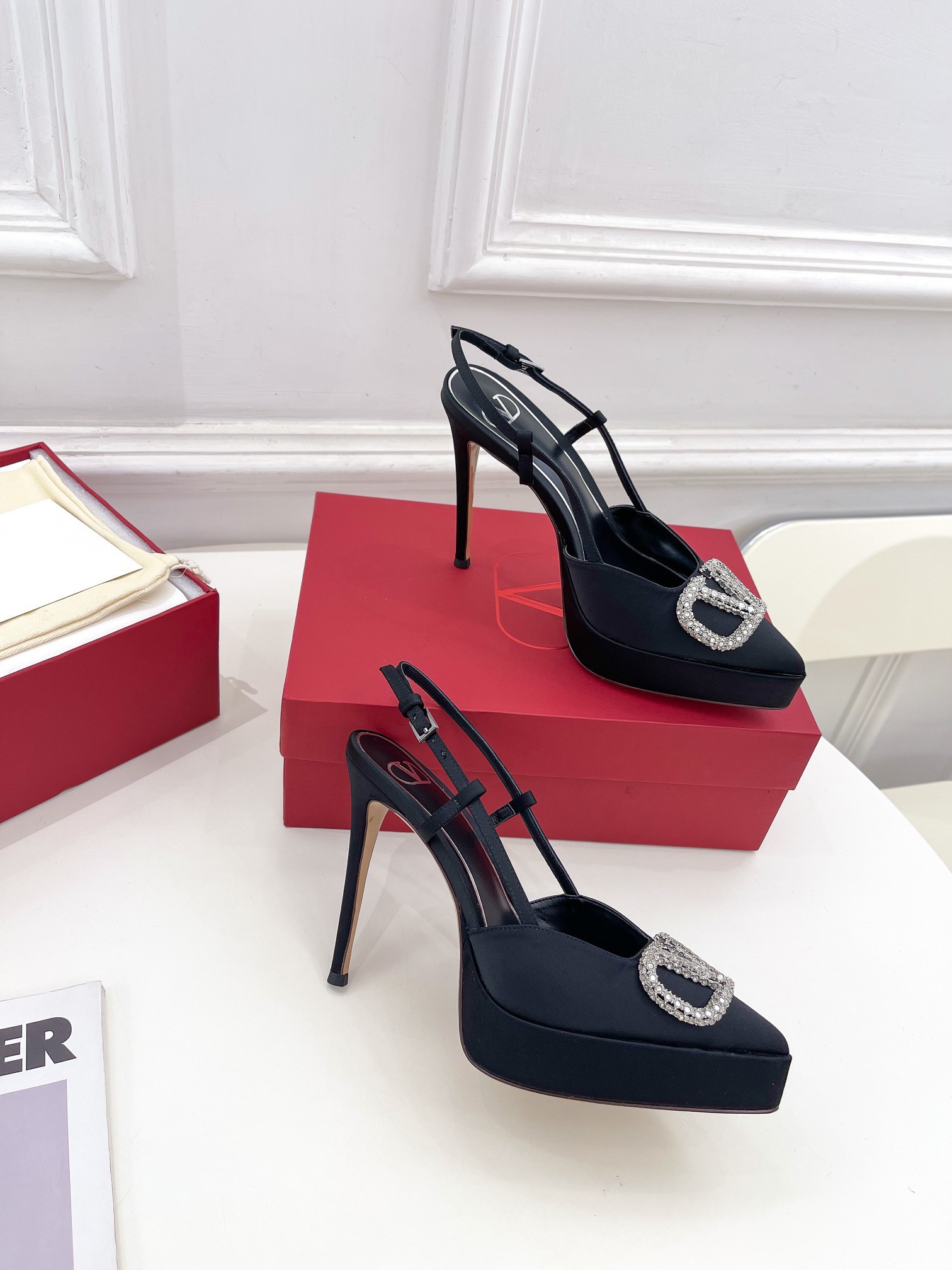 Valentino VLogo Signature Slingback Platform Pumps 120mm In Black Satin