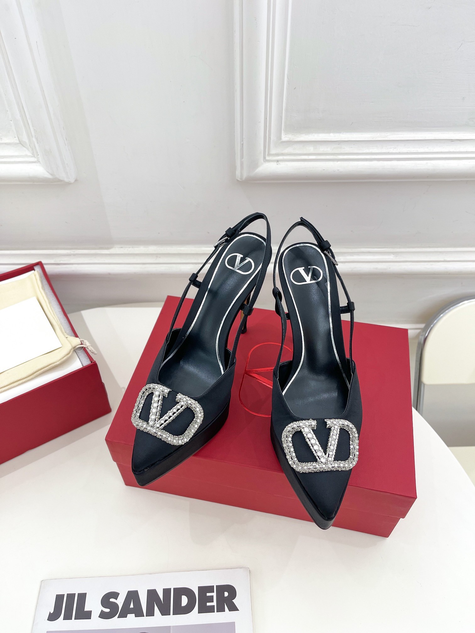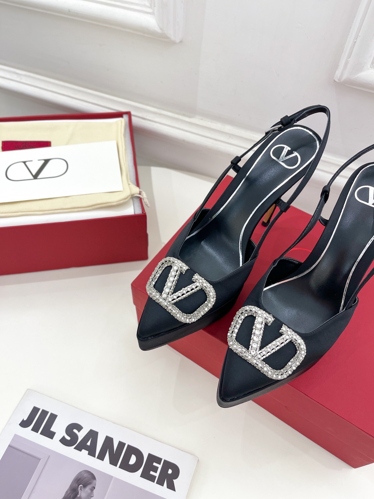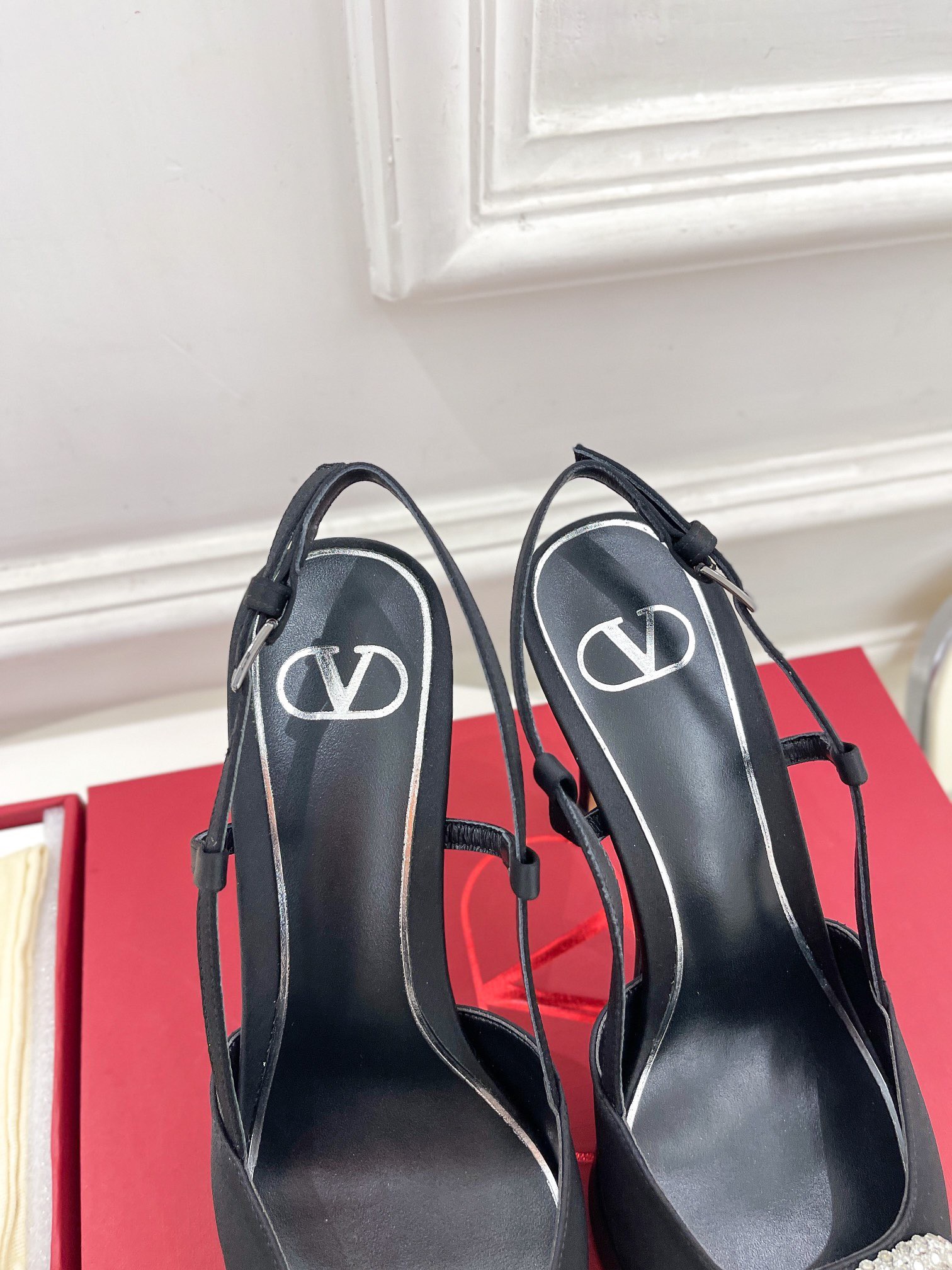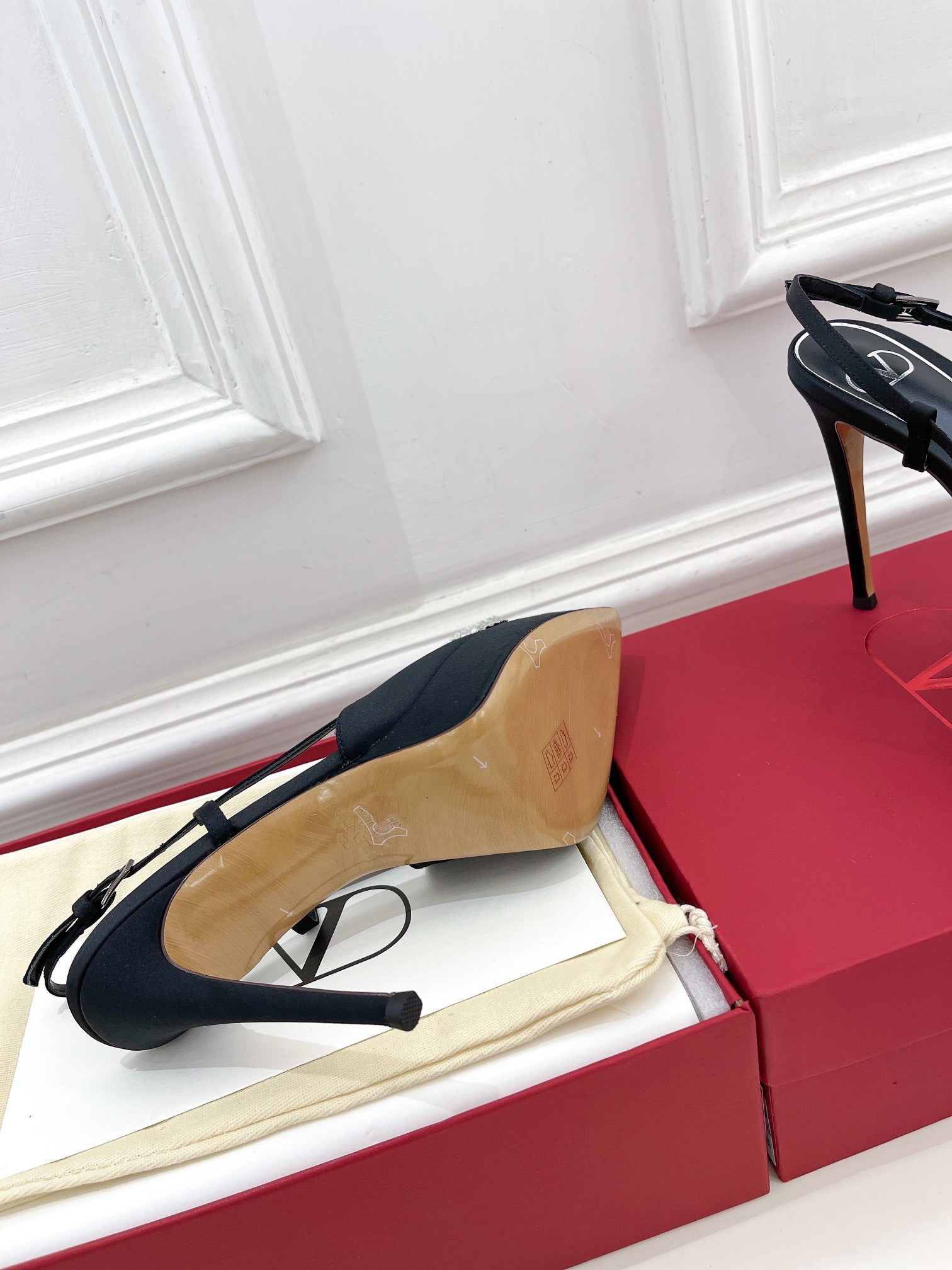 Valentino VLogo Signature Slingback Platform Pumps 120mm In Black Satin