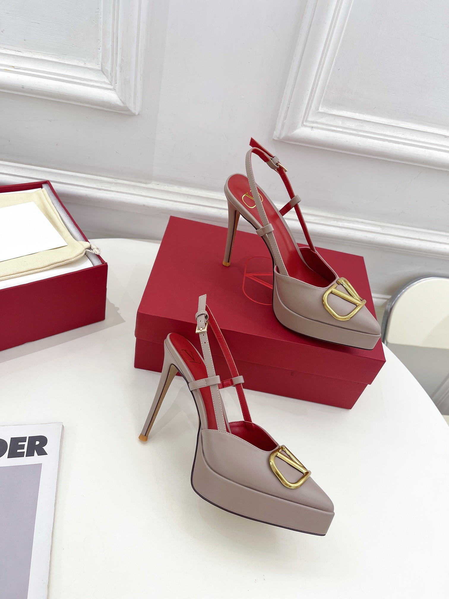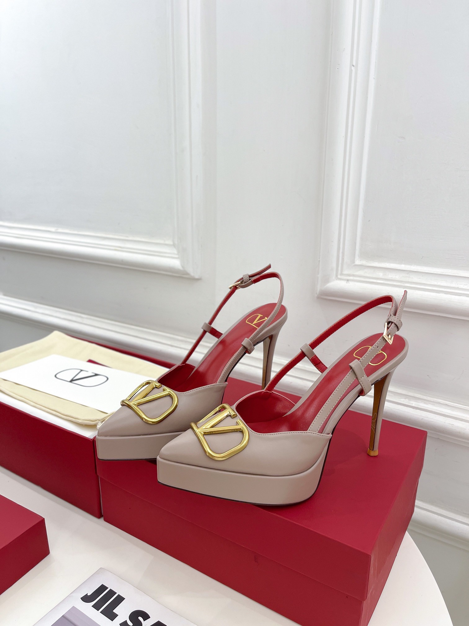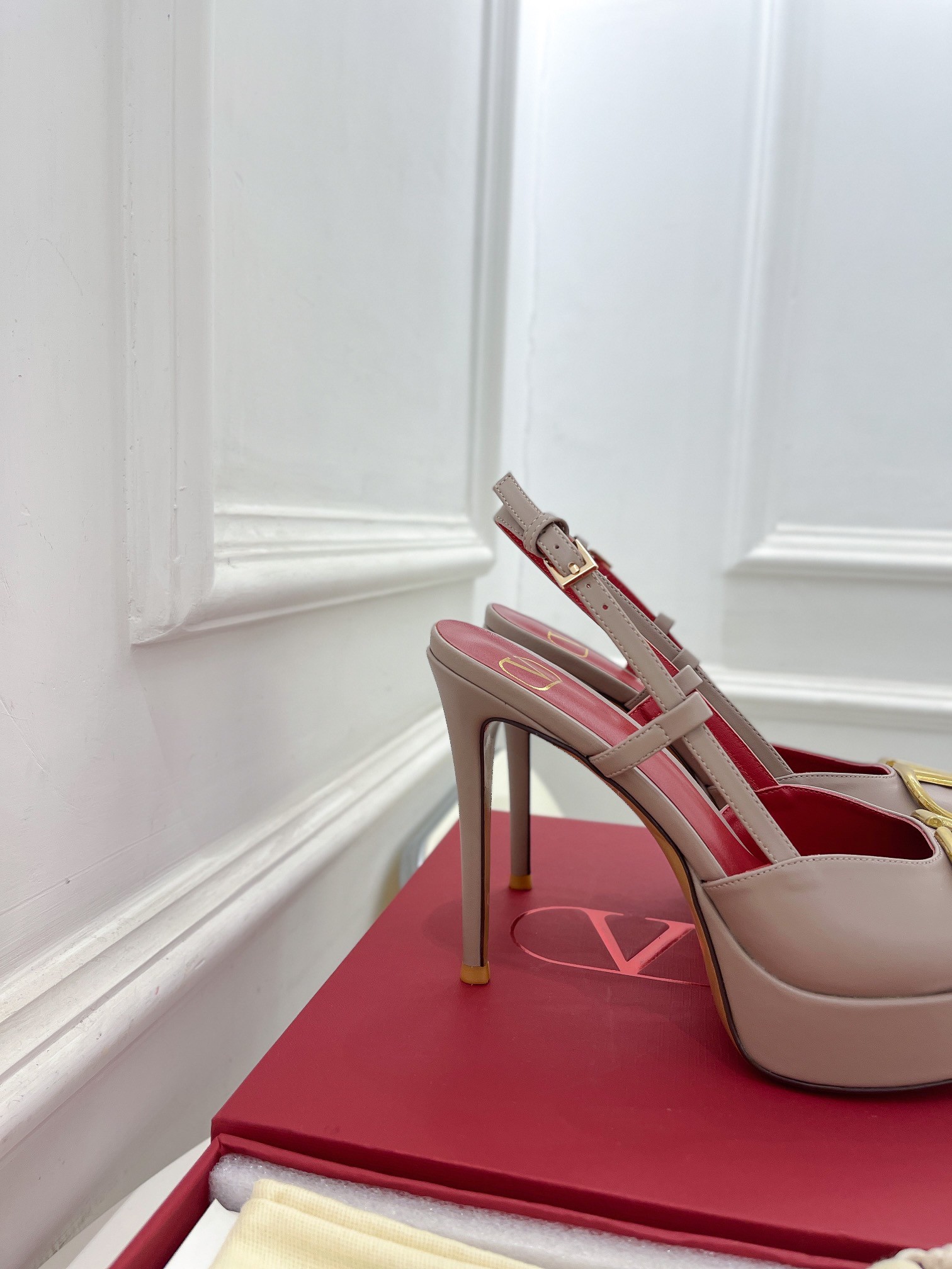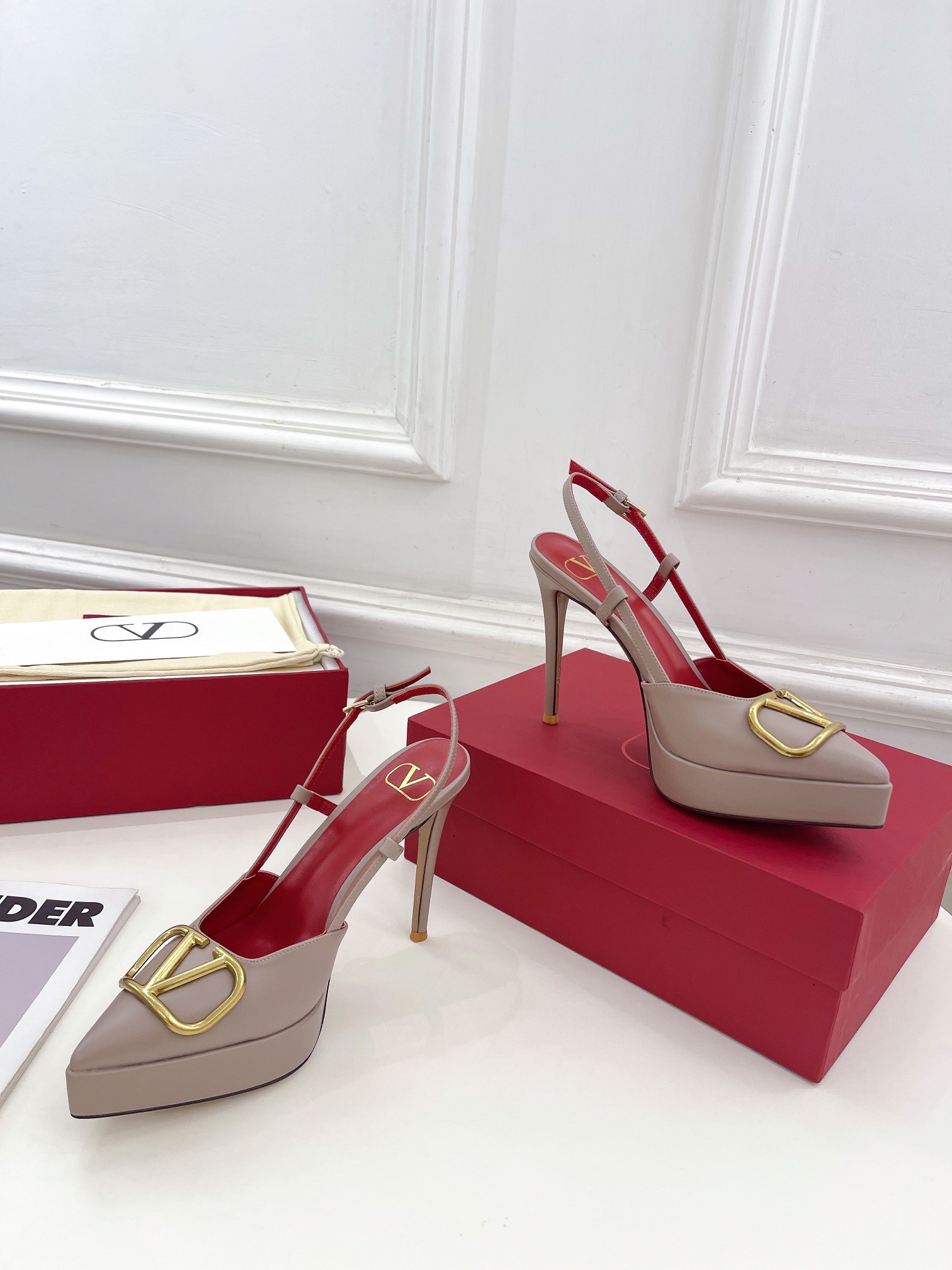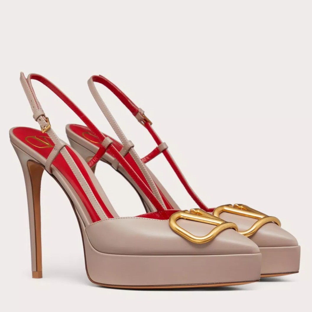 Valentino VLogo Signature Slingback Platform Pumps 120mm In Poudre Calfskin