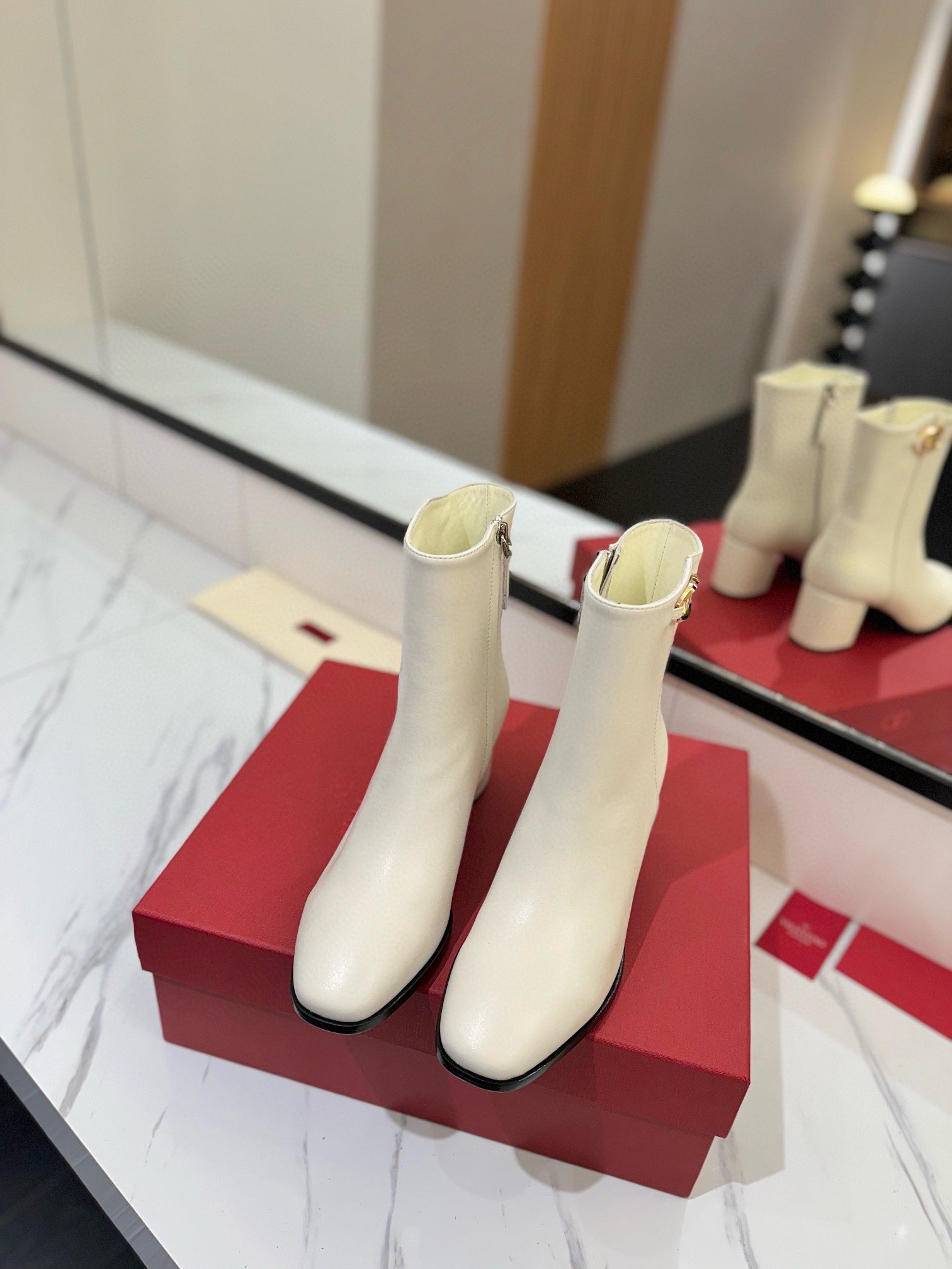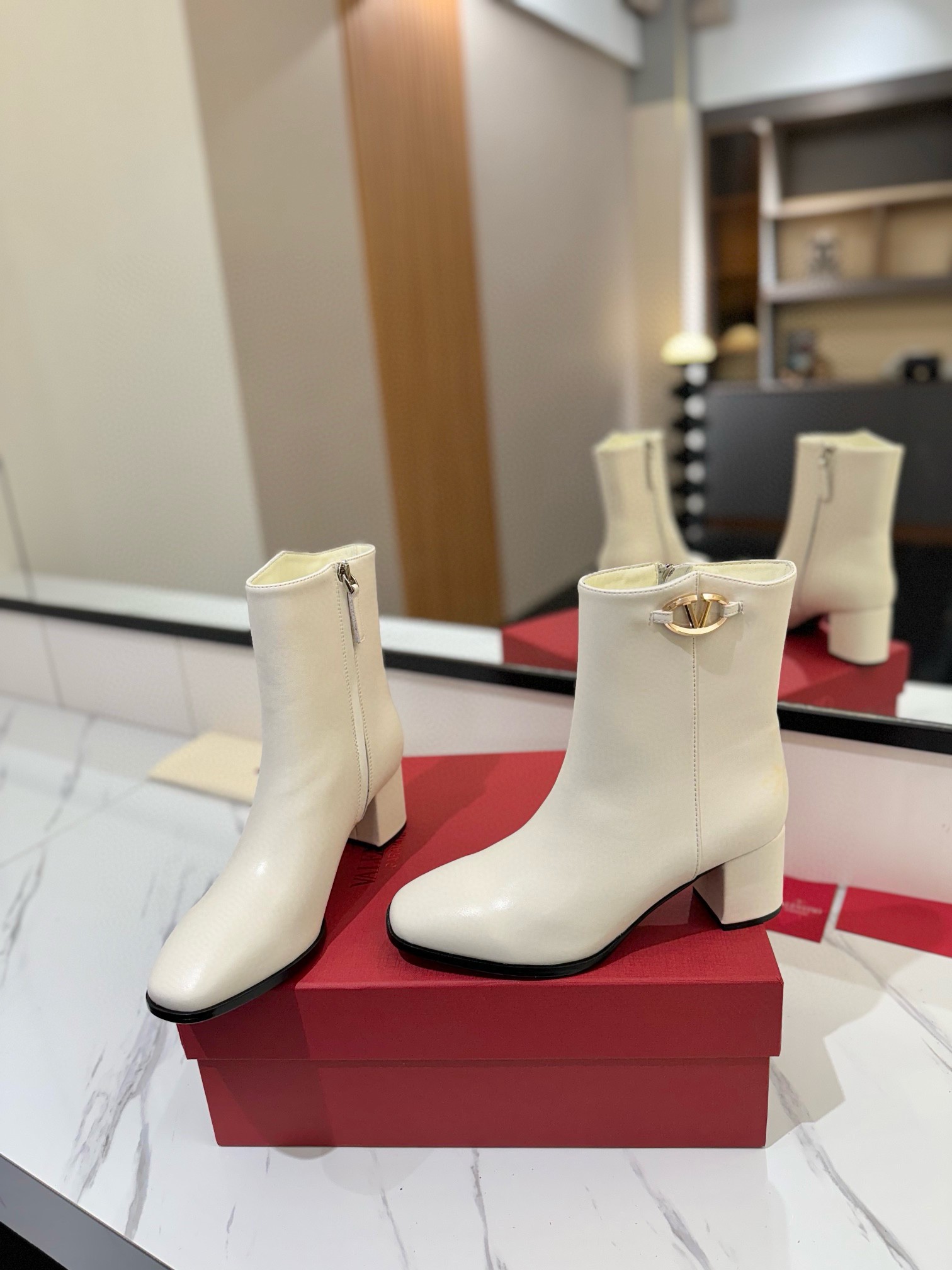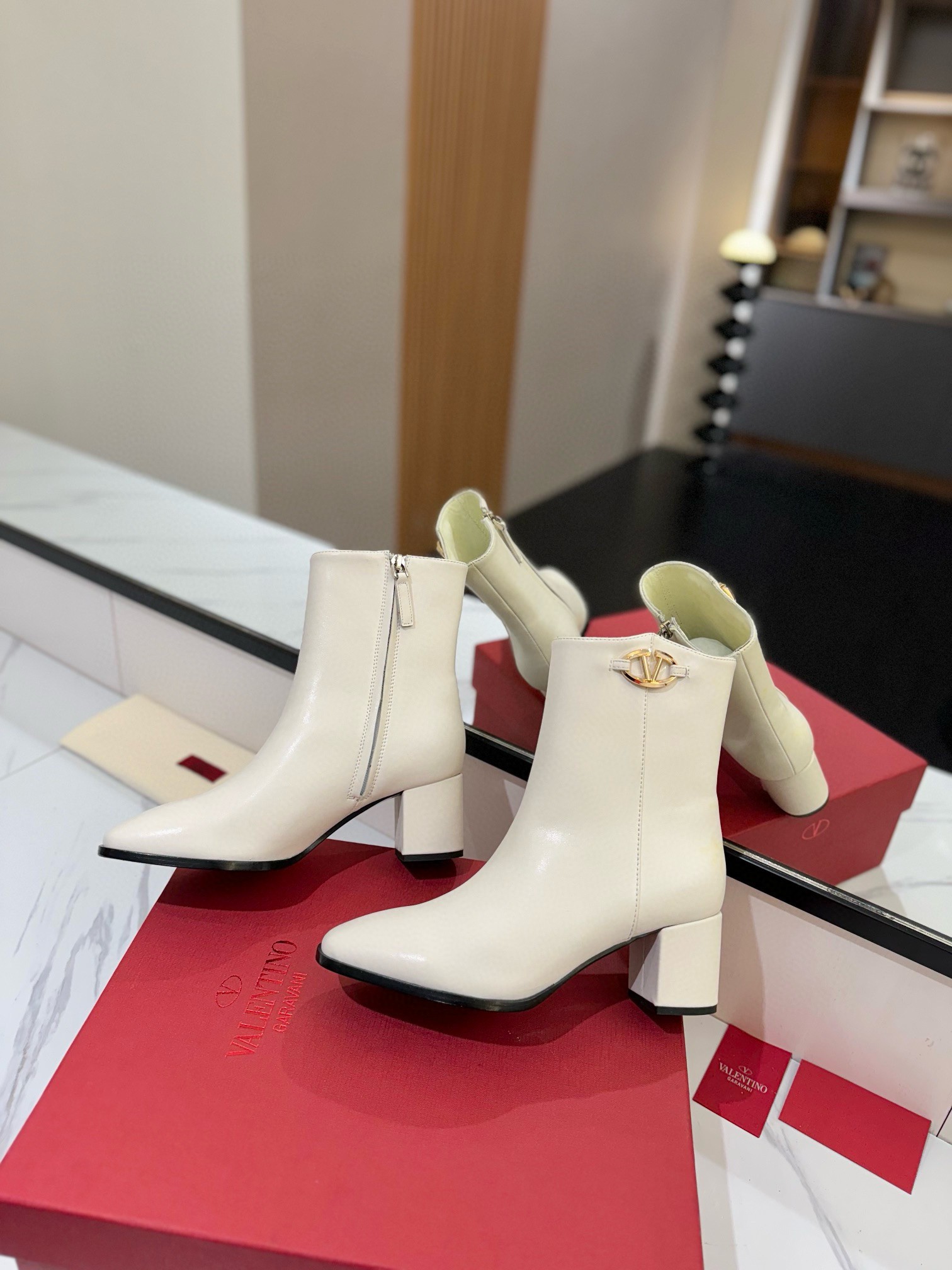 Valentino Garavani’s ankle boots are adorned with a new Bold version of the house’s signature ‘VLOGO’ along the side of the cuffs. They’ve been made from smooth leather and are set on sturdy blocks heels.