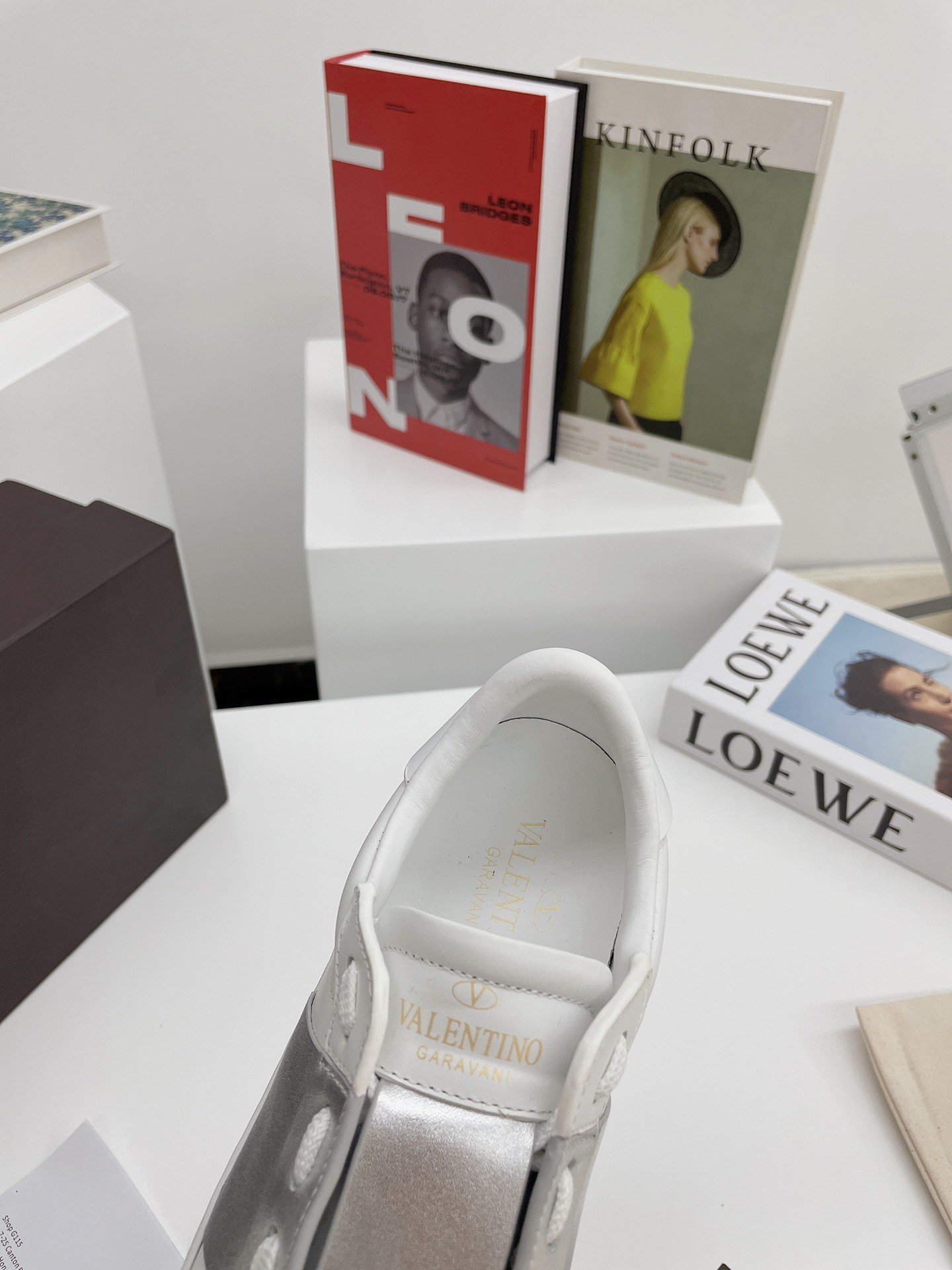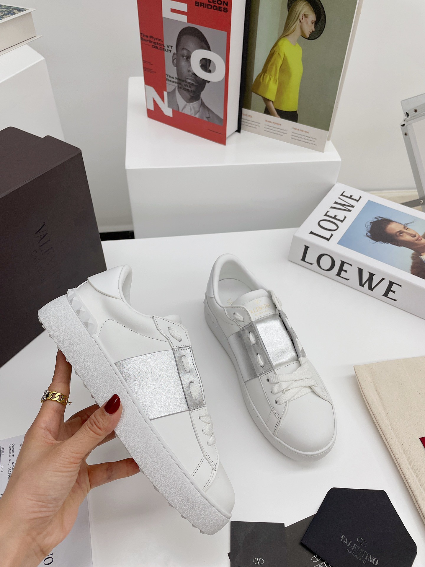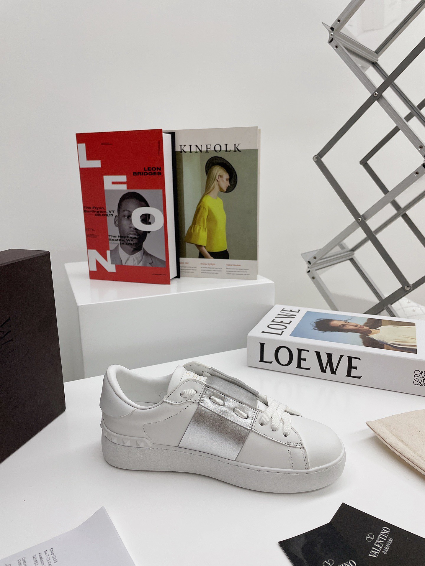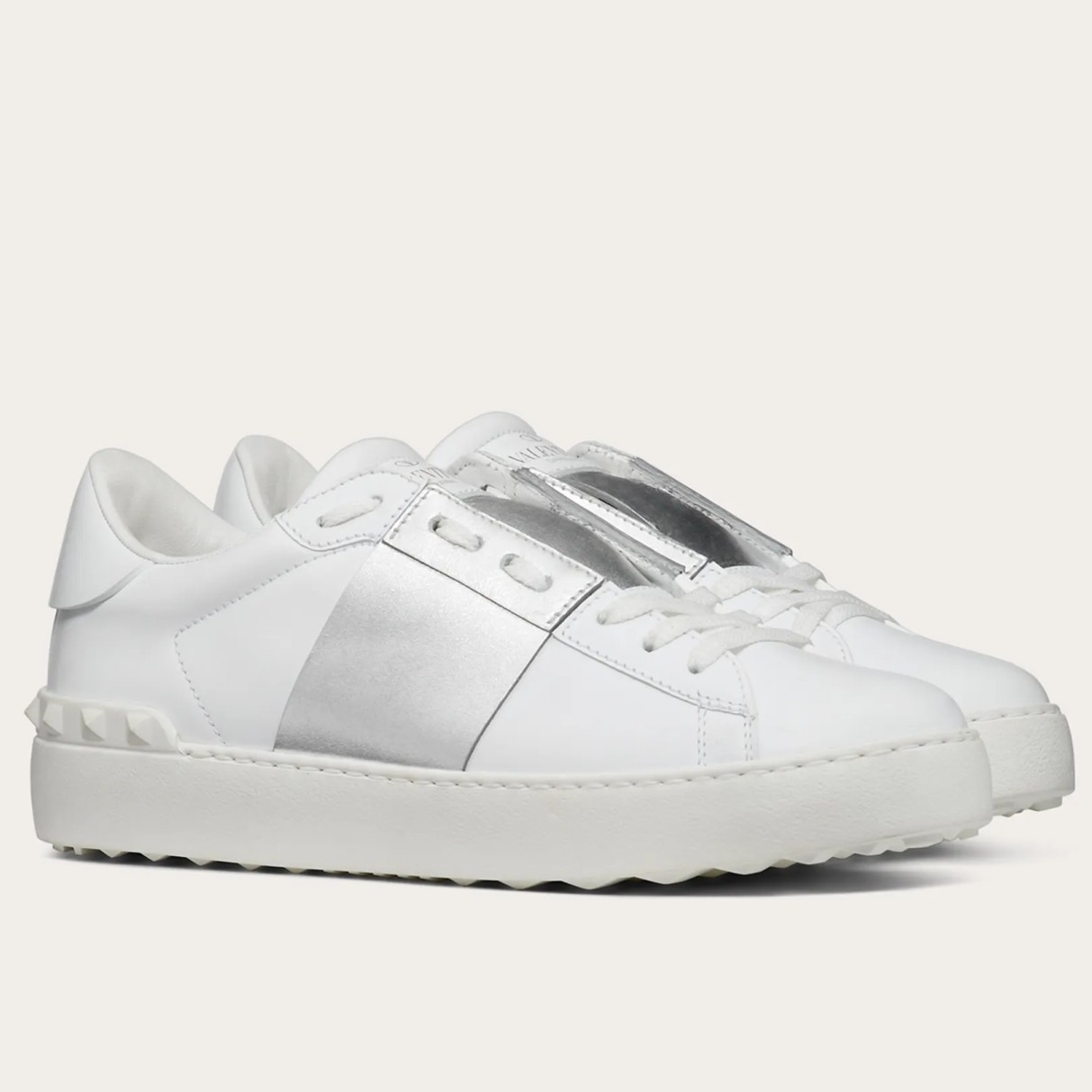 Pierpaolo Piccioli introduced Valentino Garavani’s iconic ‘Rockstuds’ back in Fall ’10 and they still hold cult status today. These Italian-made leather Open sneakers are detailed with a row of the embellishments just above the heel and feature contrasting silver Metallic leather stripe. Wear yours with dresses and tailored pants.