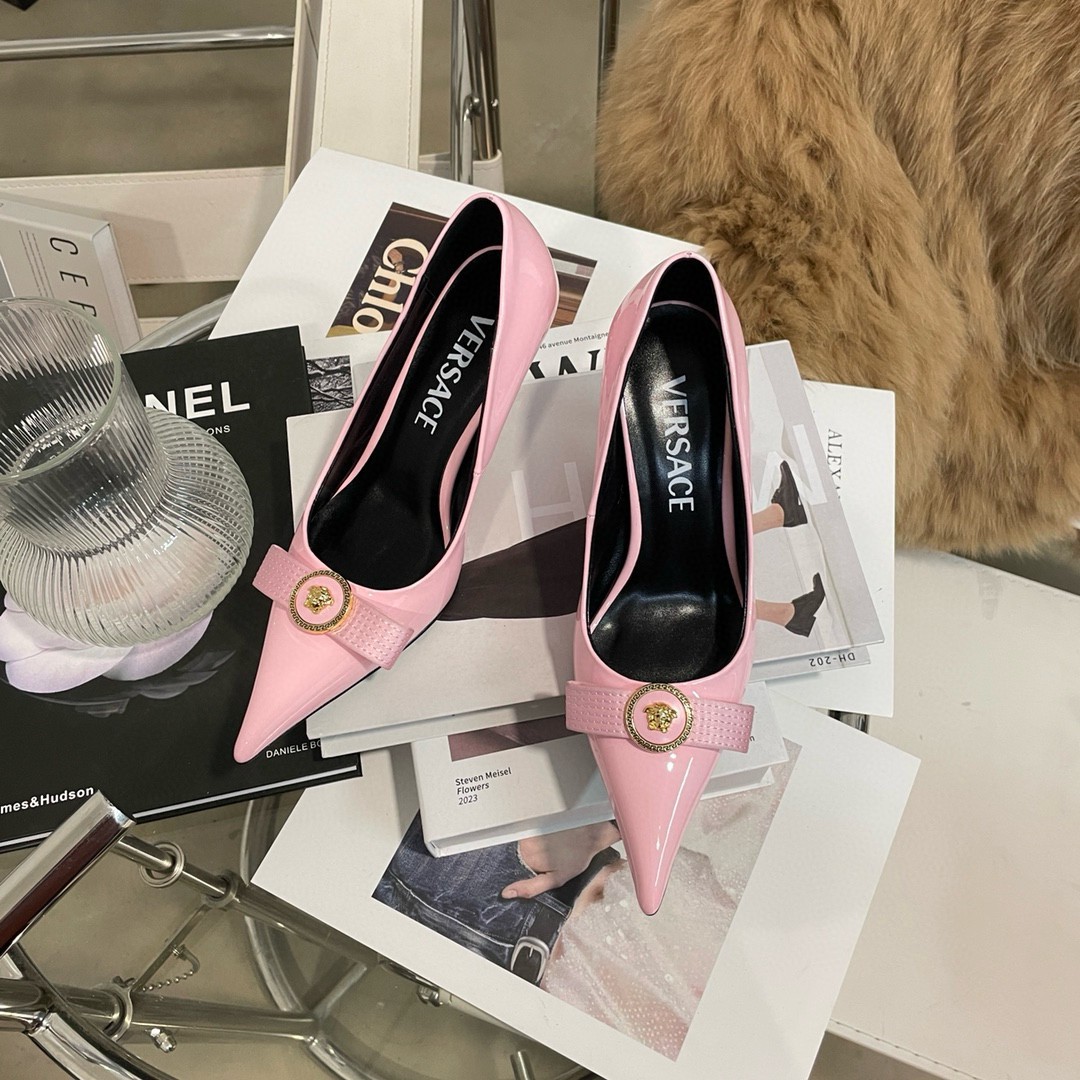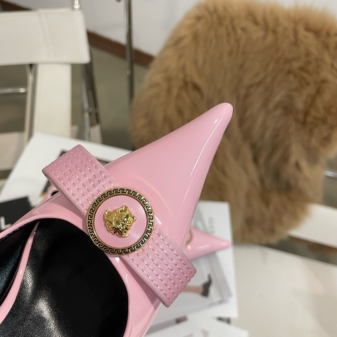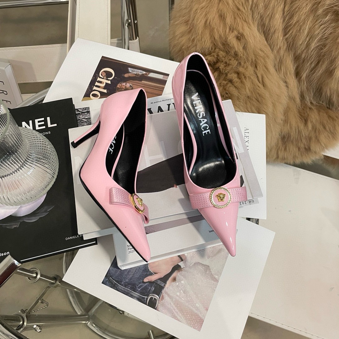 These Versace point-toe pumps are decorated with the Nastro Gianni bow and Medusa plaque hardware at the front. They’re sculpted from glossy leather and set atop towering stiletto heels.