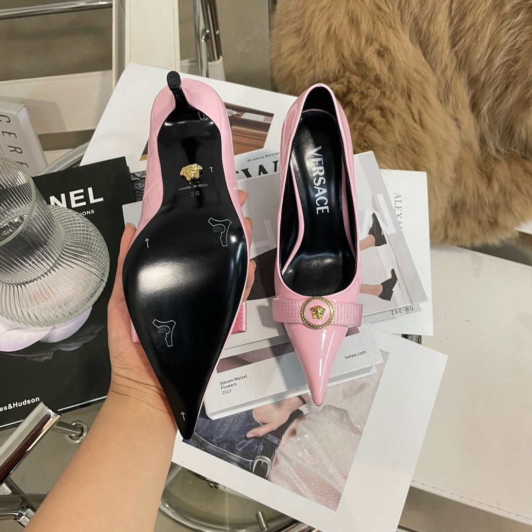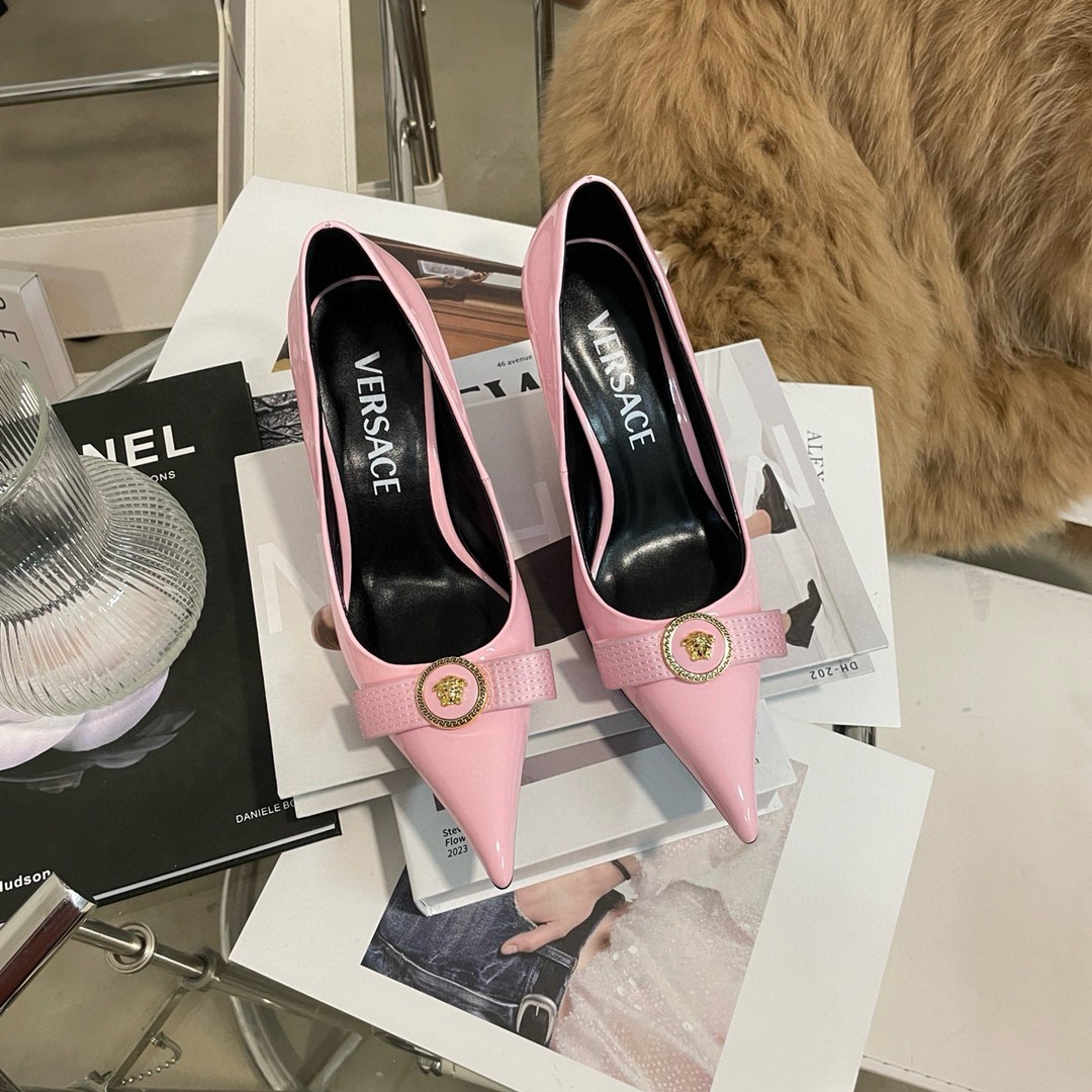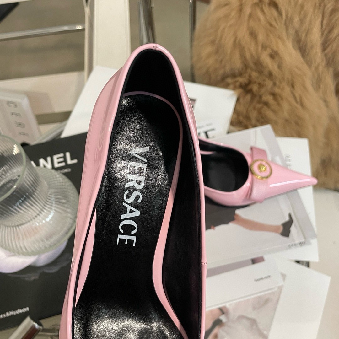 These Versace point-toe pumps are decorated with the Nastro Gianni bow and Medusa plaque hardware at the front. They’re sculpted from glossy leather and set atop towering stiletto heels.