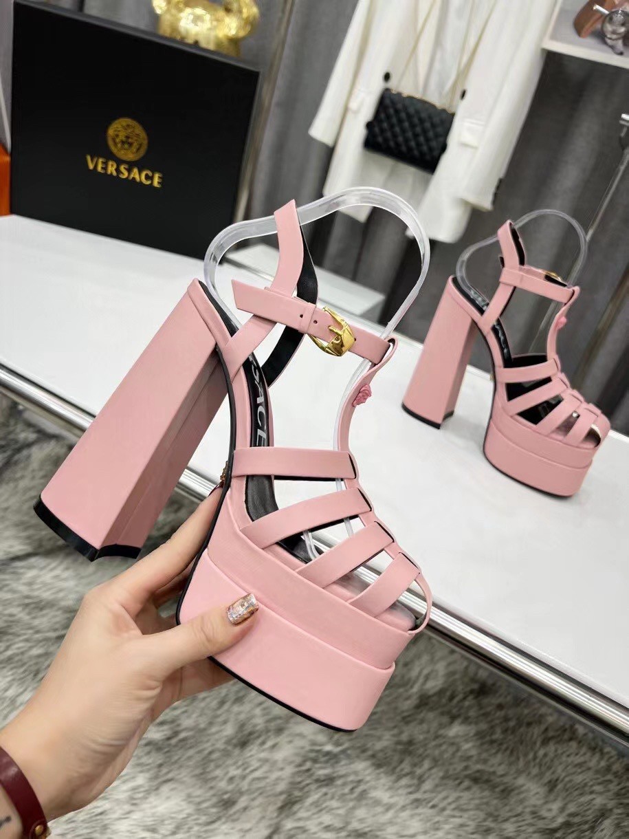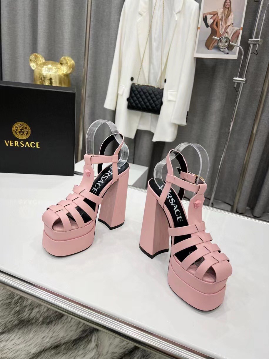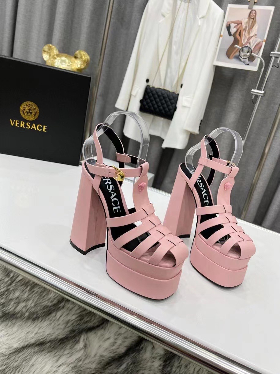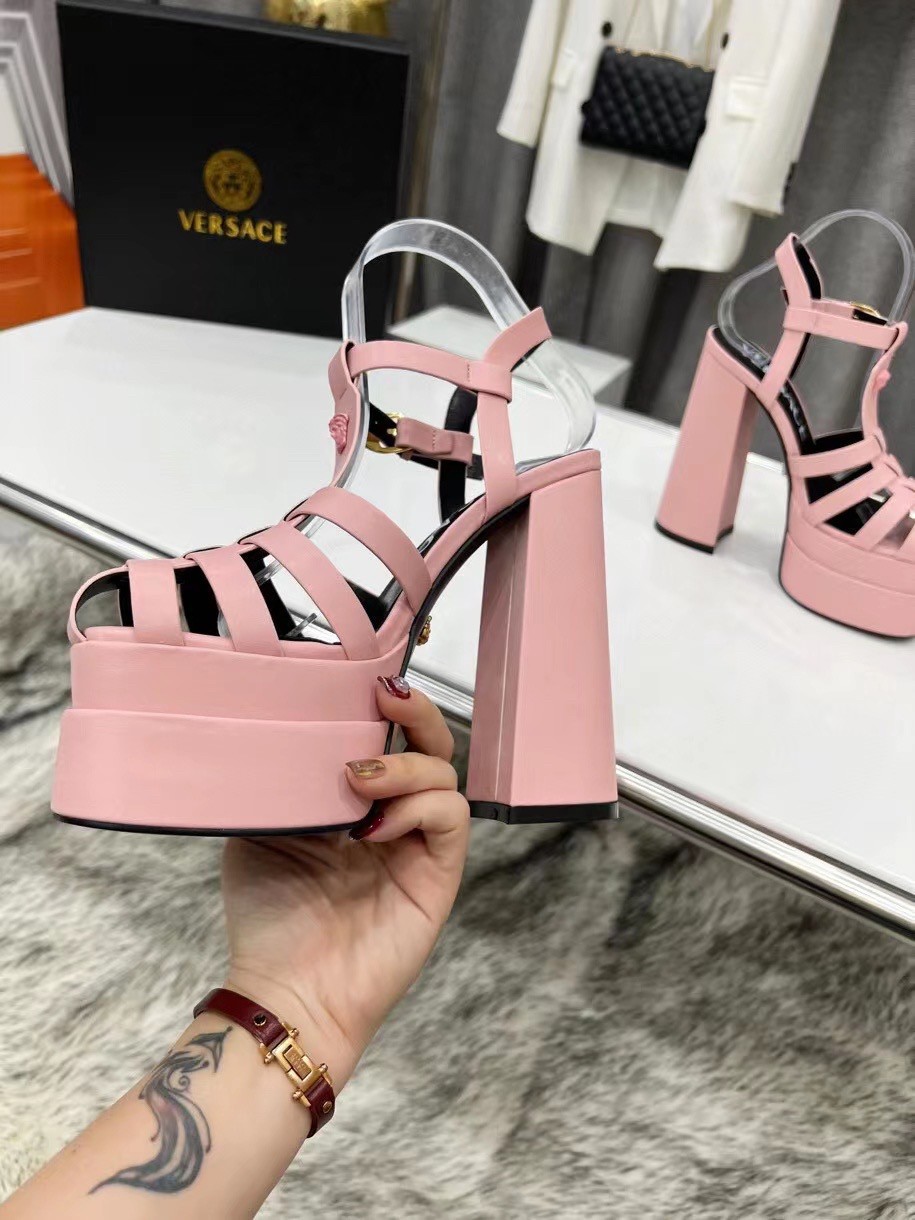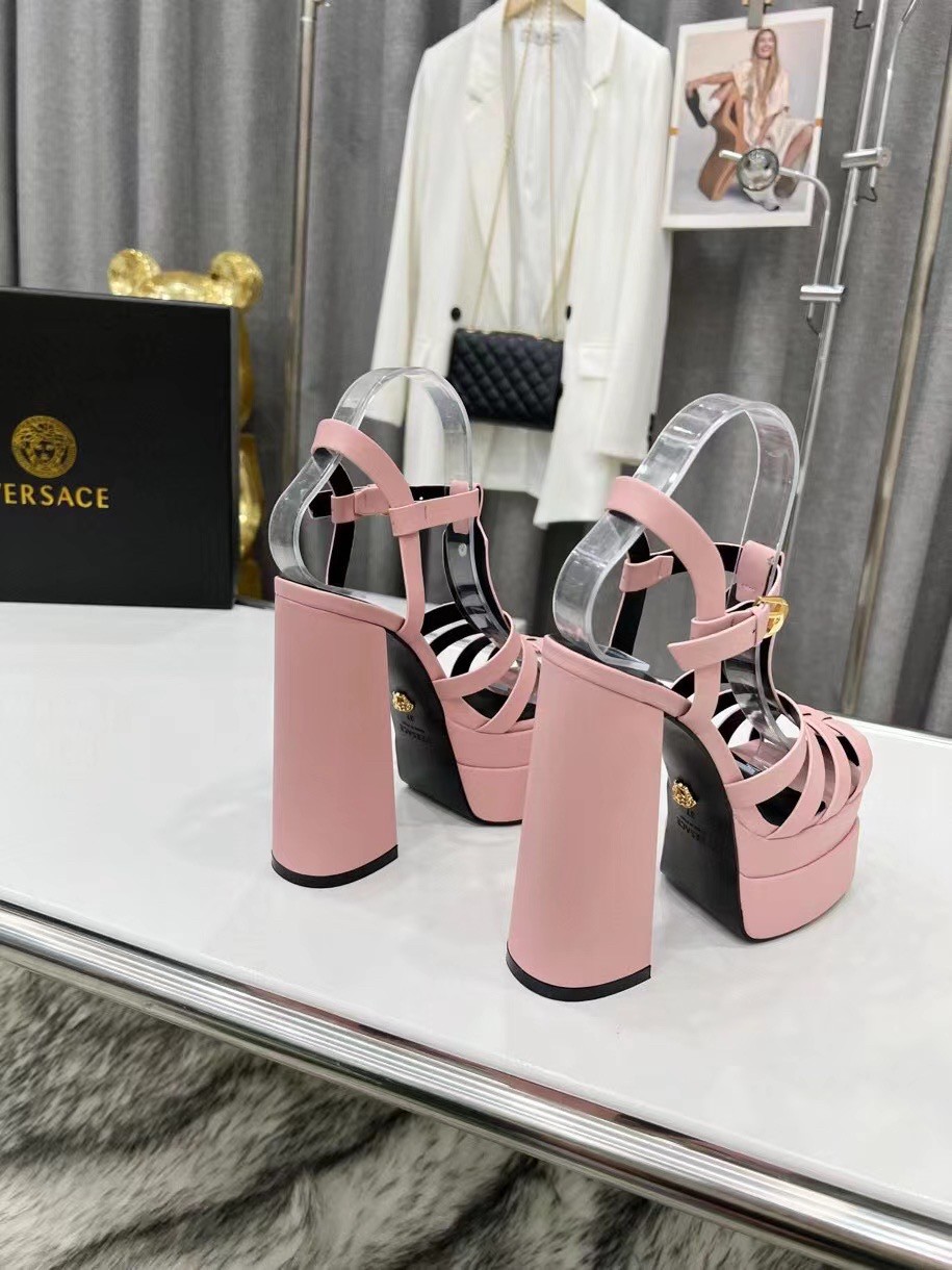 Built for high impact, these ankle strap La Medusa sandals from Versace are set atop a vertiginously-high chunky heel. The design is completed with Medusa Head detailing in a matching tone, celebrating one of the label’s most iconic motifs.
